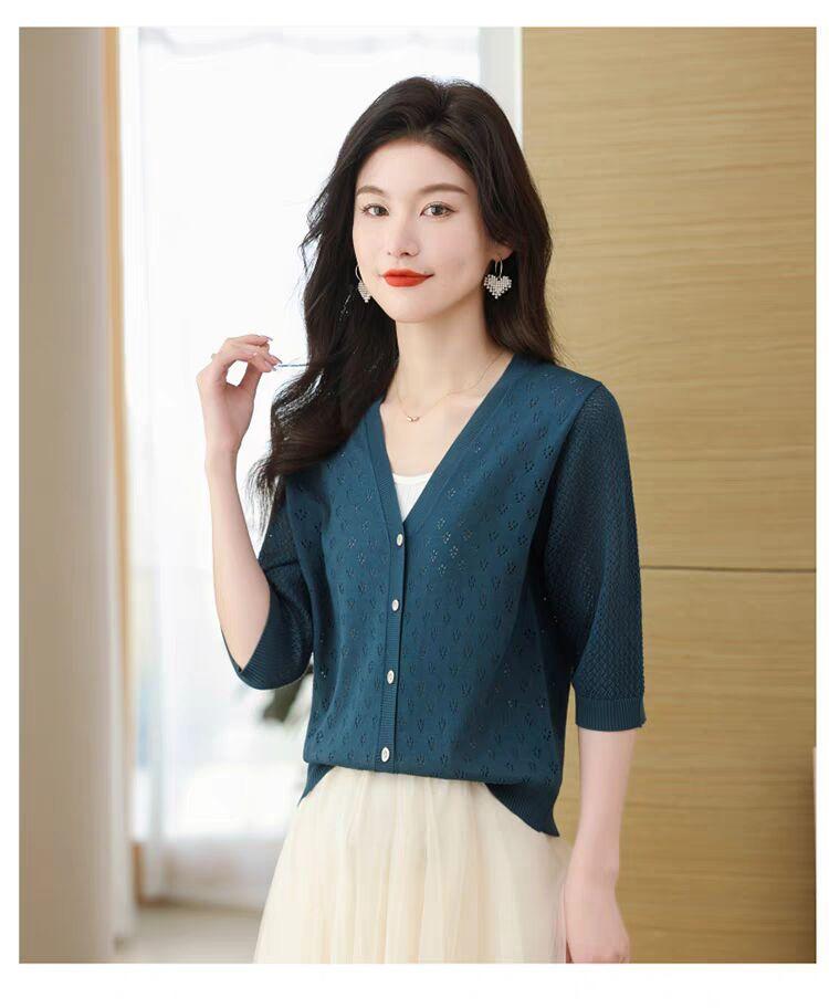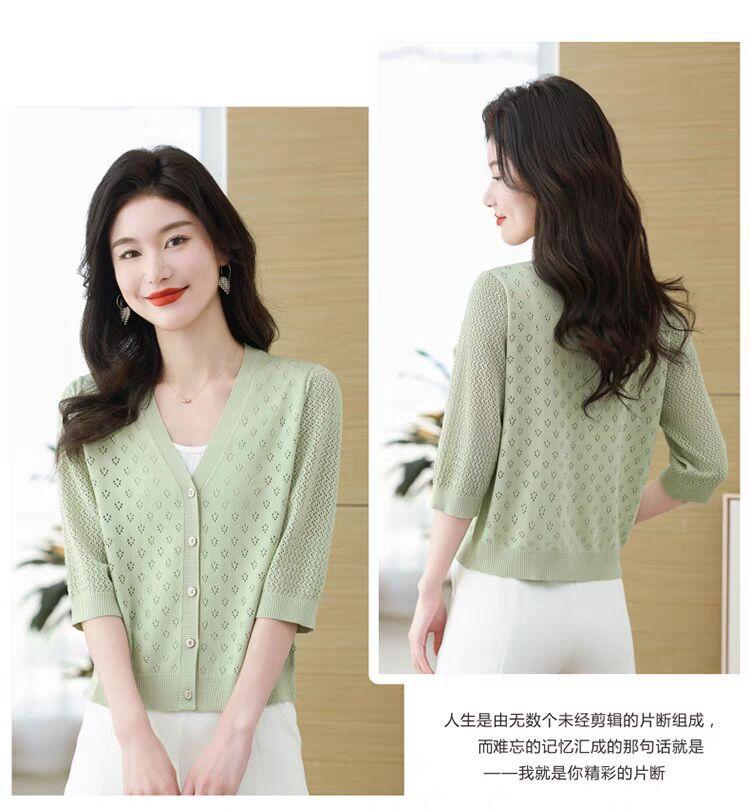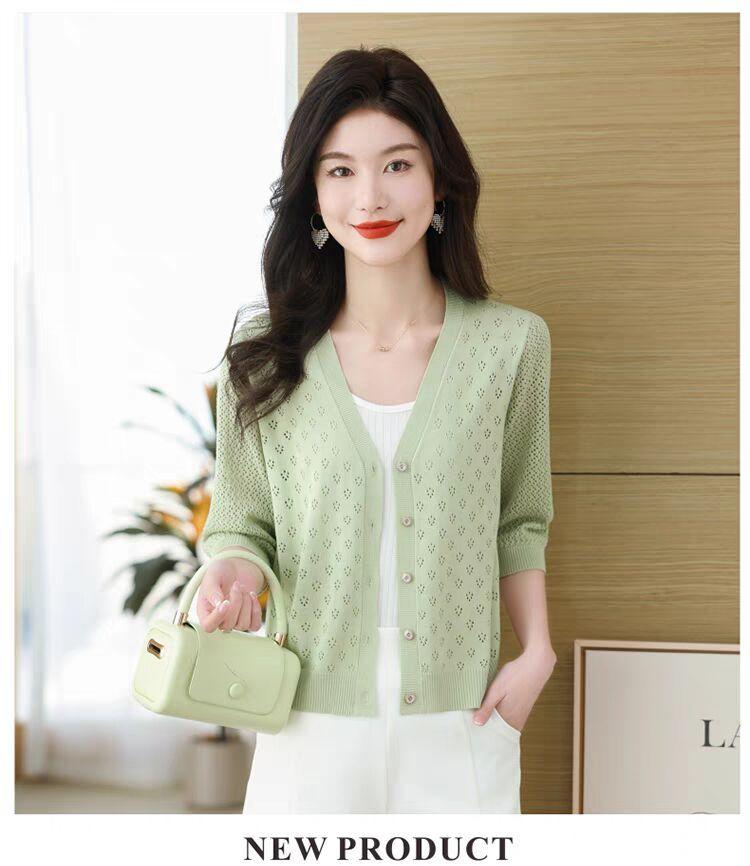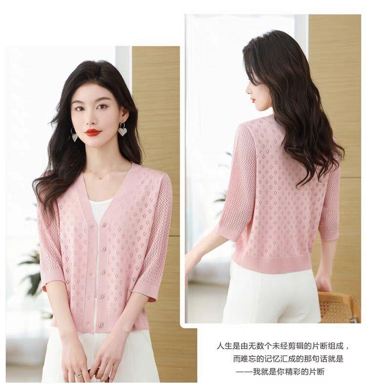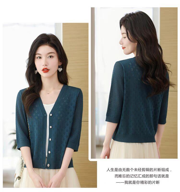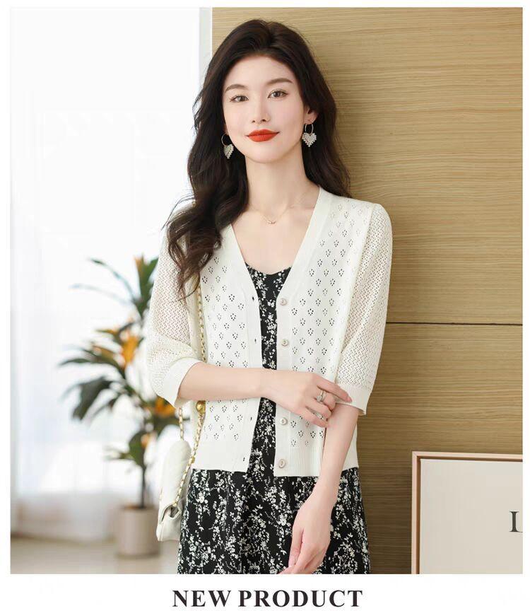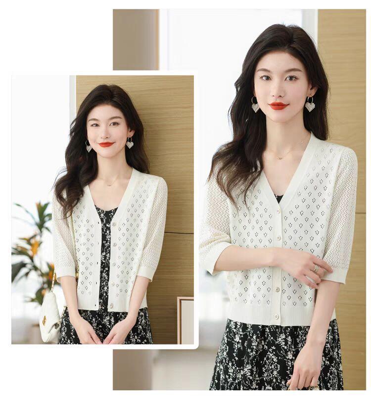 Suéter de Punto de Seda Helada Cárdigan Abrigo para Mujer Suelto Calado Verano Falda Top Prendas de Abrigo Finas