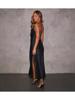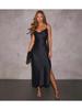 Vestido Europeo y Americano Dividido de Satén Vestido Noble de Baile Banquete Amazon Elegante Explosión Tirantes Vestido Noble