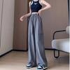 2024 Comercio Exterior Europeo y Americano para Mujer Color Sólido Casual Estilo Europeo y Americano Cintura Alta Ropa de Trabajo Bolsillo de Parche Pantalones de Pierna Ancha