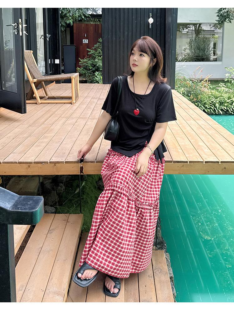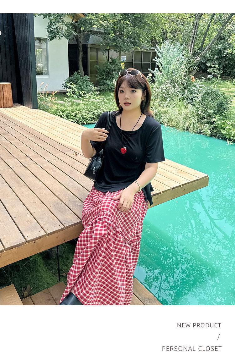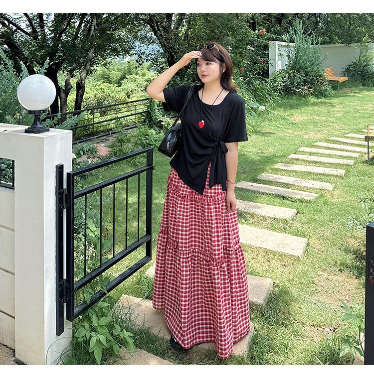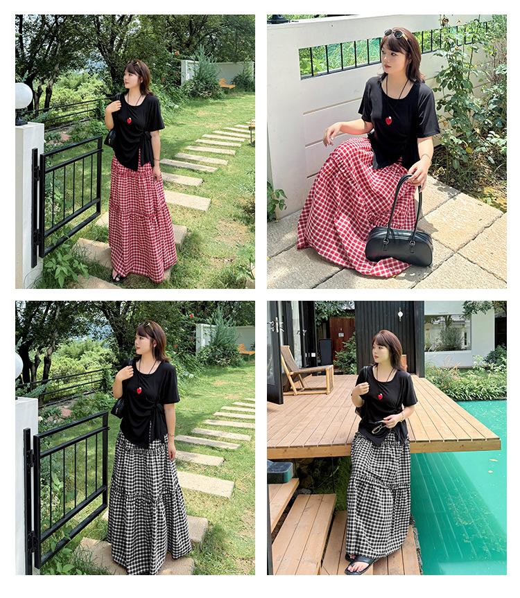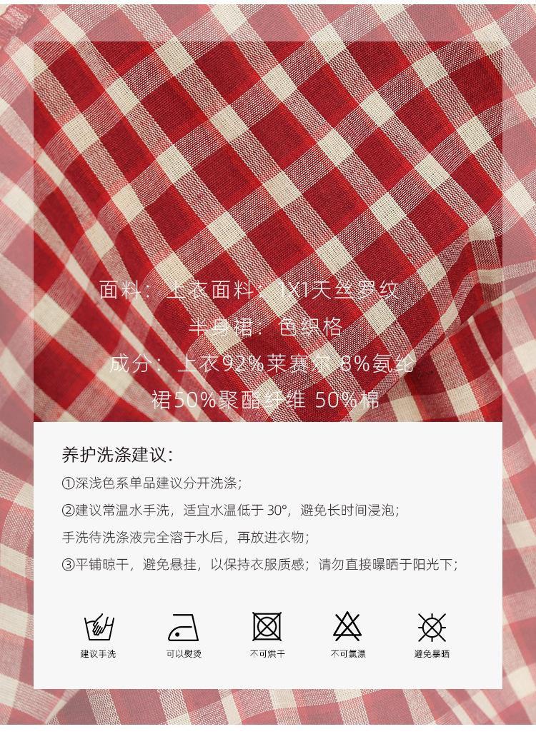 Tejido: Parte superior: Punto acanalado Tencel 1X1 Falda: Cuadro teñido en hilo