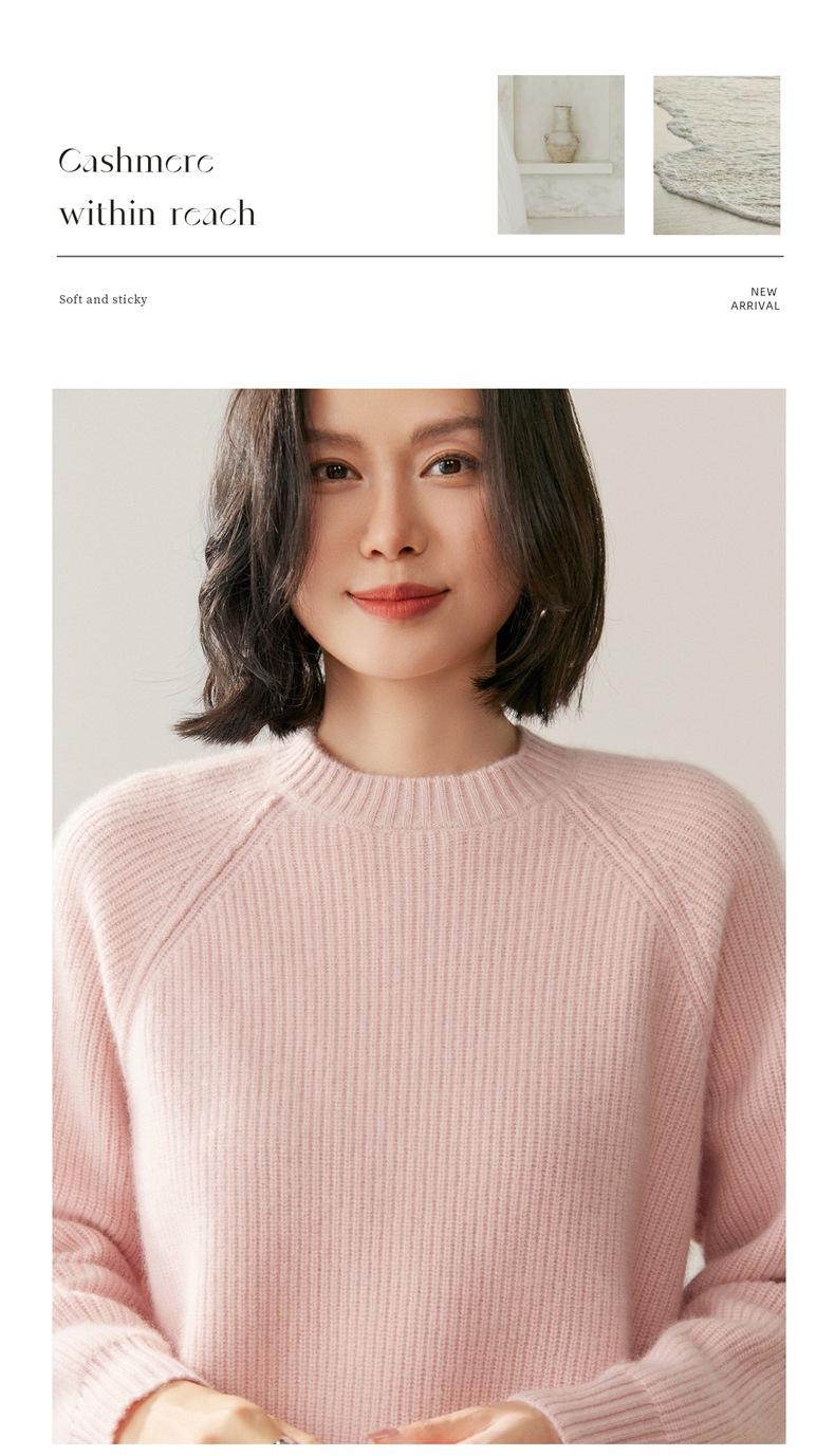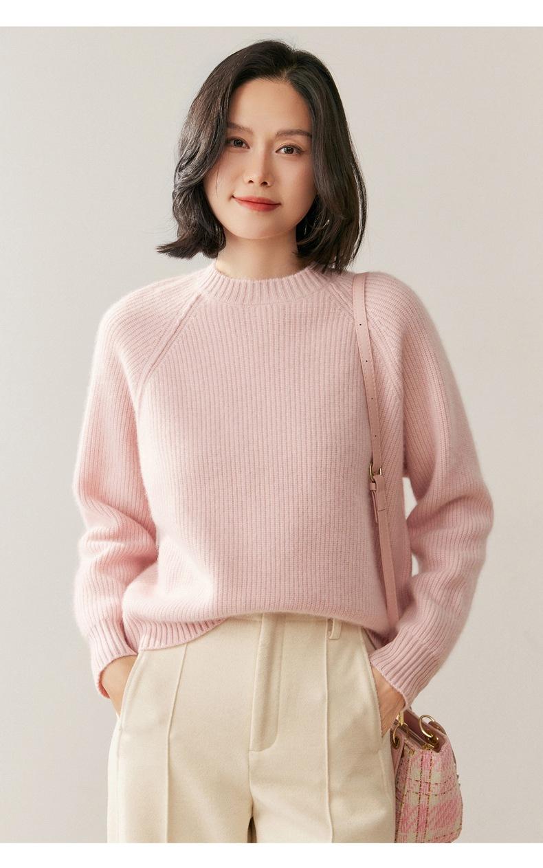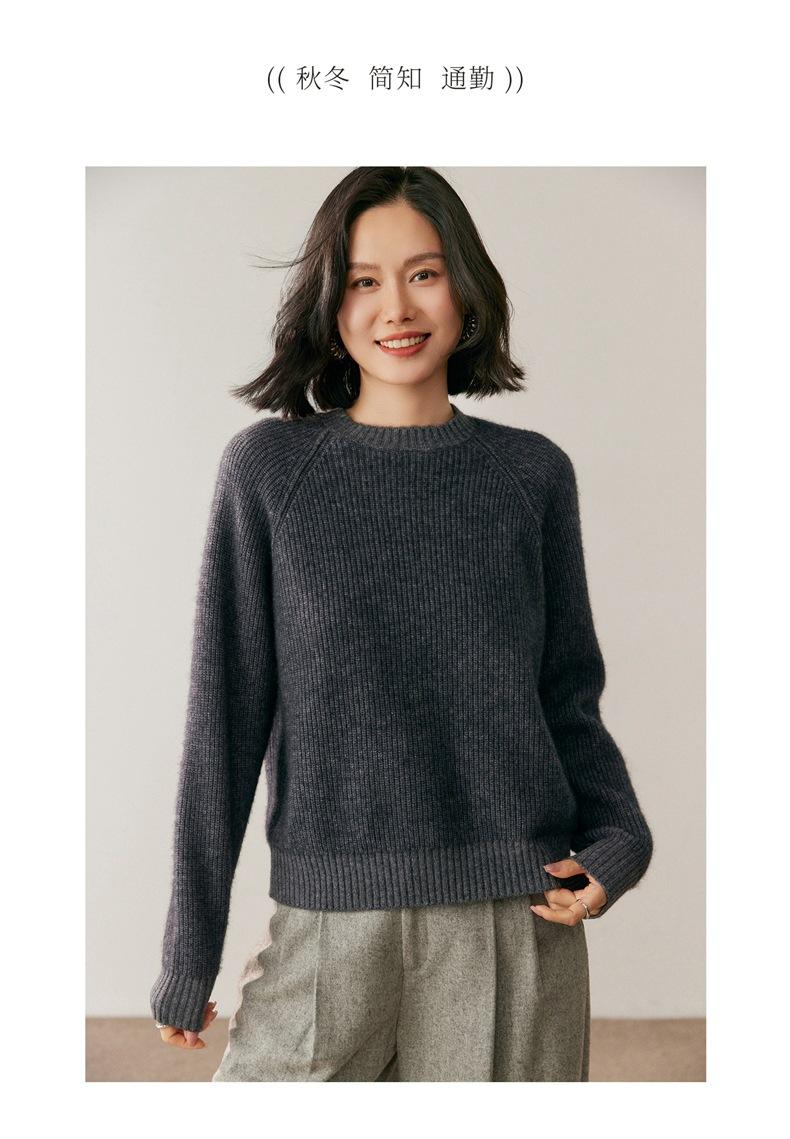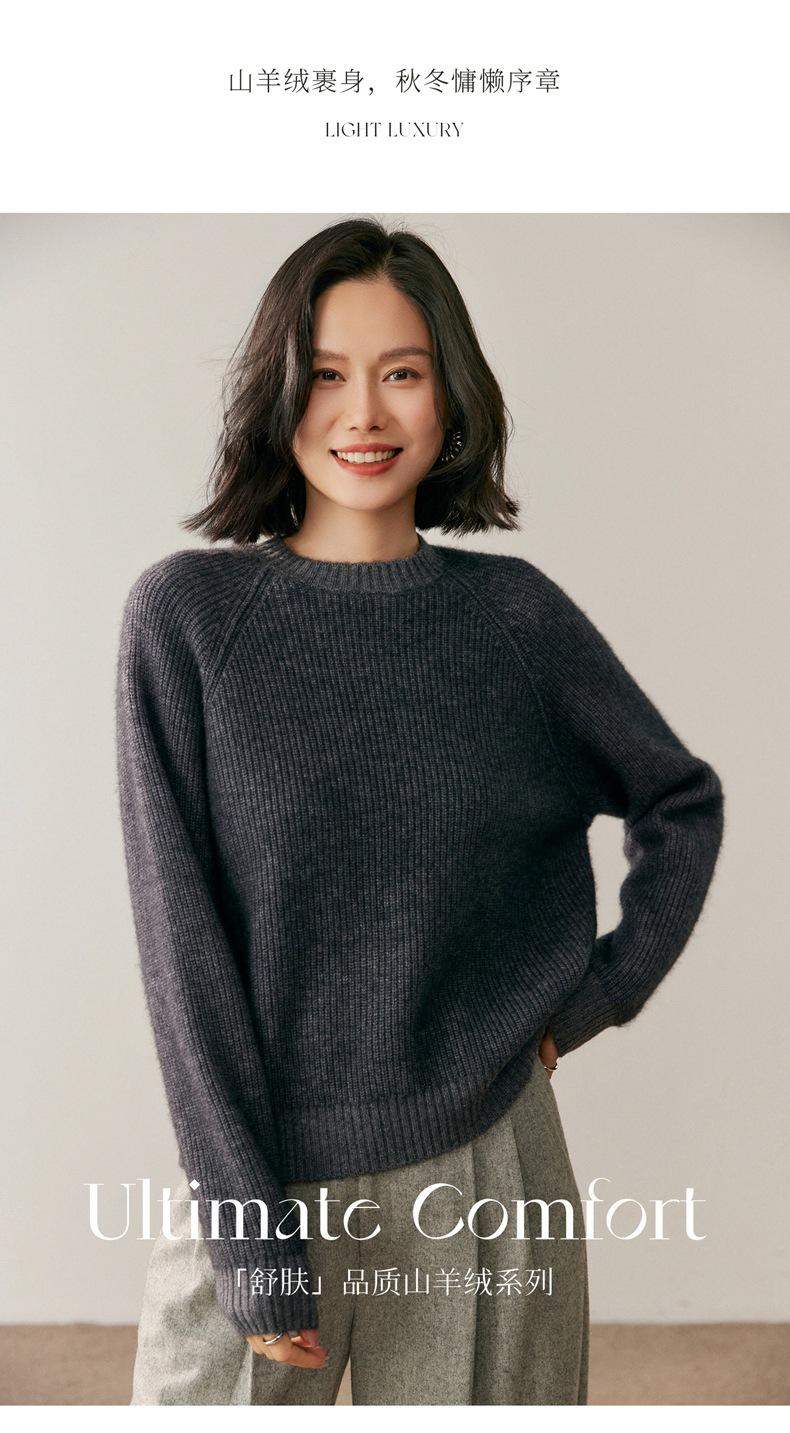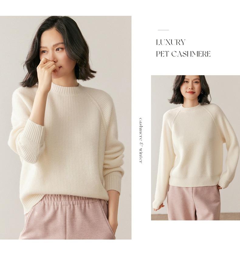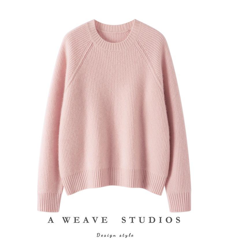 Nuevo Suéter de Cachemira de Cuello Redondo Otoño/Invierno para Mujer Suelto Grueso Tejido Base Suéter Color Sólido Manga Raglán Top