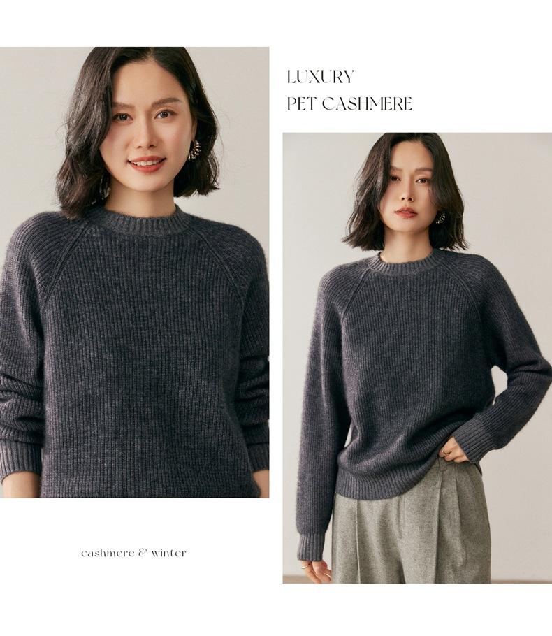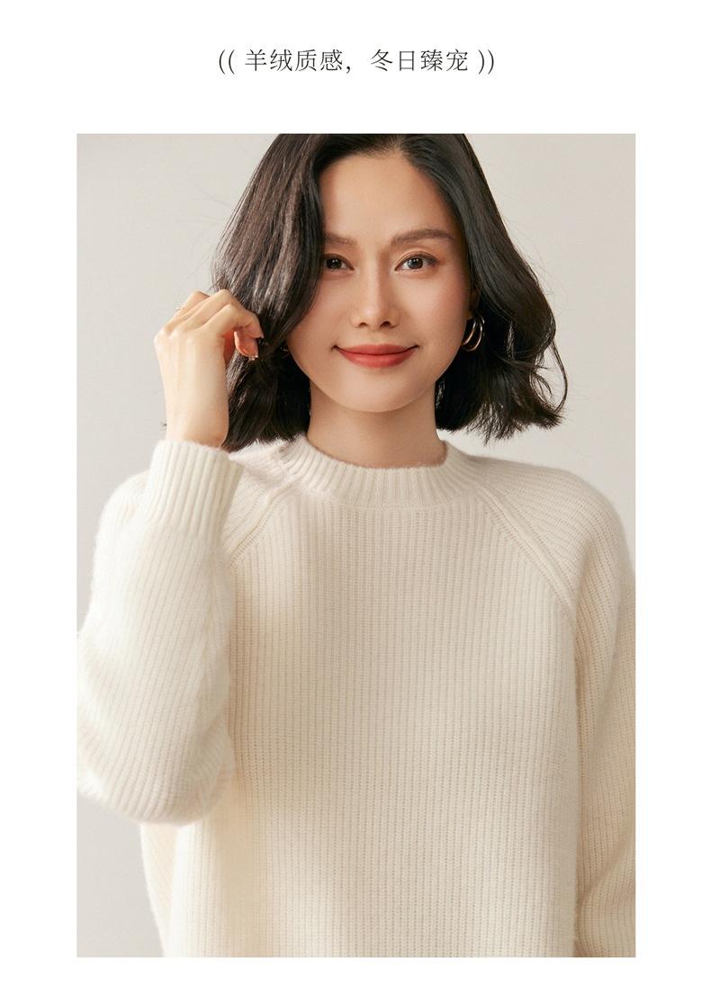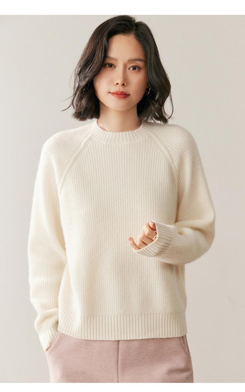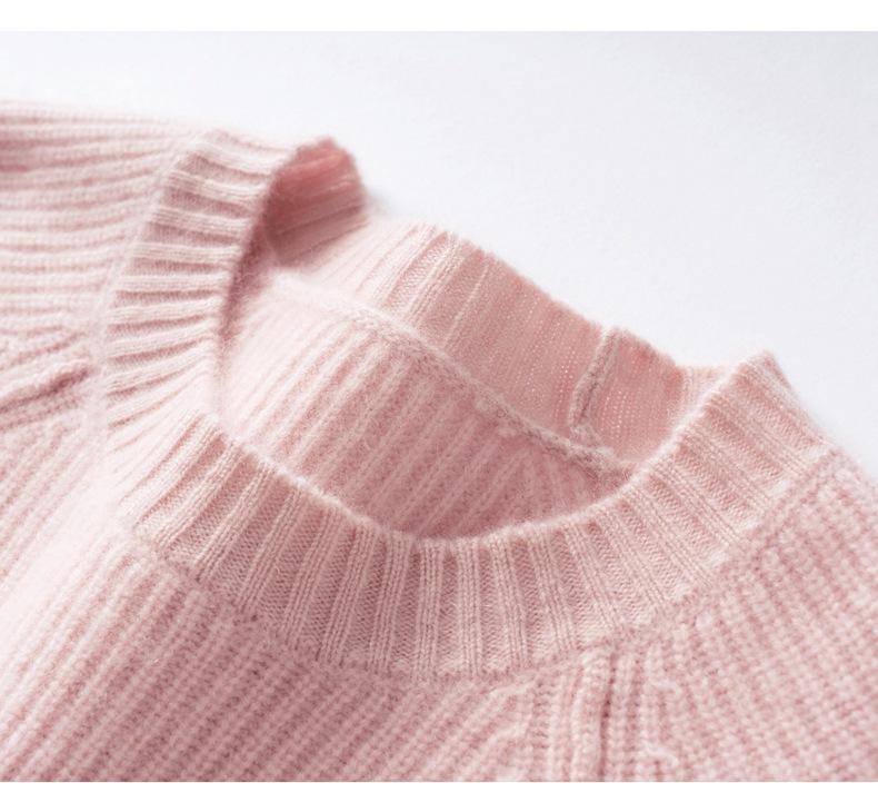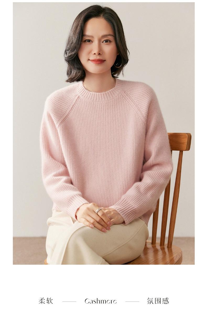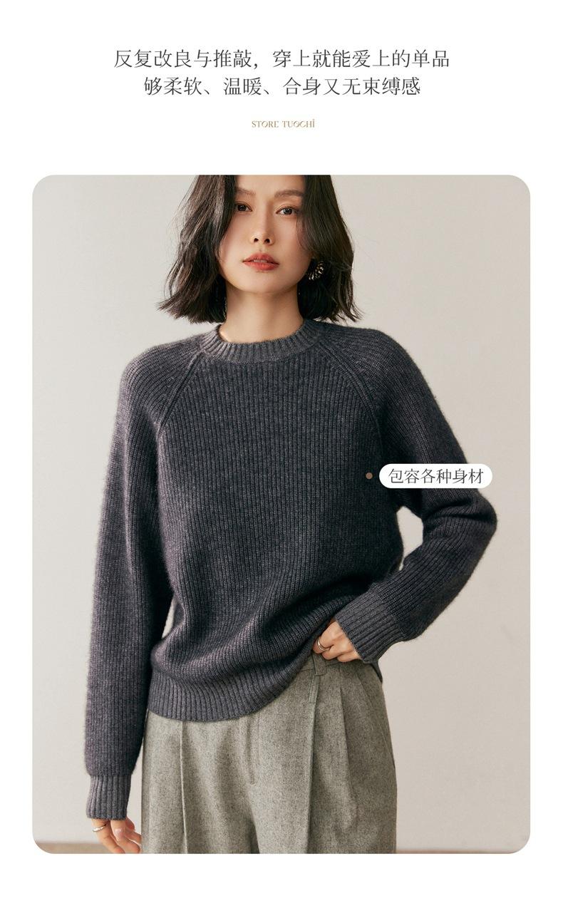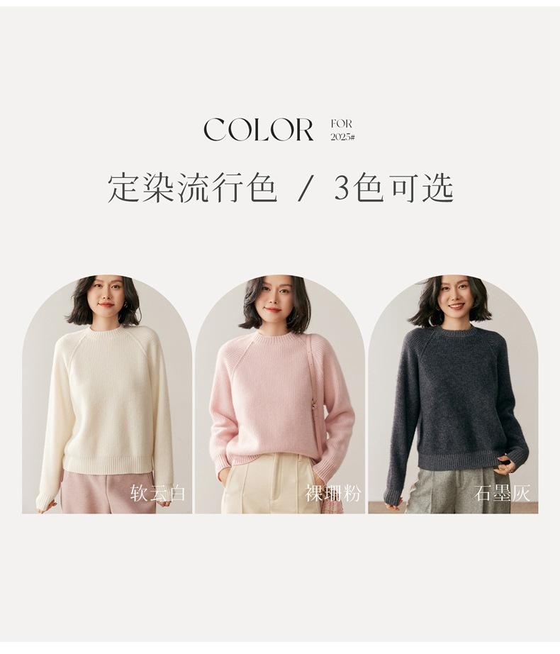 Nuevo Suéter de Cachemira de Cuello Redondo Otoño/Invierno para Mujer Suelto Grueso Tejido Base Suéter Color Sólido Manga Raglán Top