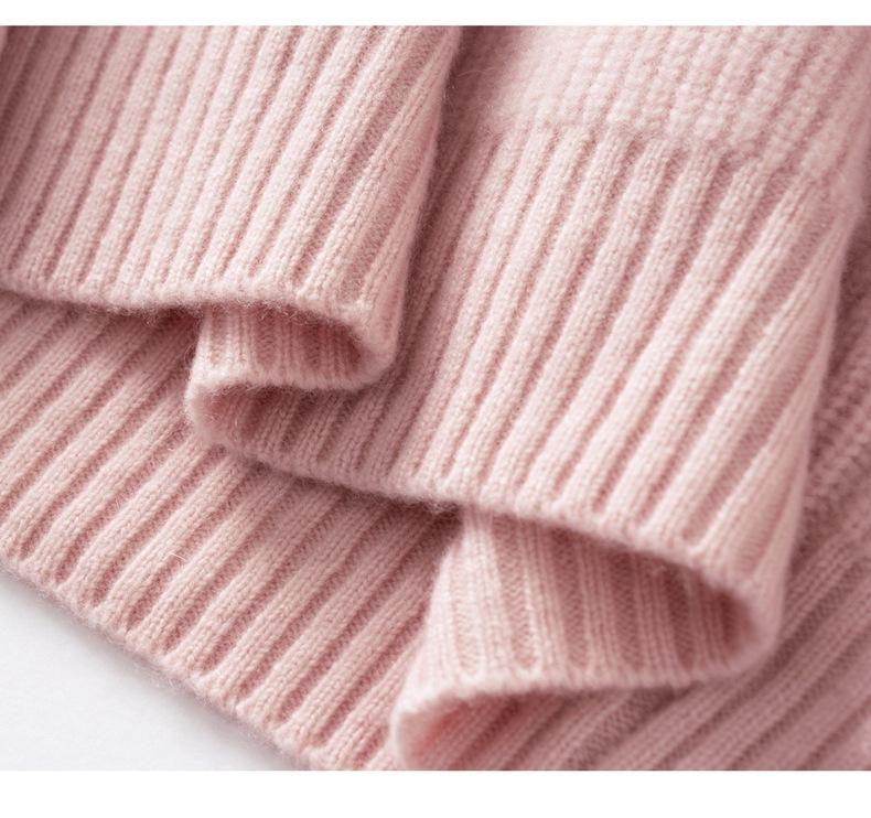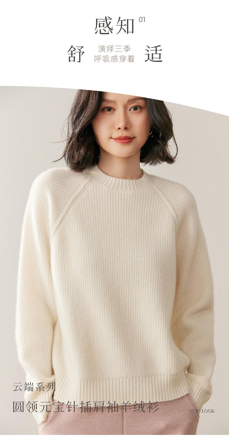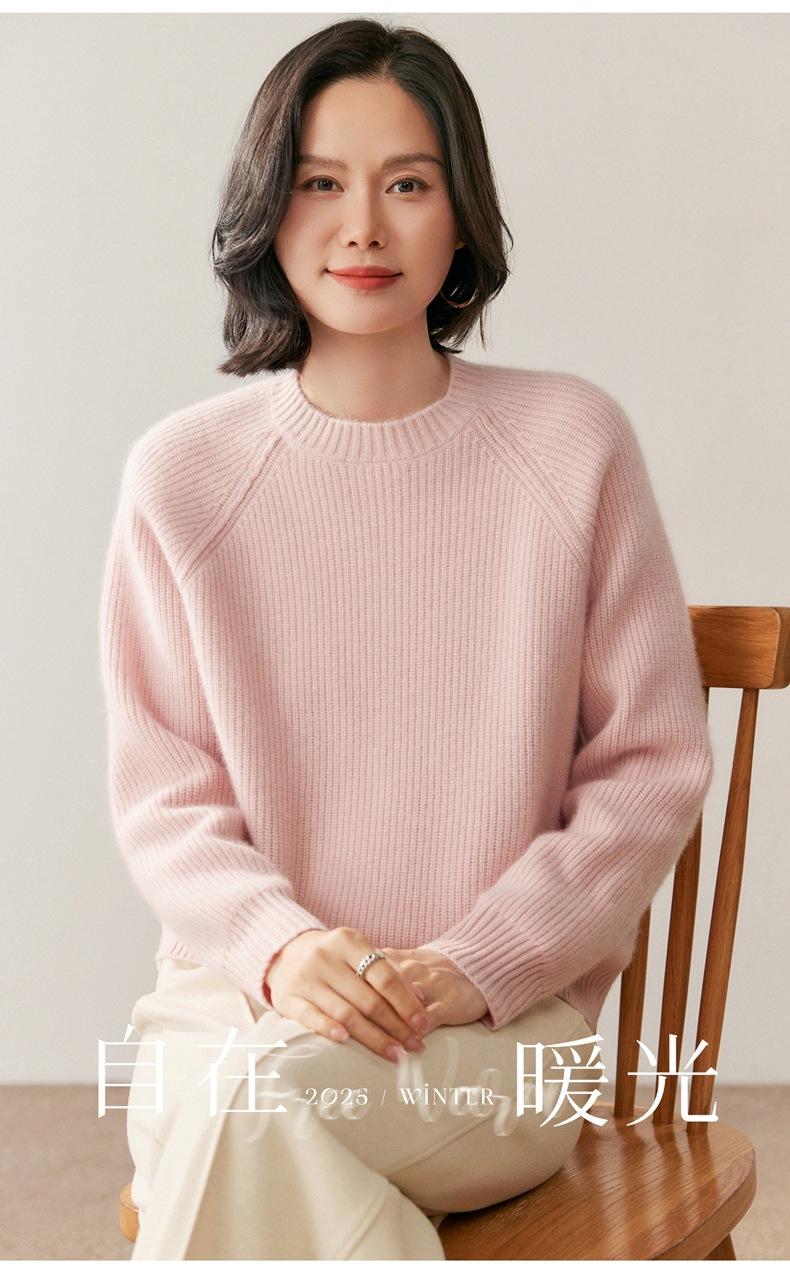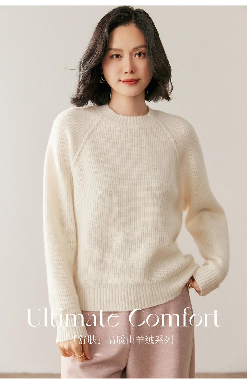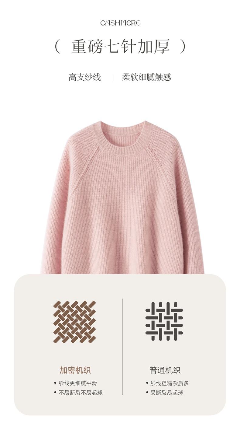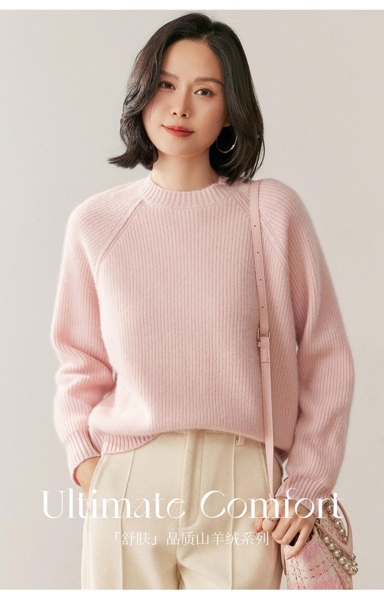 Nuevo Suéter de Cachemira de Cuello Redondo Otoño/Invierno para Mujer Suelto Grueso Tejido Base Suéter Color Sólido Manga Raglán Top