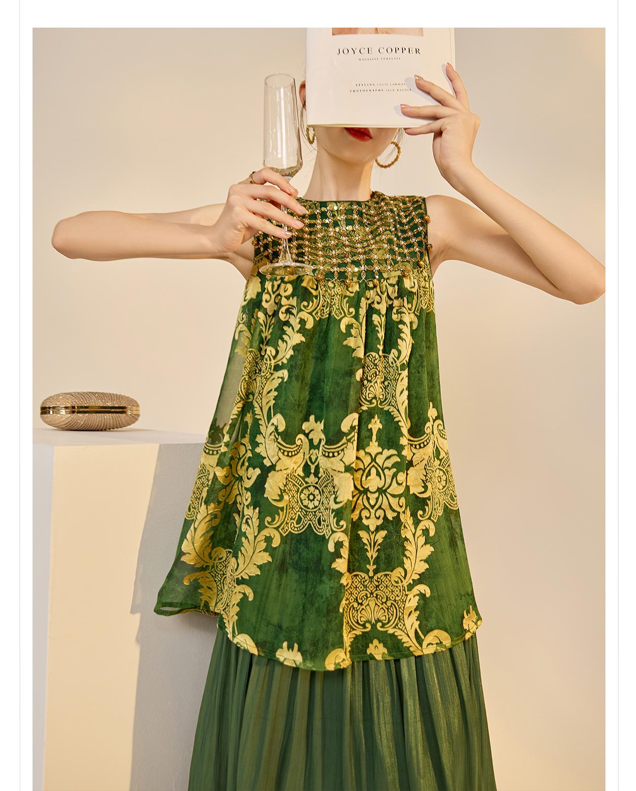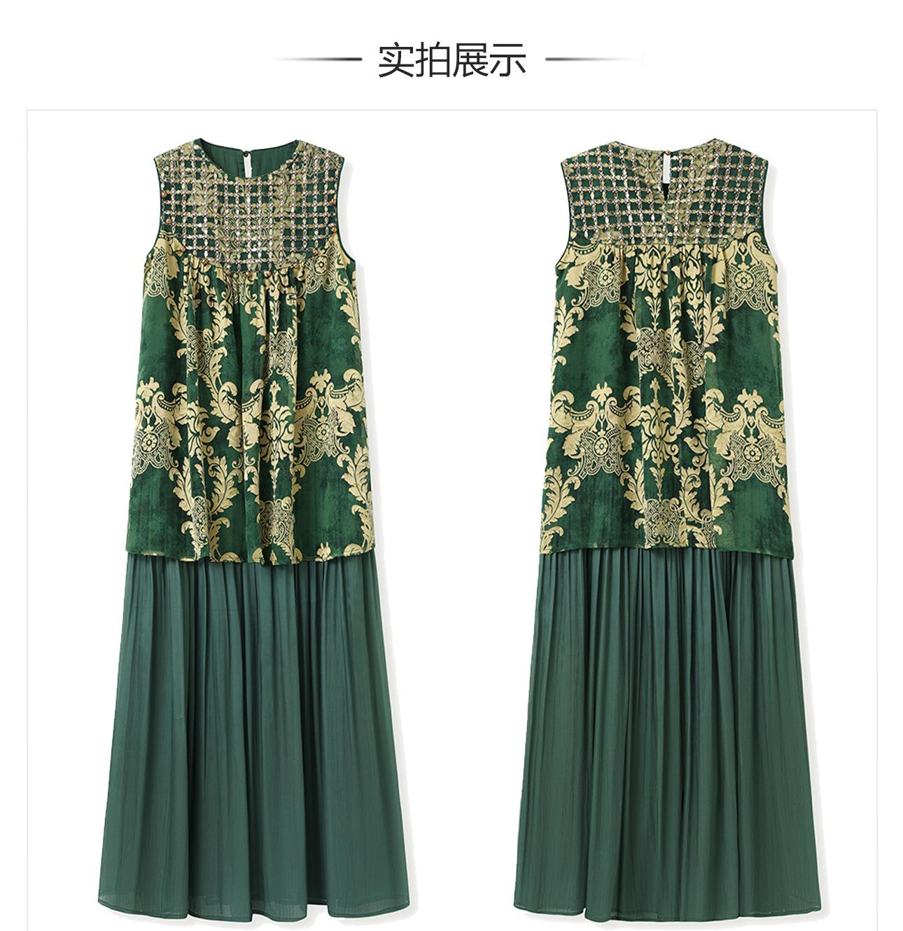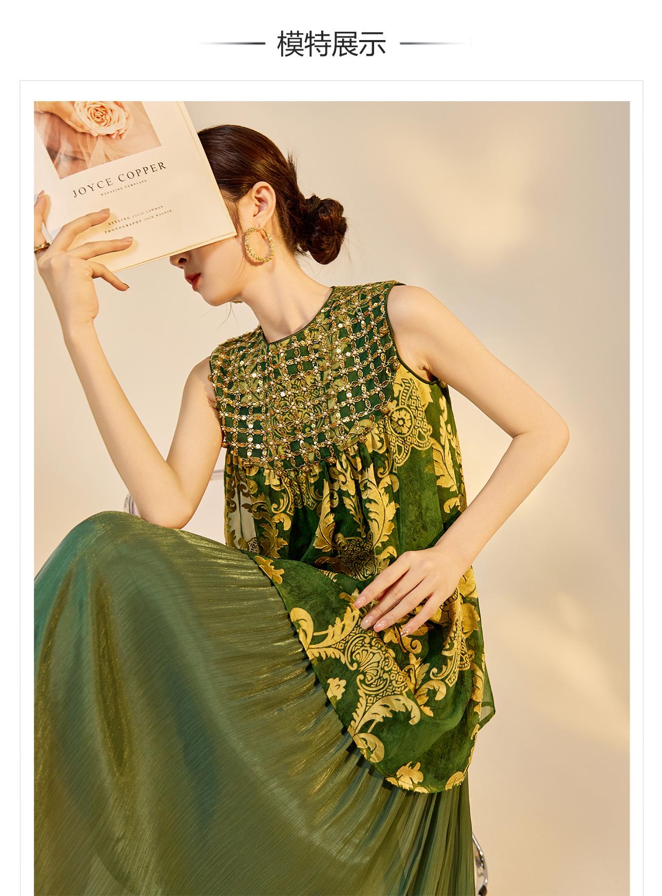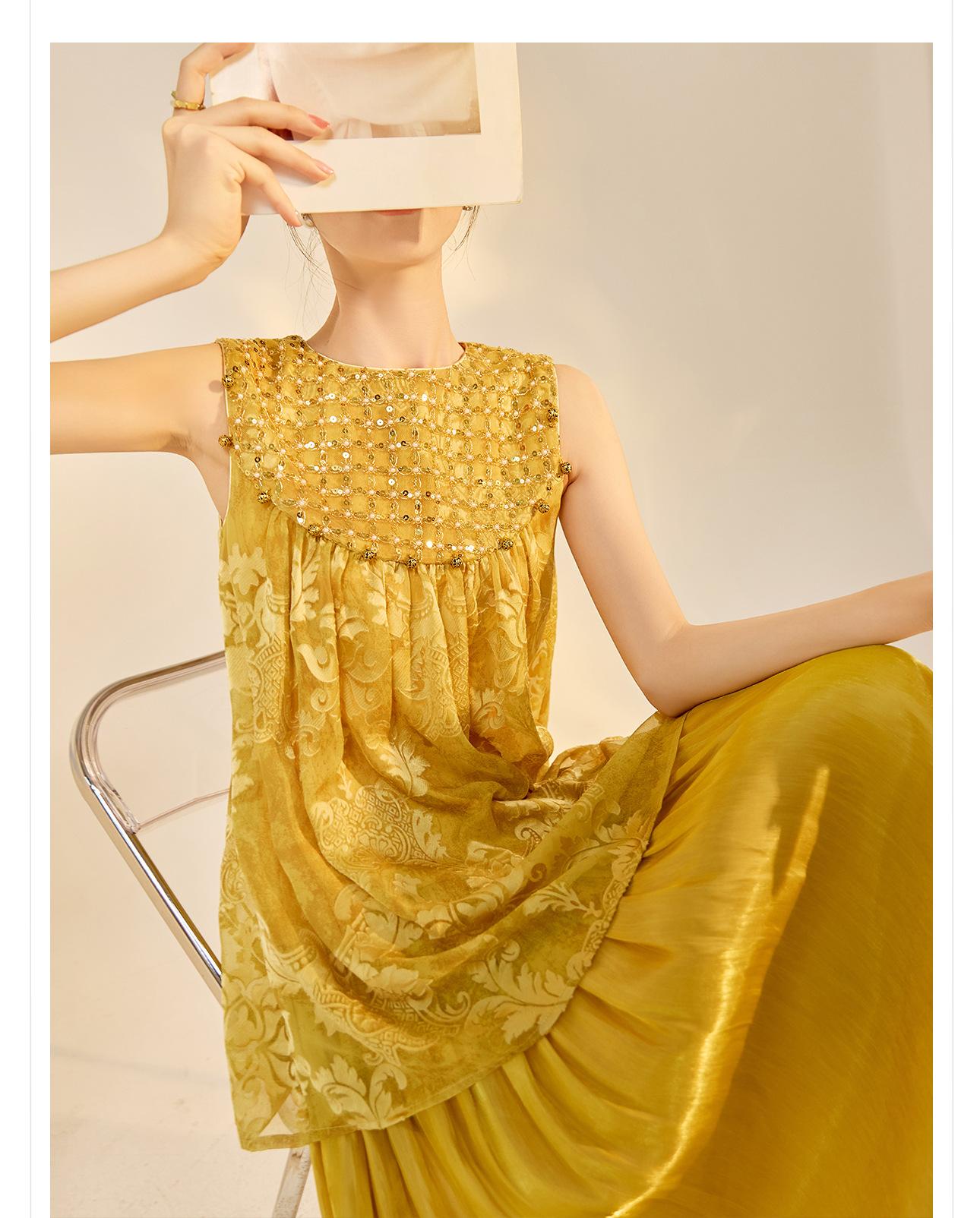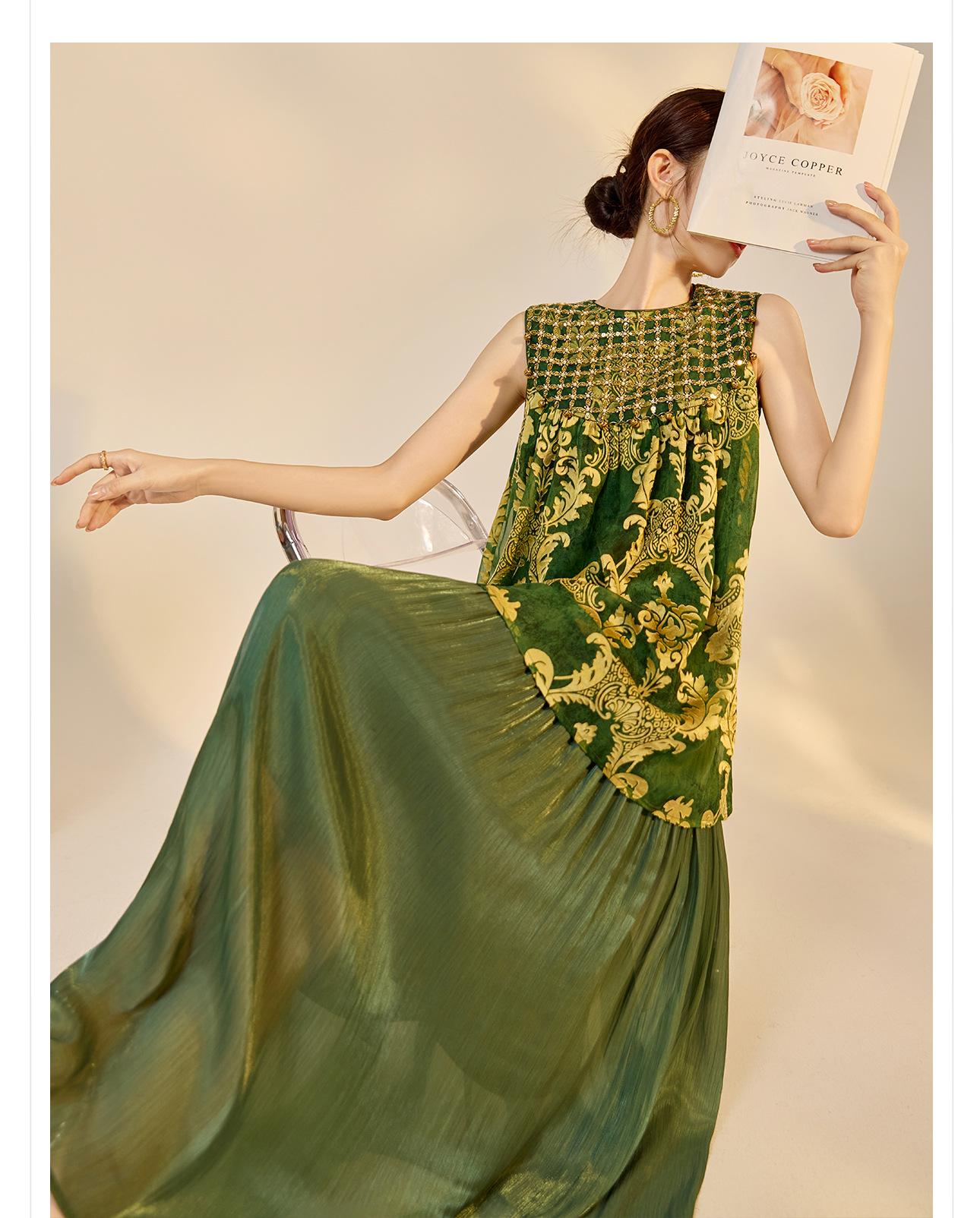 Verano Nuevo Estilo Chino Vestido Largo de Hadas Empalmado de Alta Gama Estilo Nacional Nuevo Estilo Vestido de Lentejuelas Rayón Sin Mangas Mujer N6041