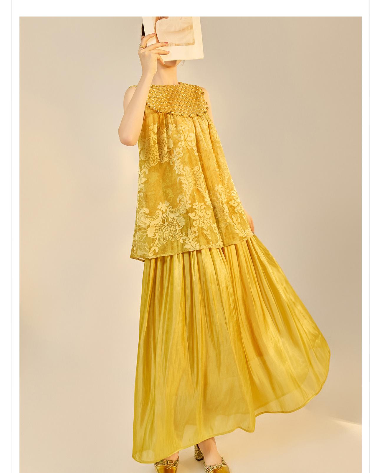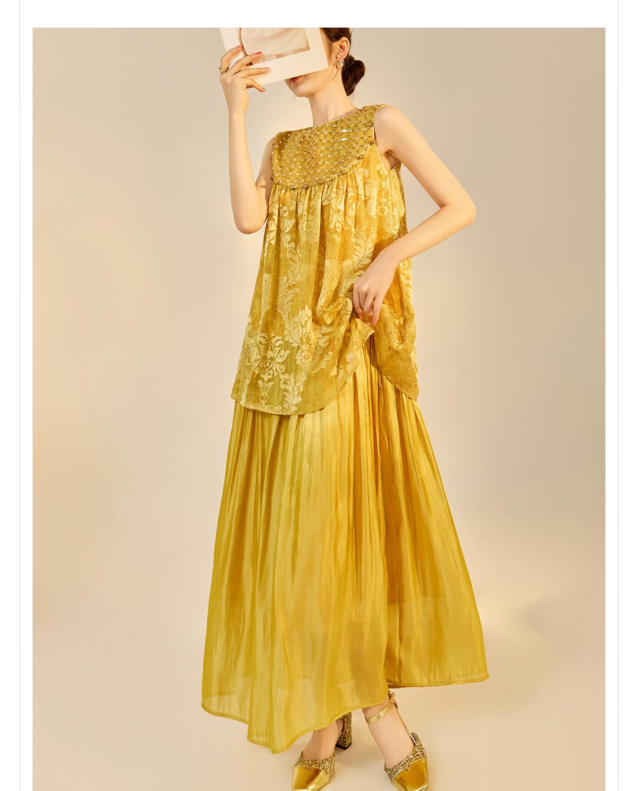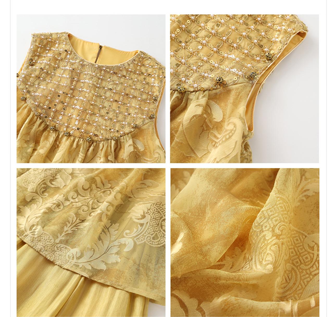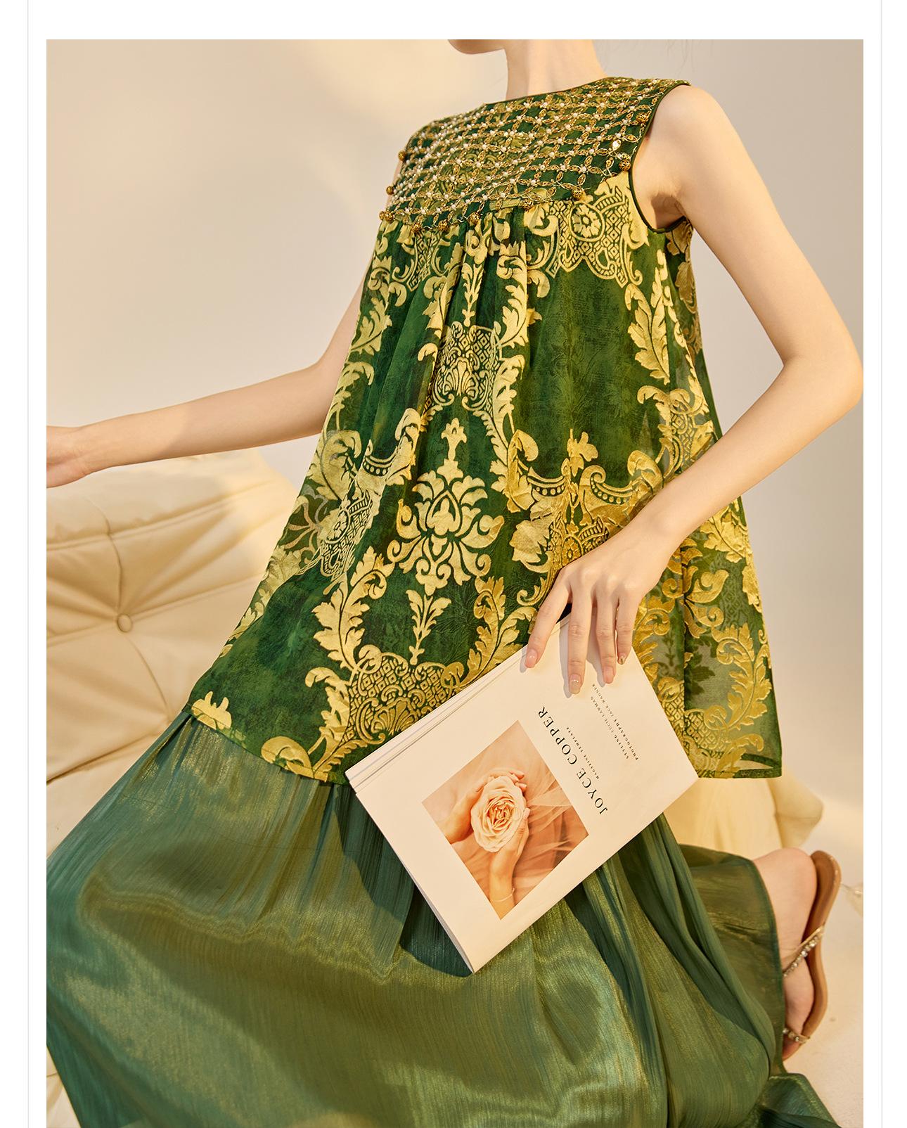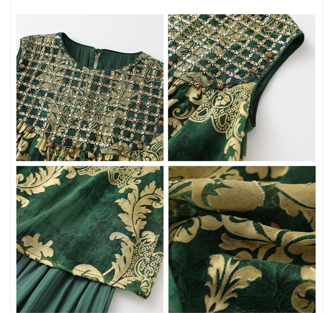 Verano Nuevo Estilo Chino Vestido Largo de Hadas Empalmado de Alta Gama Estilo Nacional Nuevo Estilo Vestido de Lentejuelas Rayón Sin Mangas Mujer N6041