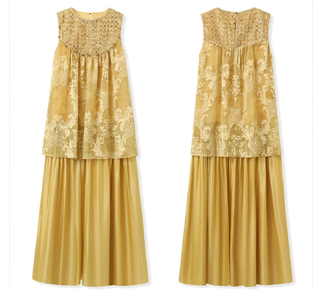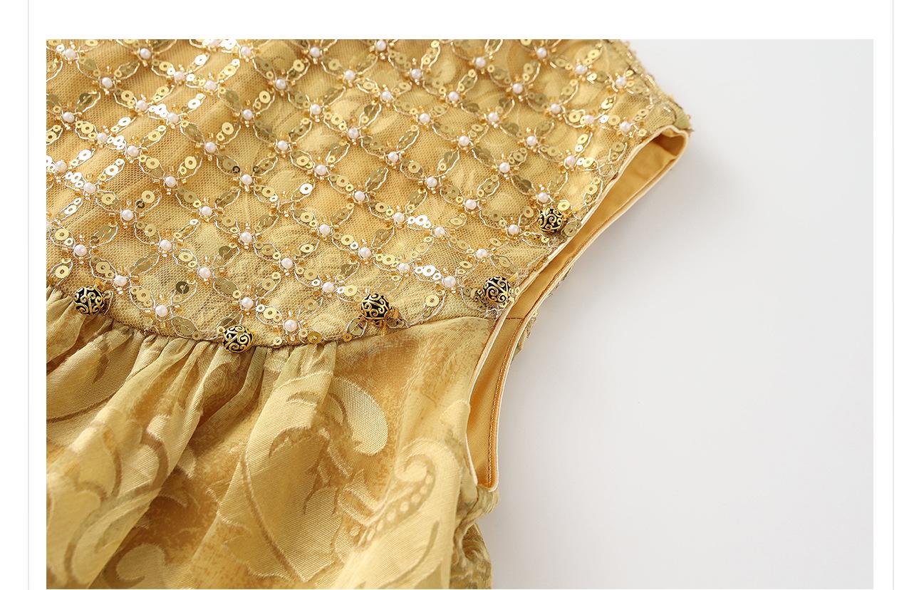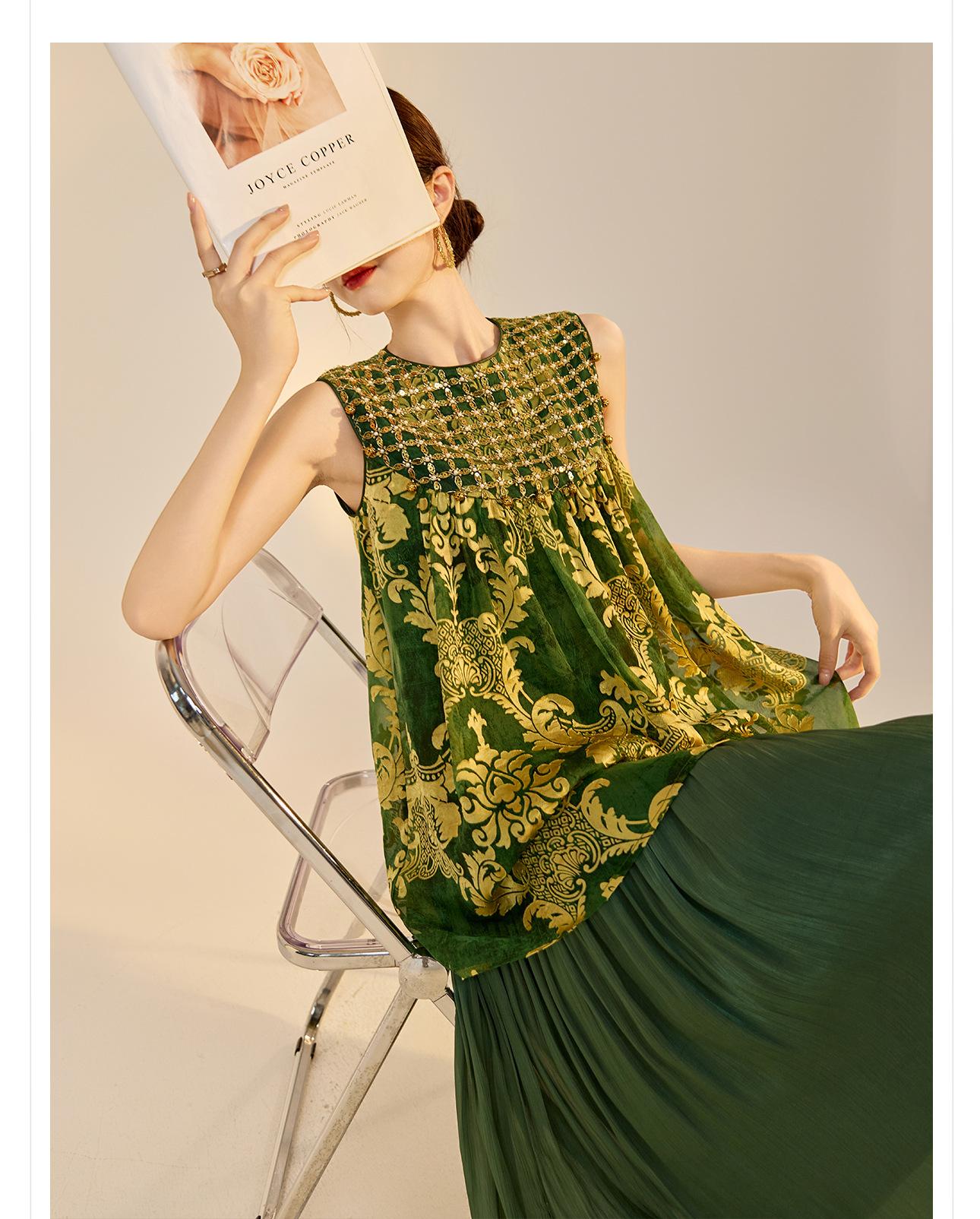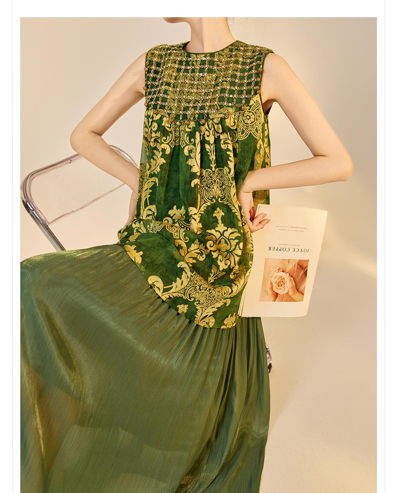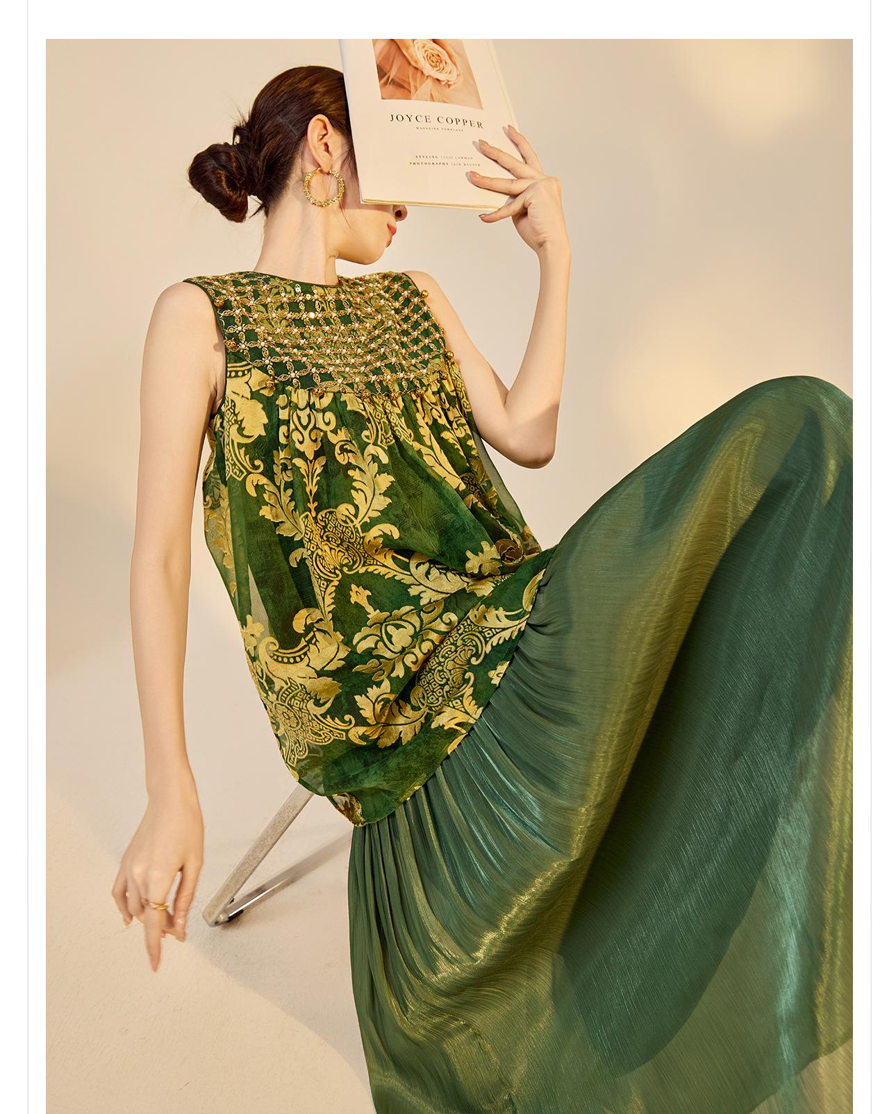 Verano Nuevo Estilo Chino Vestido Largo de Hadas Empalmado de Alta Gama Estilo Nacional Nuevo Estilo Vestido de Lentejuelas Rayón Sin Mangas Mujer N6041