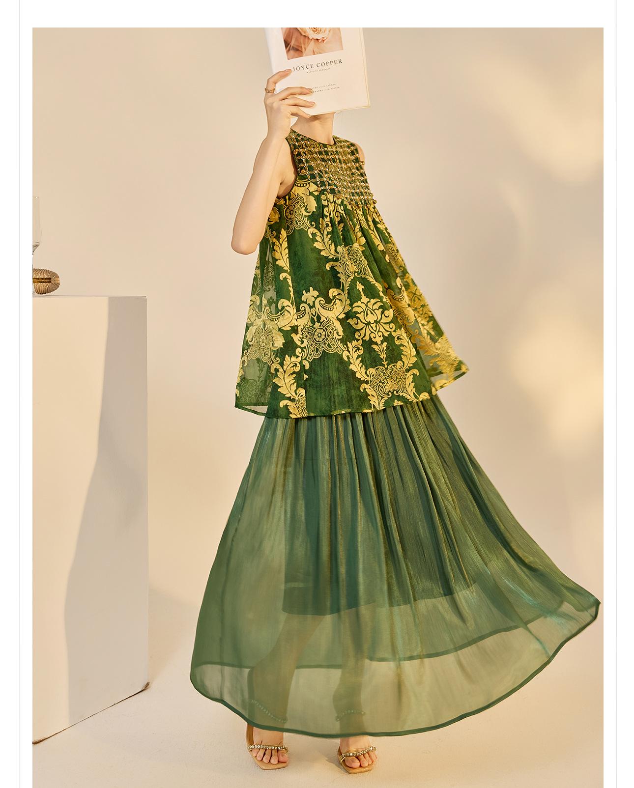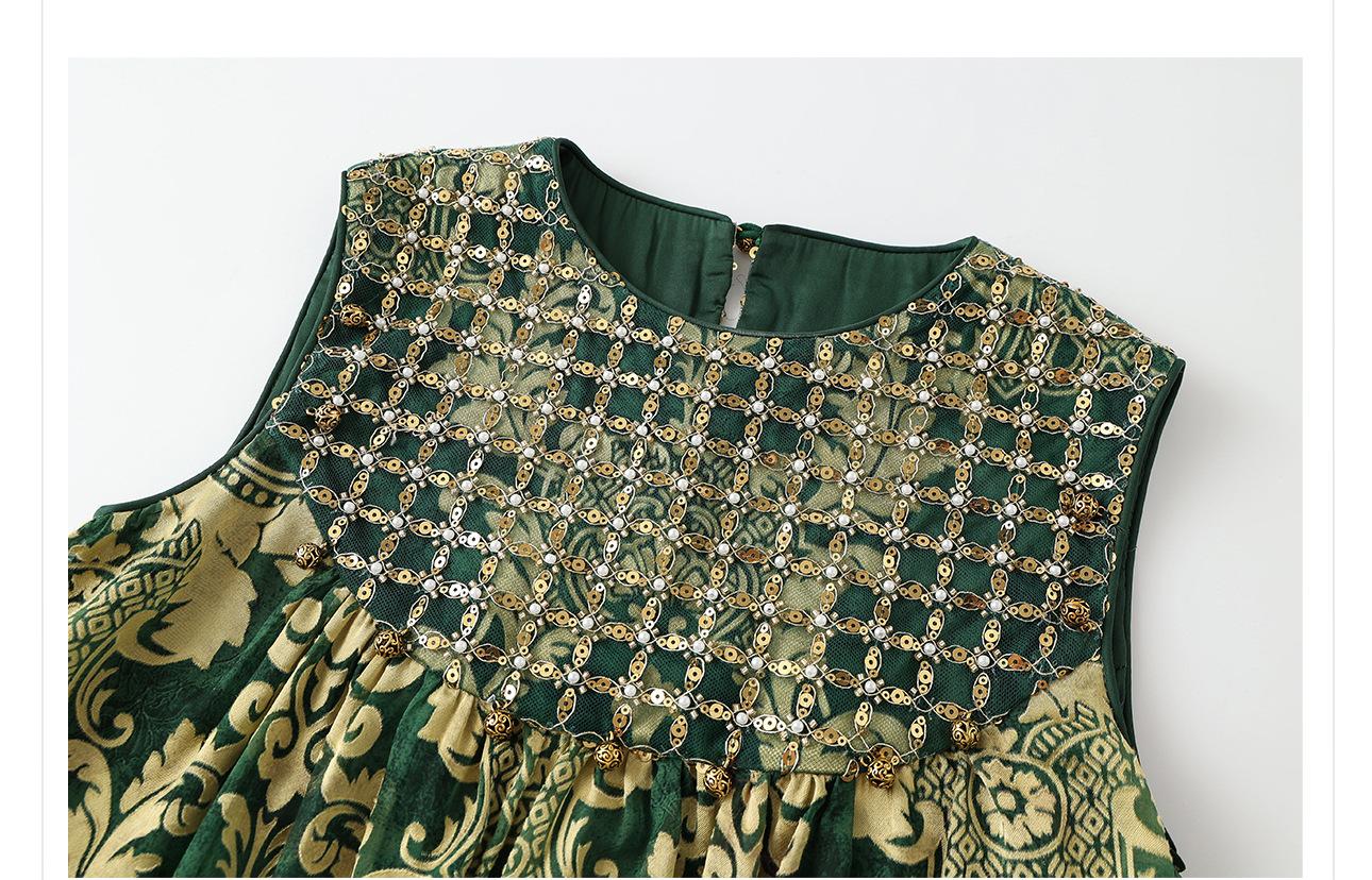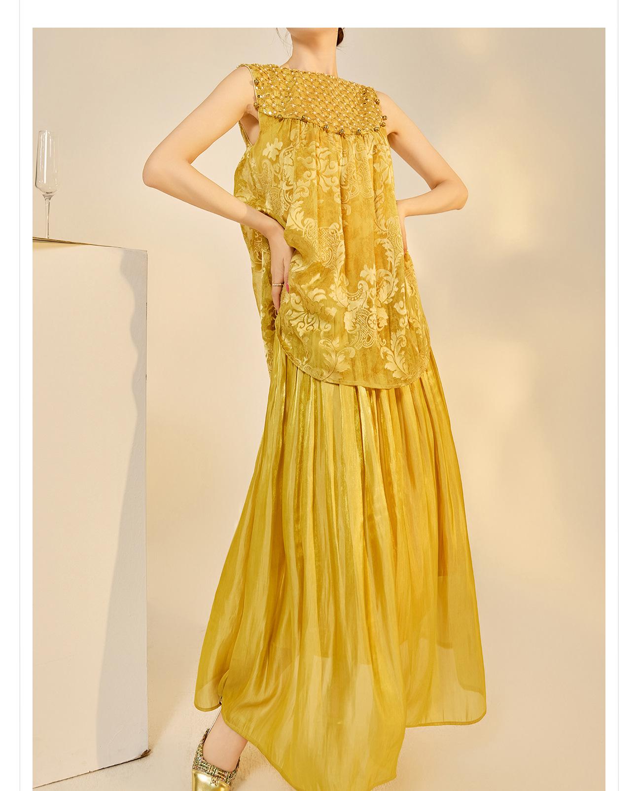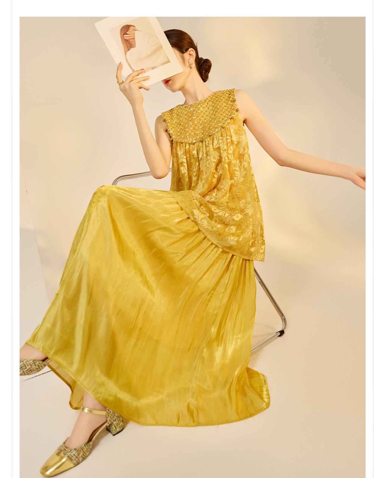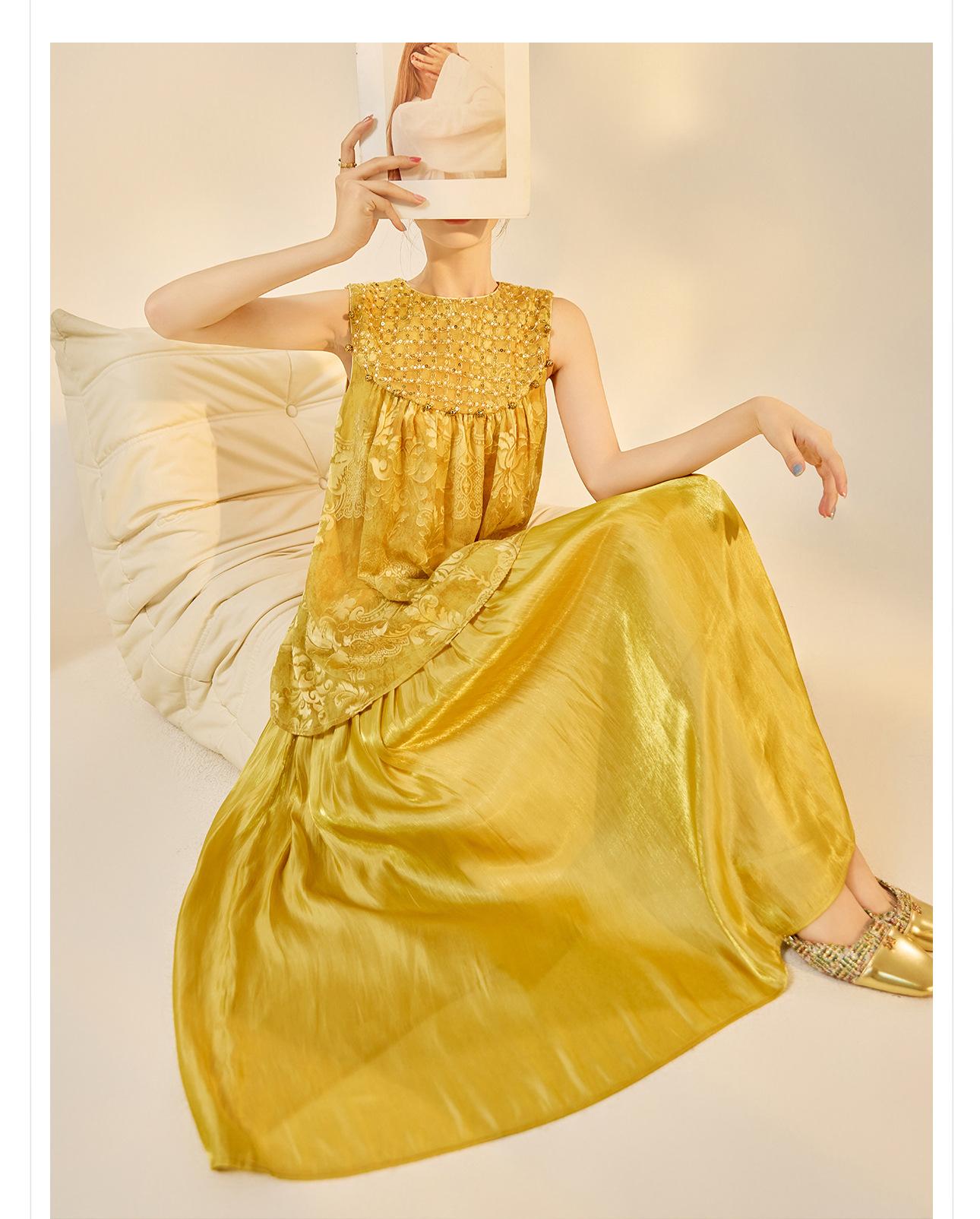 Verano Nuevo Estilo Chino Vestido Largo de Hadas Empalmado de Alta Gama Estilo Nacional Nuevo Estilo Vestido de Lentejuelas Rayón Sin Mangas Mujer N6041