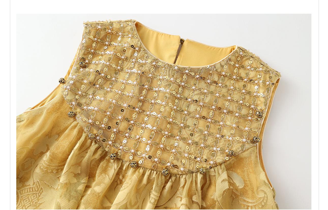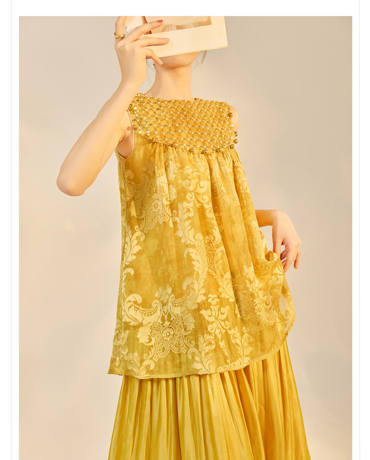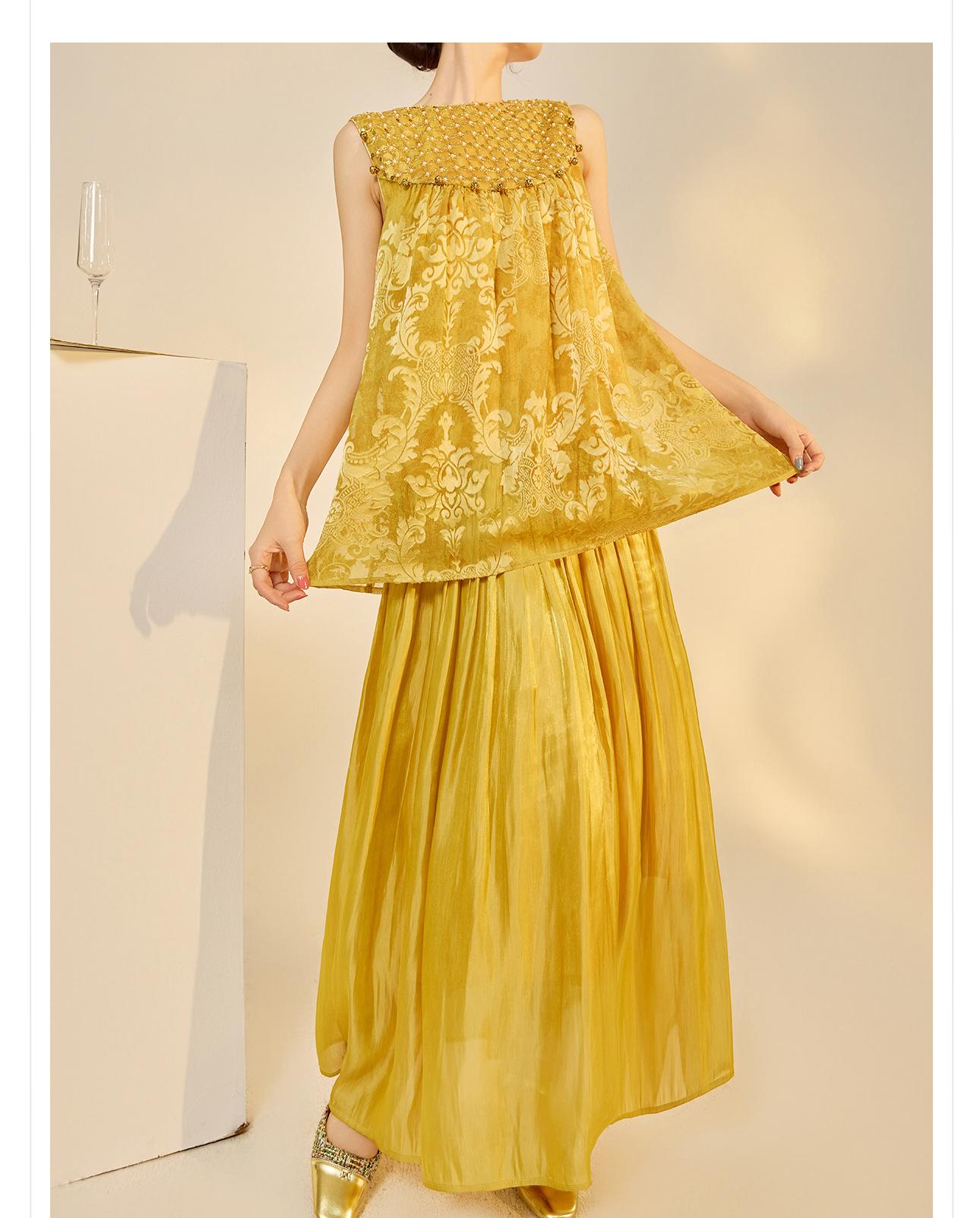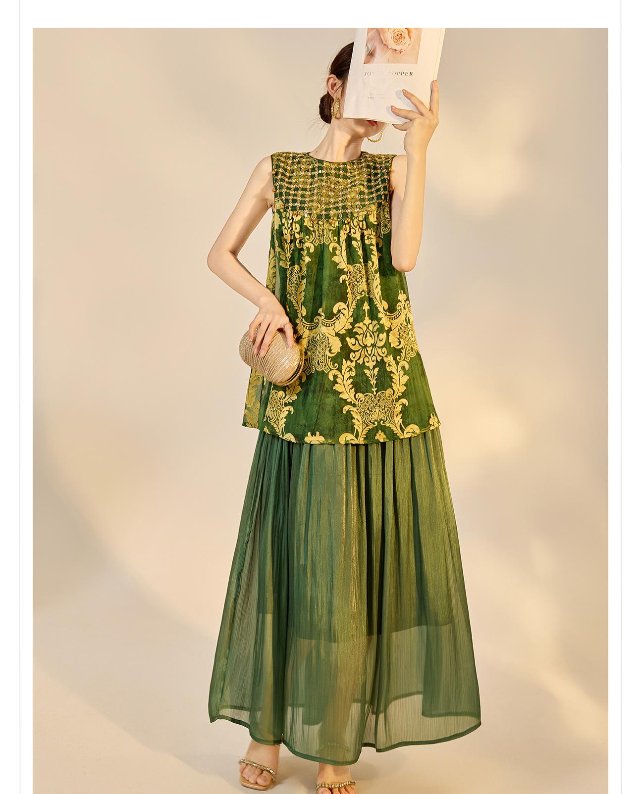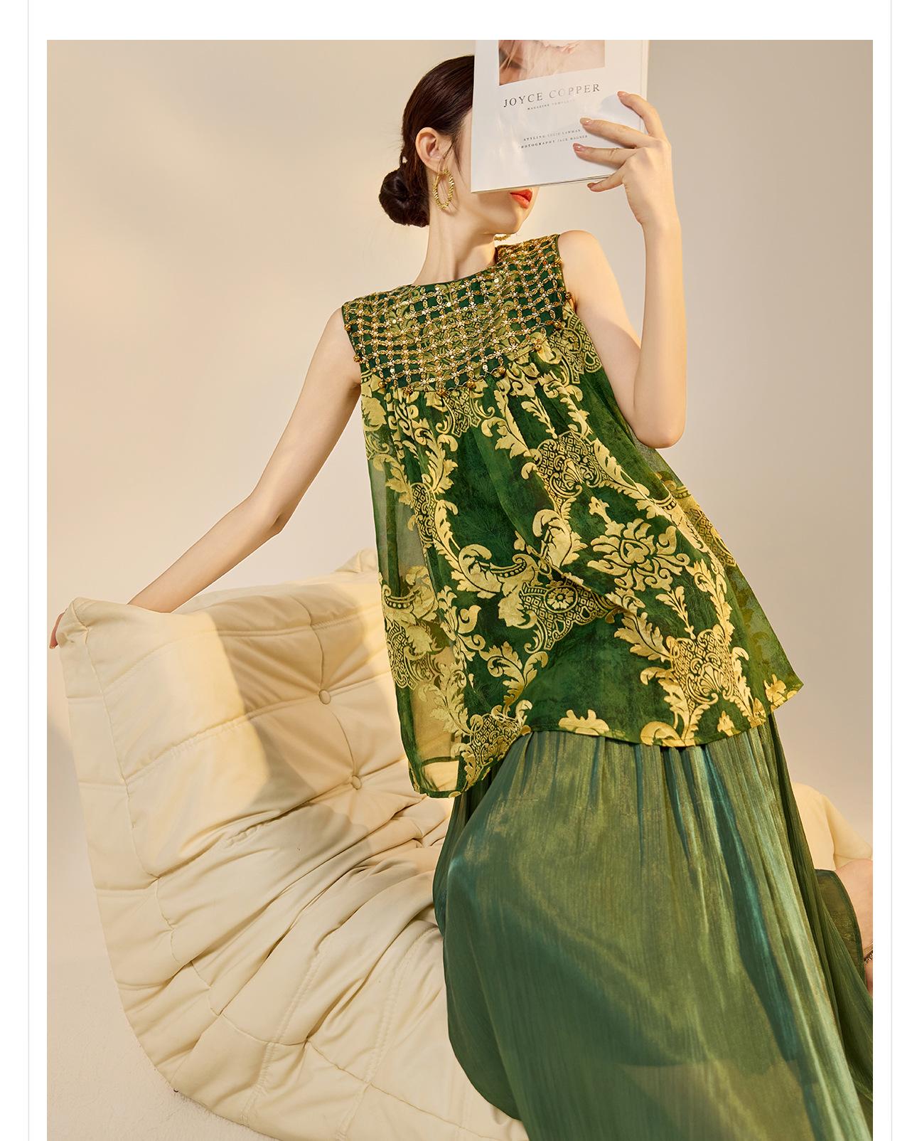 Verano Nuevo Estilo Chino Vestido Largo de Hadas Empalmado de Alta Gama Estilo Nacional Nuevo Estilo Vestido de Lentejuelas Rayón Sin Mangas Mujer N6041