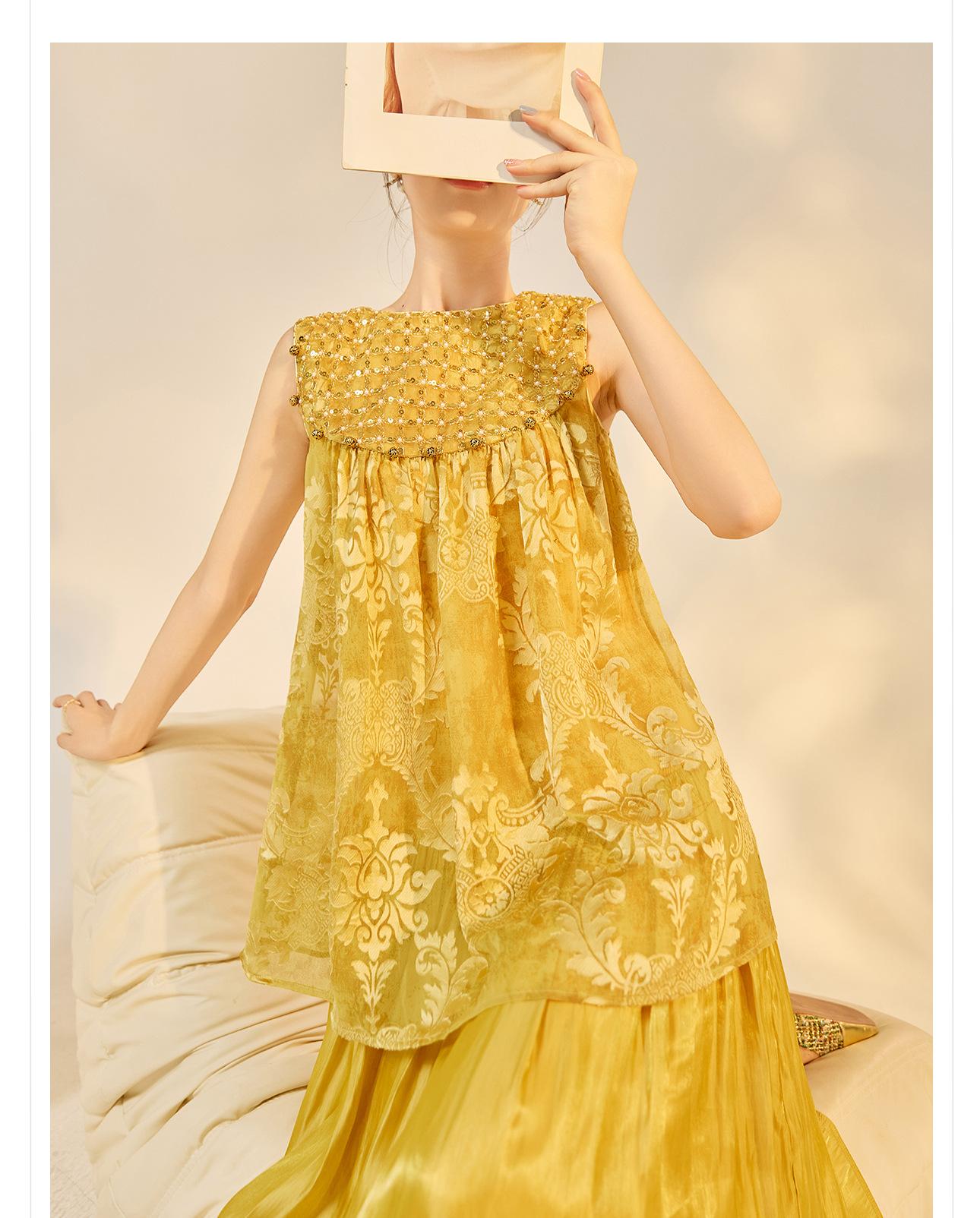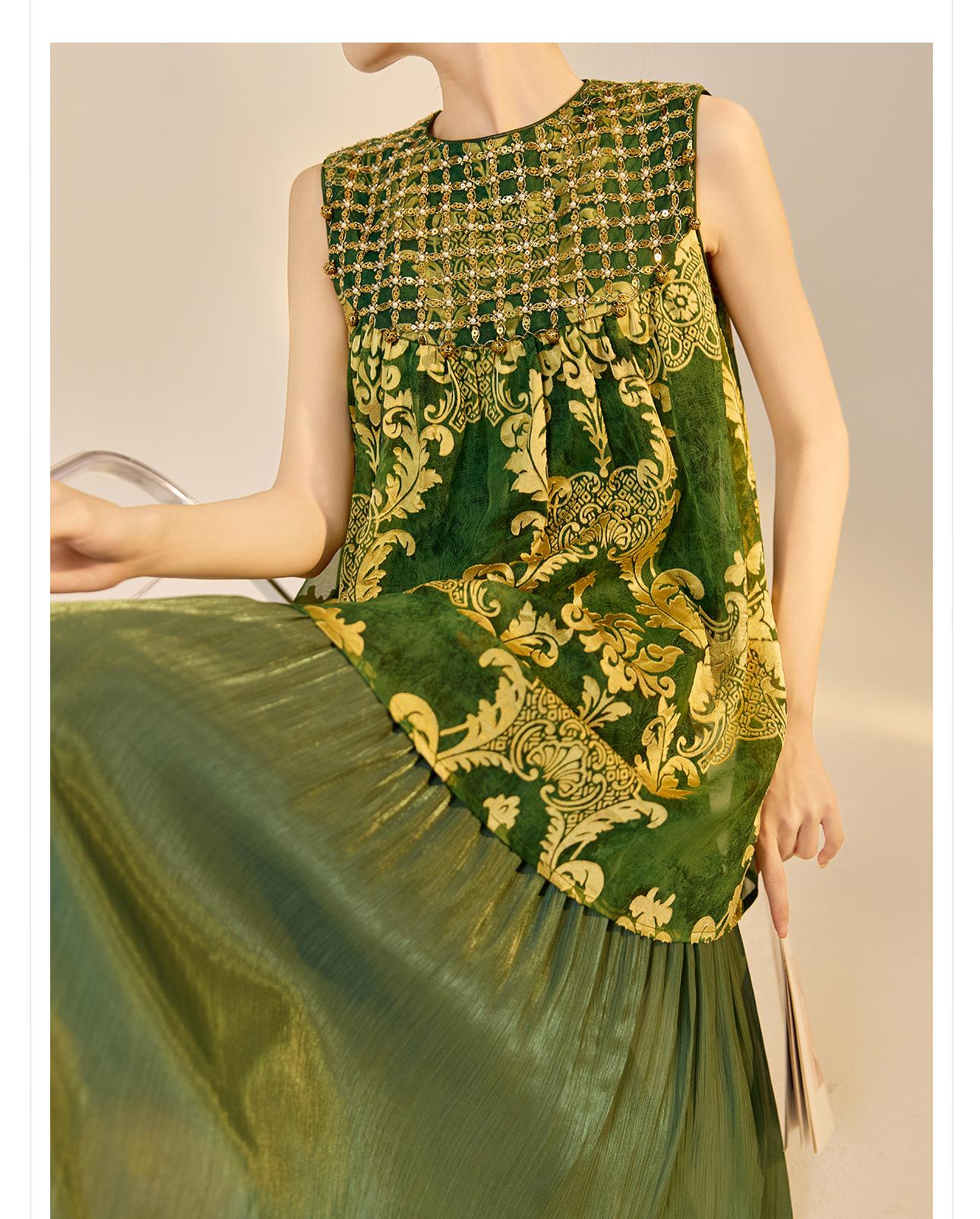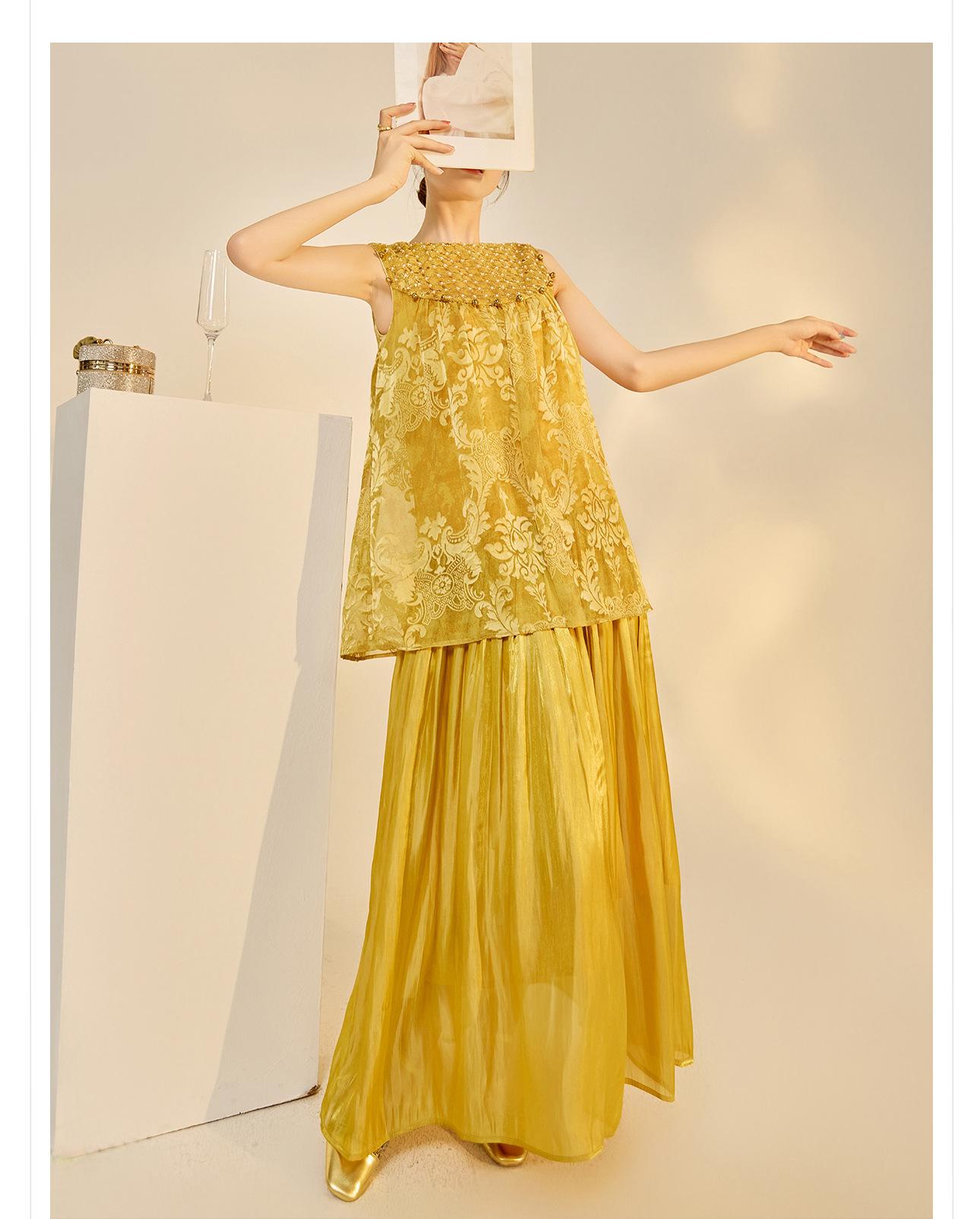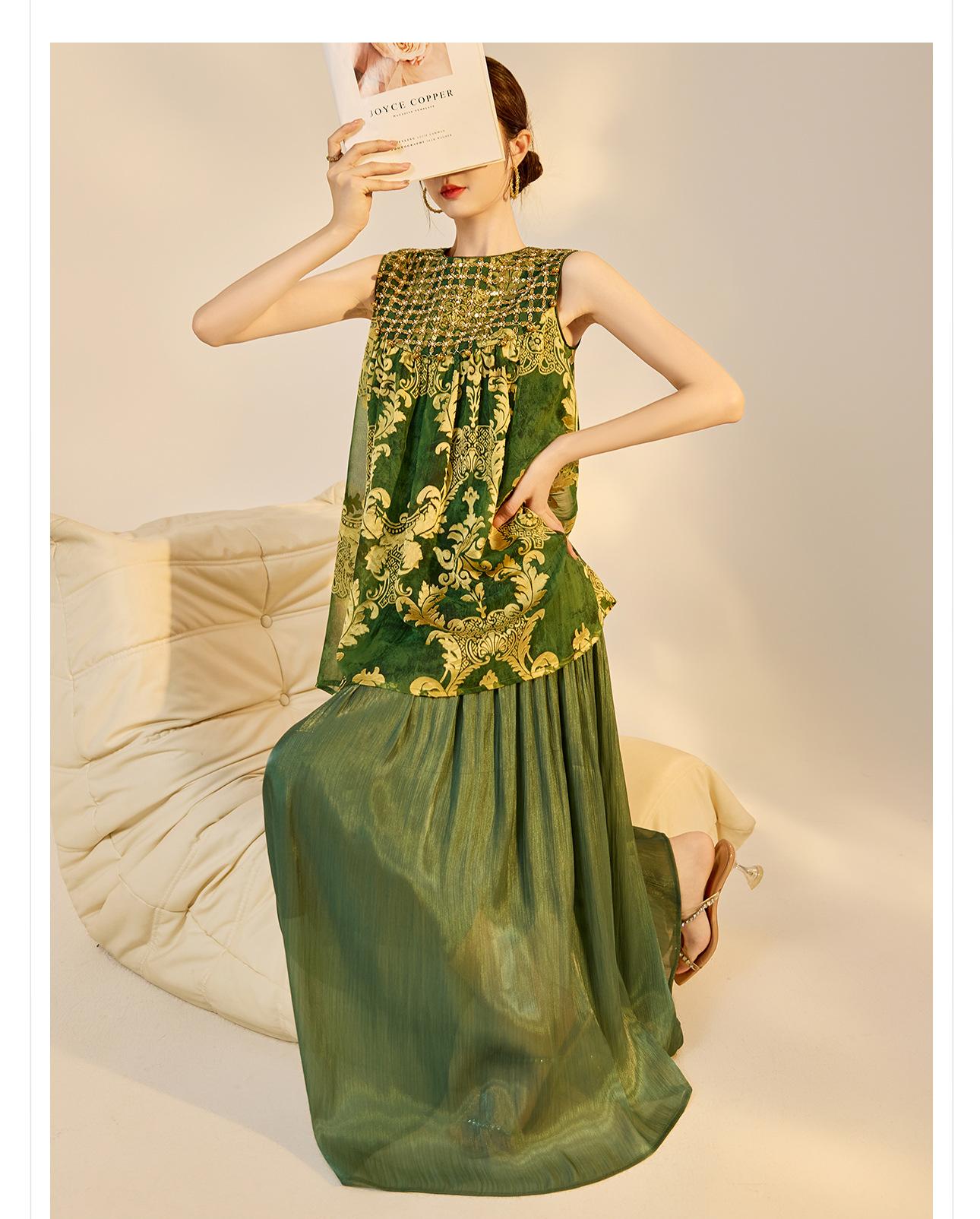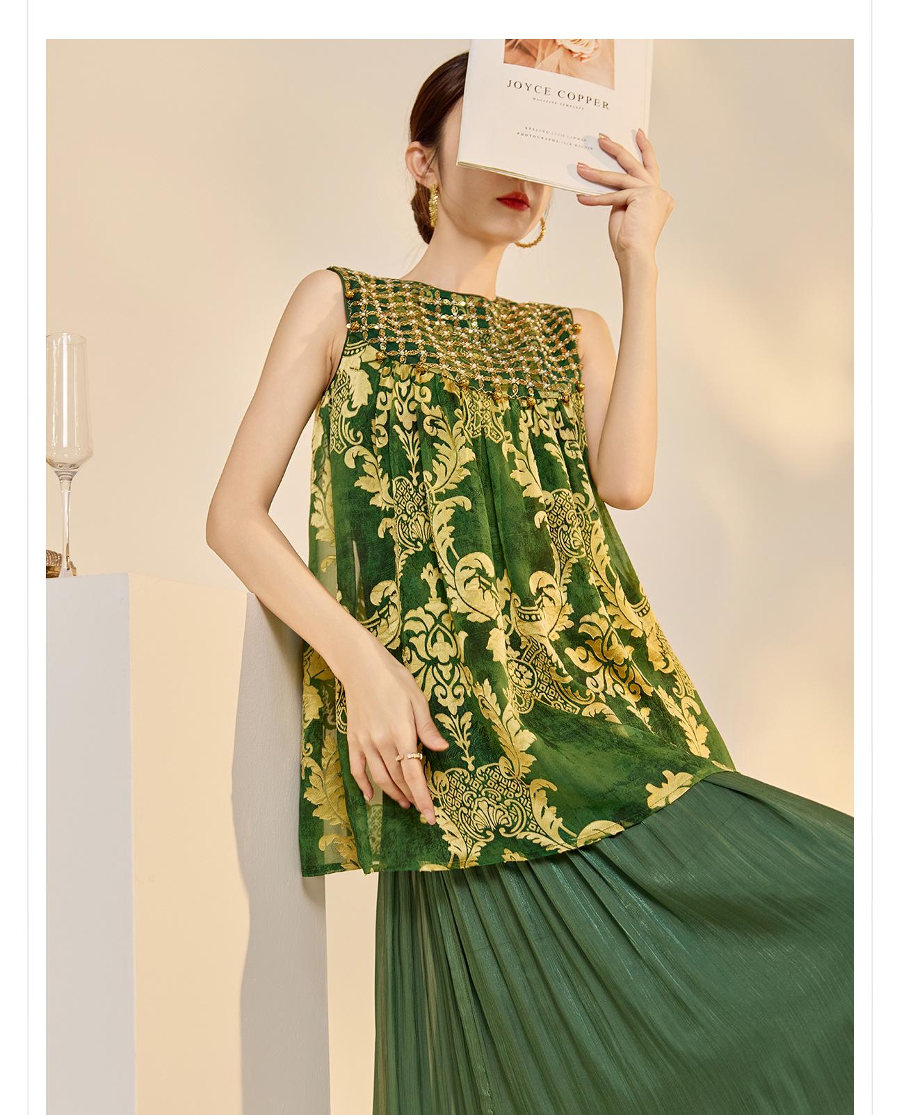 Verano Nuevo Estilo Chino Vestido Largo de Hadas Empalmado de Alta Gama Estilo Nacional Nuevo Estilo Vestido de Lentejuelas Rayón Sin Mangas Mujer N6041