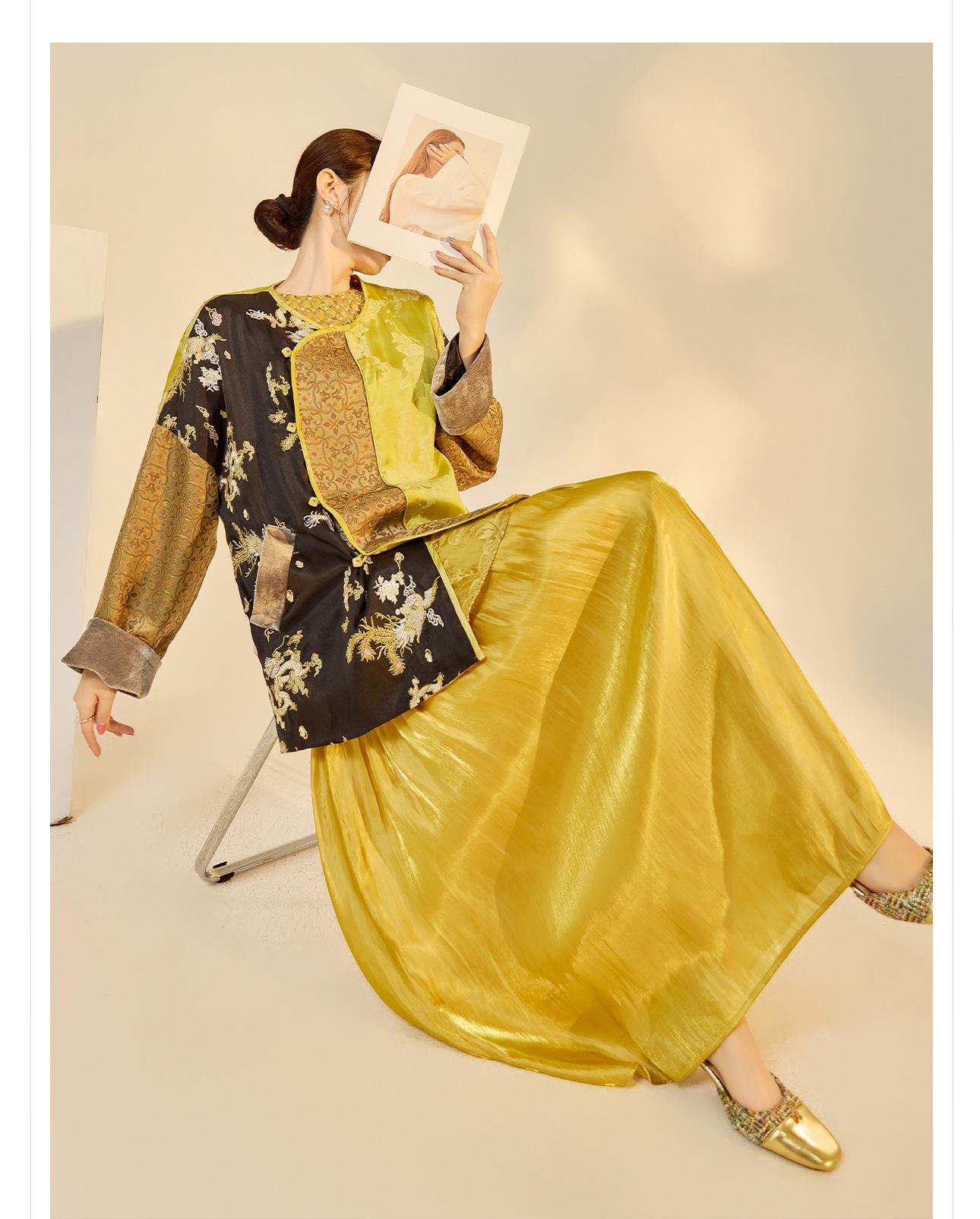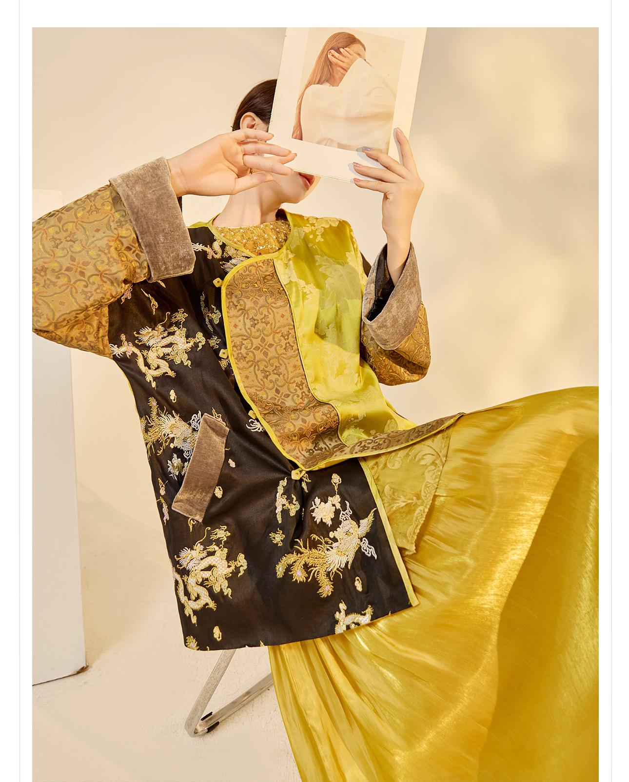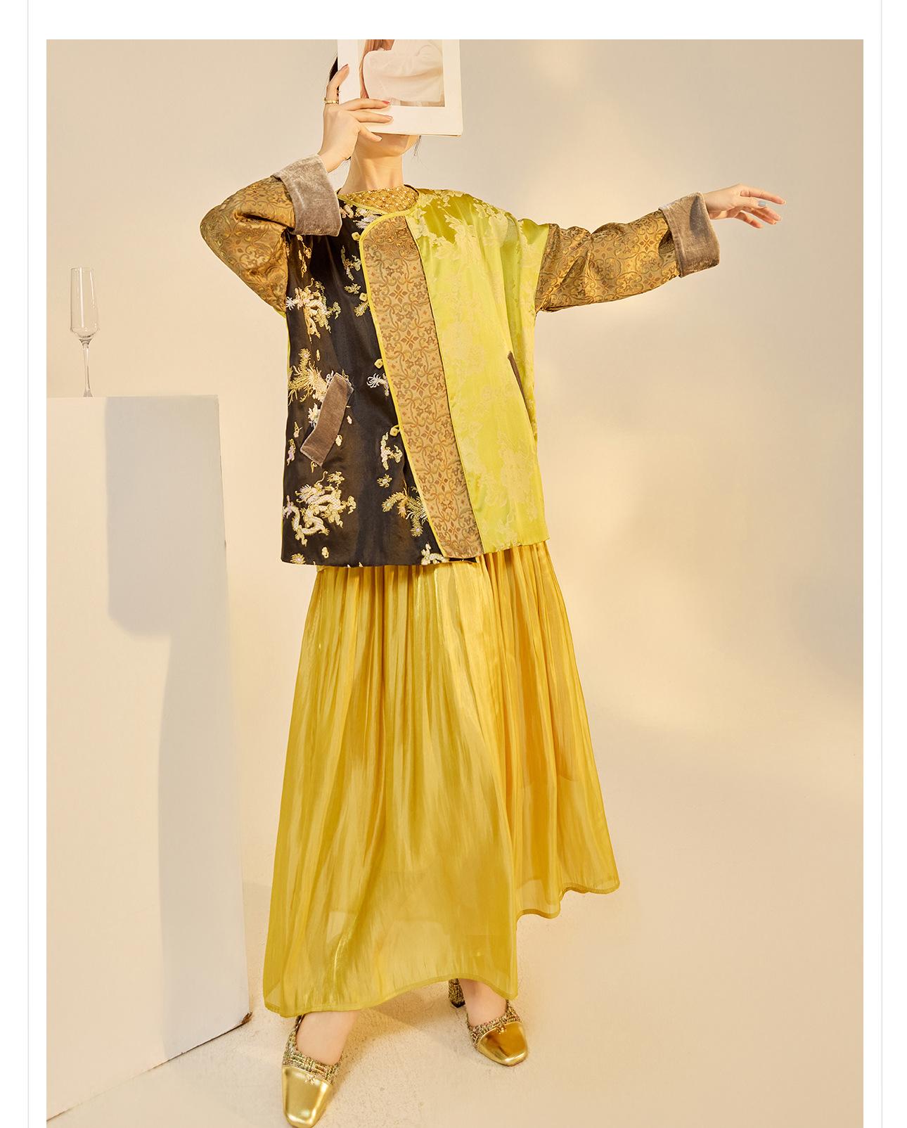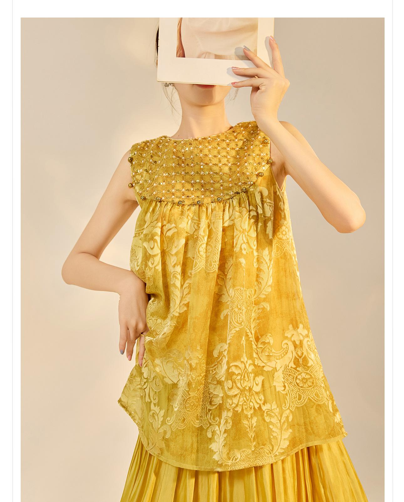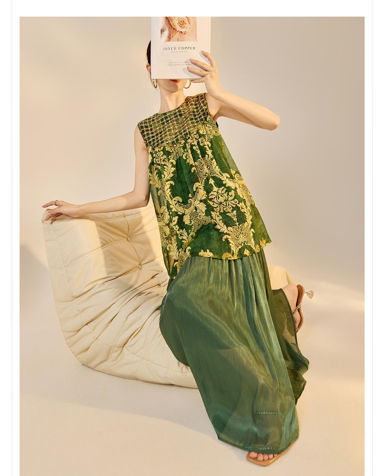 Verano Nuevo Estilo Chino Vestido Largo de Hadas Empalmado de Alta Gama Estilo Nacional Nuevo Estilo Vestido de Lentejuelas Rayón Sin Mangas Mujer N6041