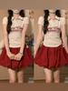 Falda Corta Floral Roja para Mujer, Verano 2026 Nueva Versátil Linterna Línea A Antiexposición Falda Abullonada para Figuras Pequeñas
