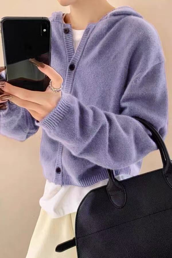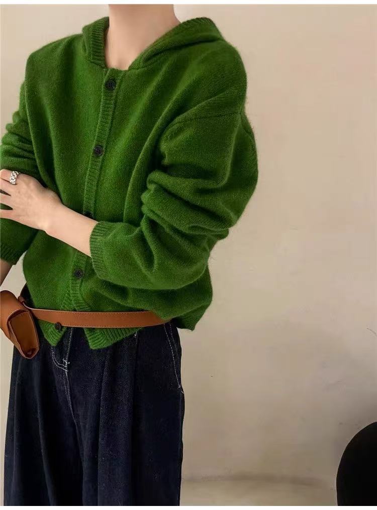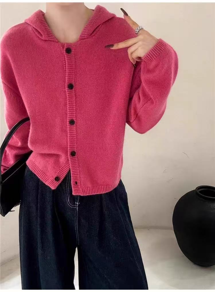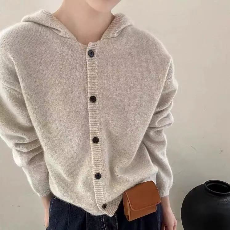Cárdigan Retro 2025 Otoño/Invierno Nuevo Cárdigan Casual con Capucha Tejido Cárdigan Mujeres Suéter Holgado Suave Adelgazante Abrigo Mujeres
