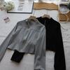 [Bi Zheng] Otoño 2025 Nuevo Estilo Coreano Chaqueta Corta Versátil Casual Adelgazante con Cuello Mao y Doble Cremallera para Mujer 4714