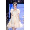 Vestido de Té con Lazo Francés y Manga Abullonada para Mujer Verano Dulce Elegante Cintura Adelgazante Look Estampado Azul Vestido de Vacaciones