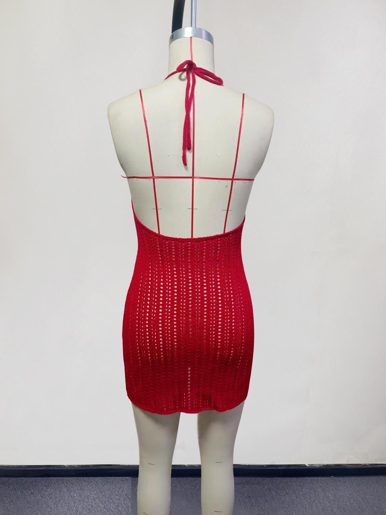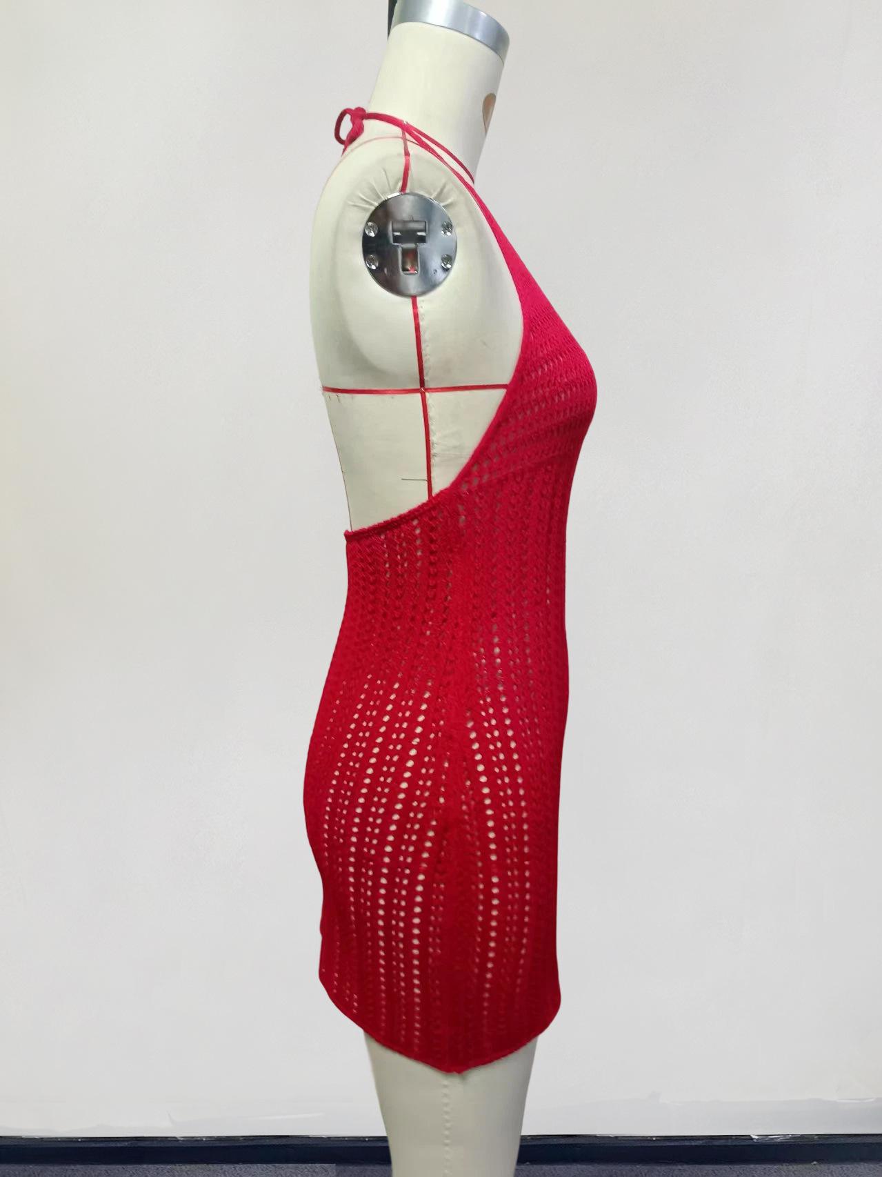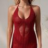 2025 Europeo y Americano Transfronterizo Nuevo Sexy Calado Sin Espalda con Cordones Ajustado Tejido Vestido de Playa Vacaciones en la Costa Cover-up Mujeres