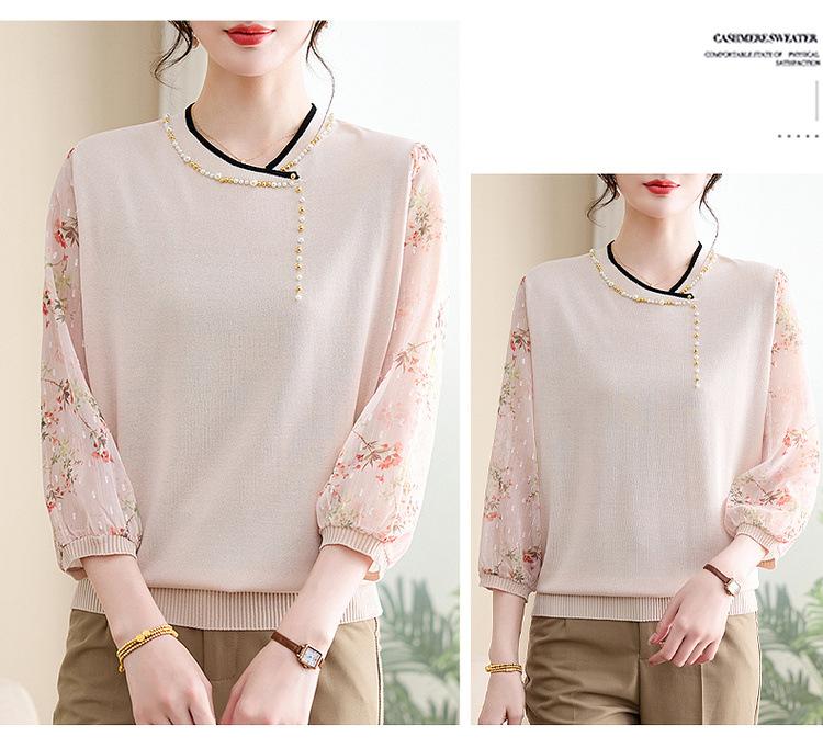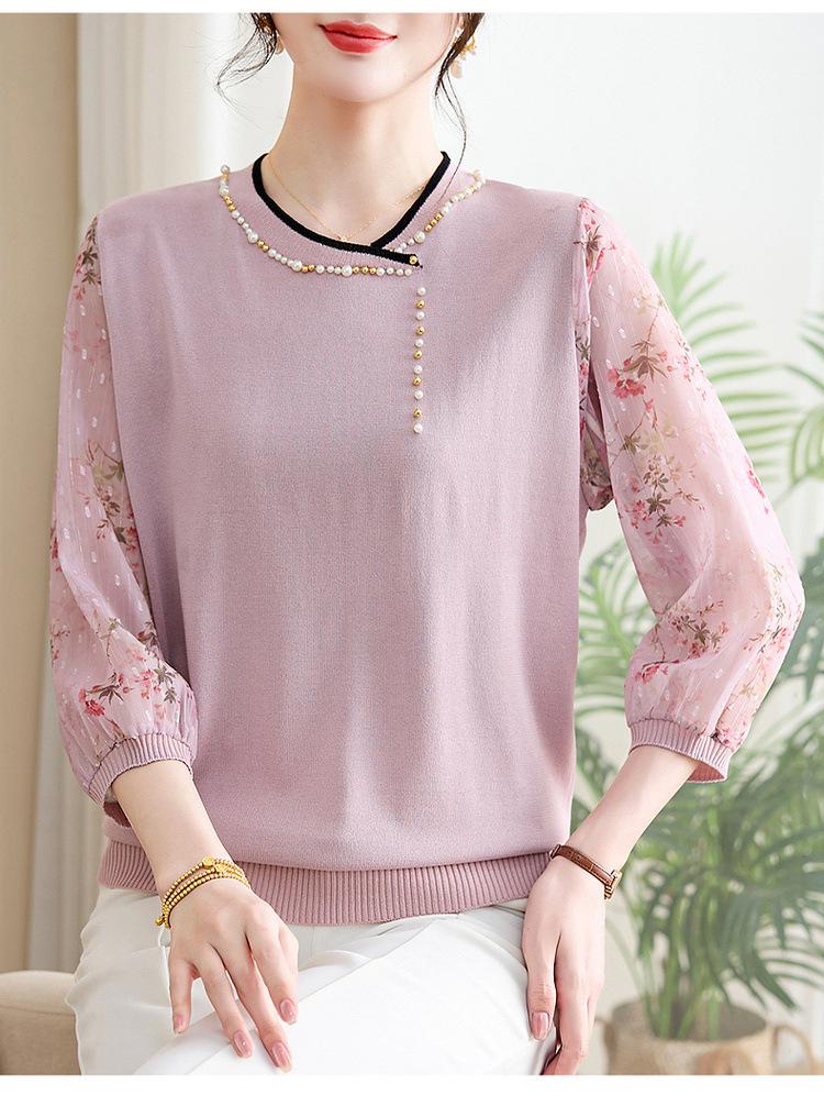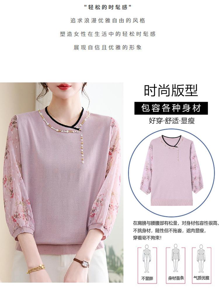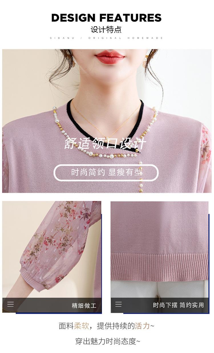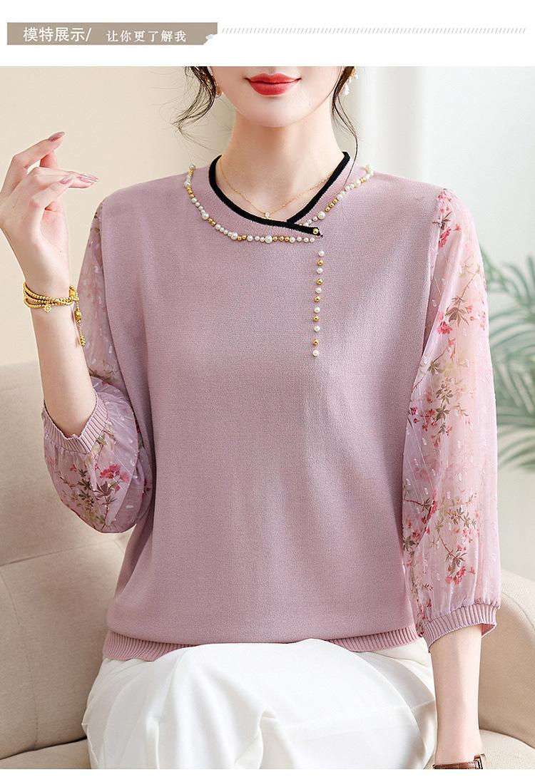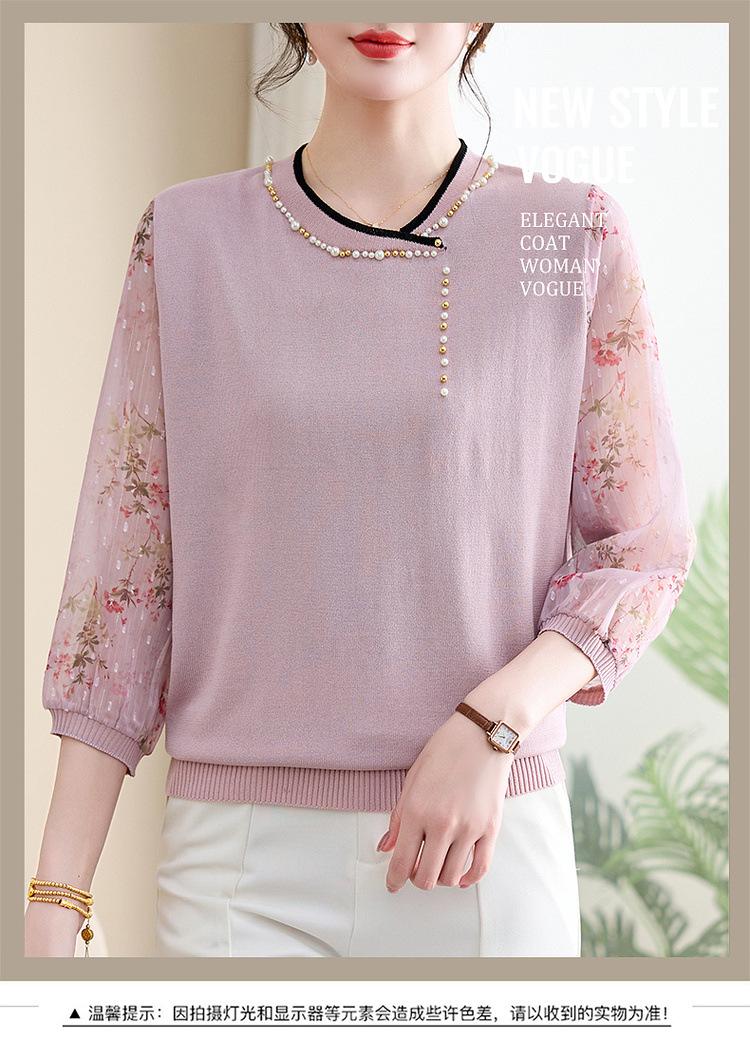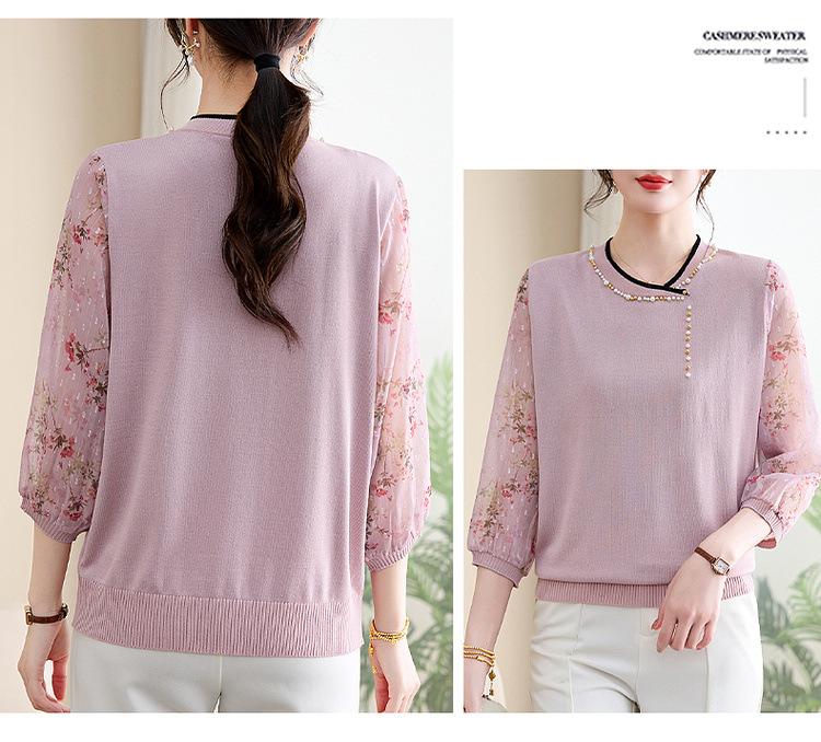 Nueva blusa de punto para mujer, blusa fina de verano para madres de mediana edad y mayores, ropa de verano de moda para mujer, mangas tres cuartos, principios de verano