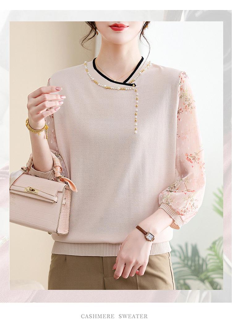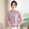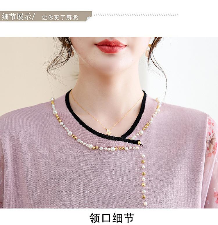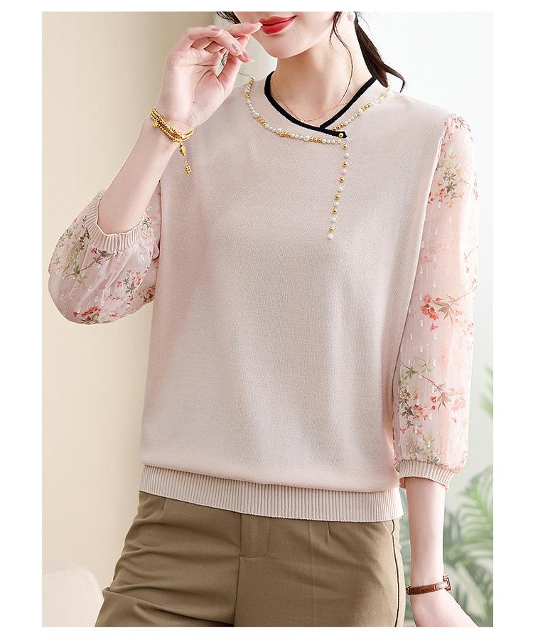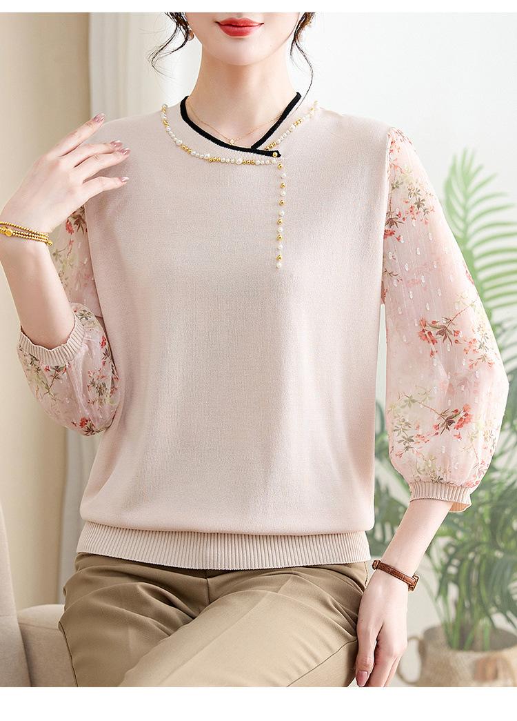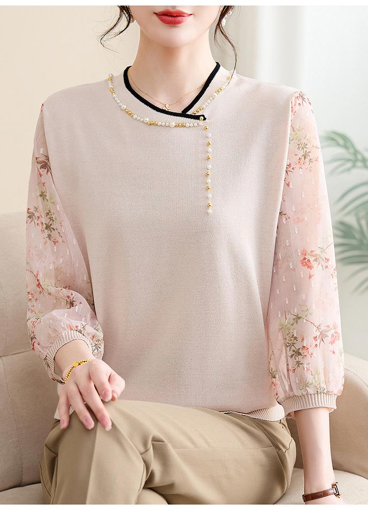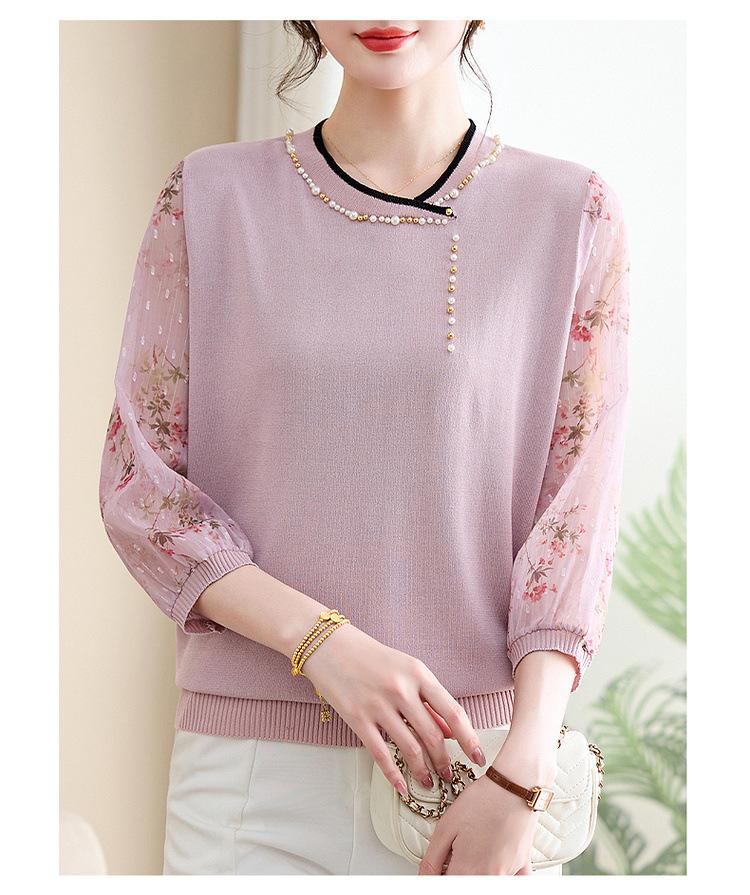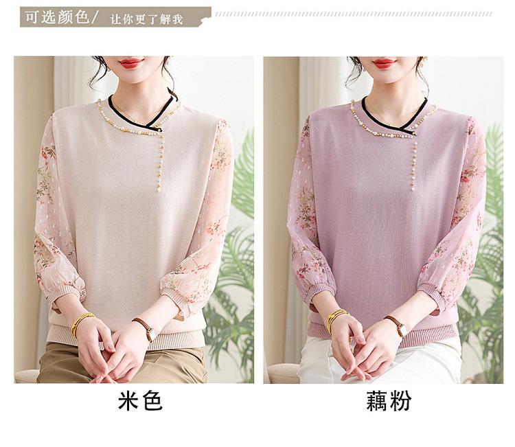 Nueva blusa de punto para mujer, blusa fina de verano para madres de mediana edad y mayores, ropa de verano de moda para mujer, mangas tres cuartos, principios de verano
