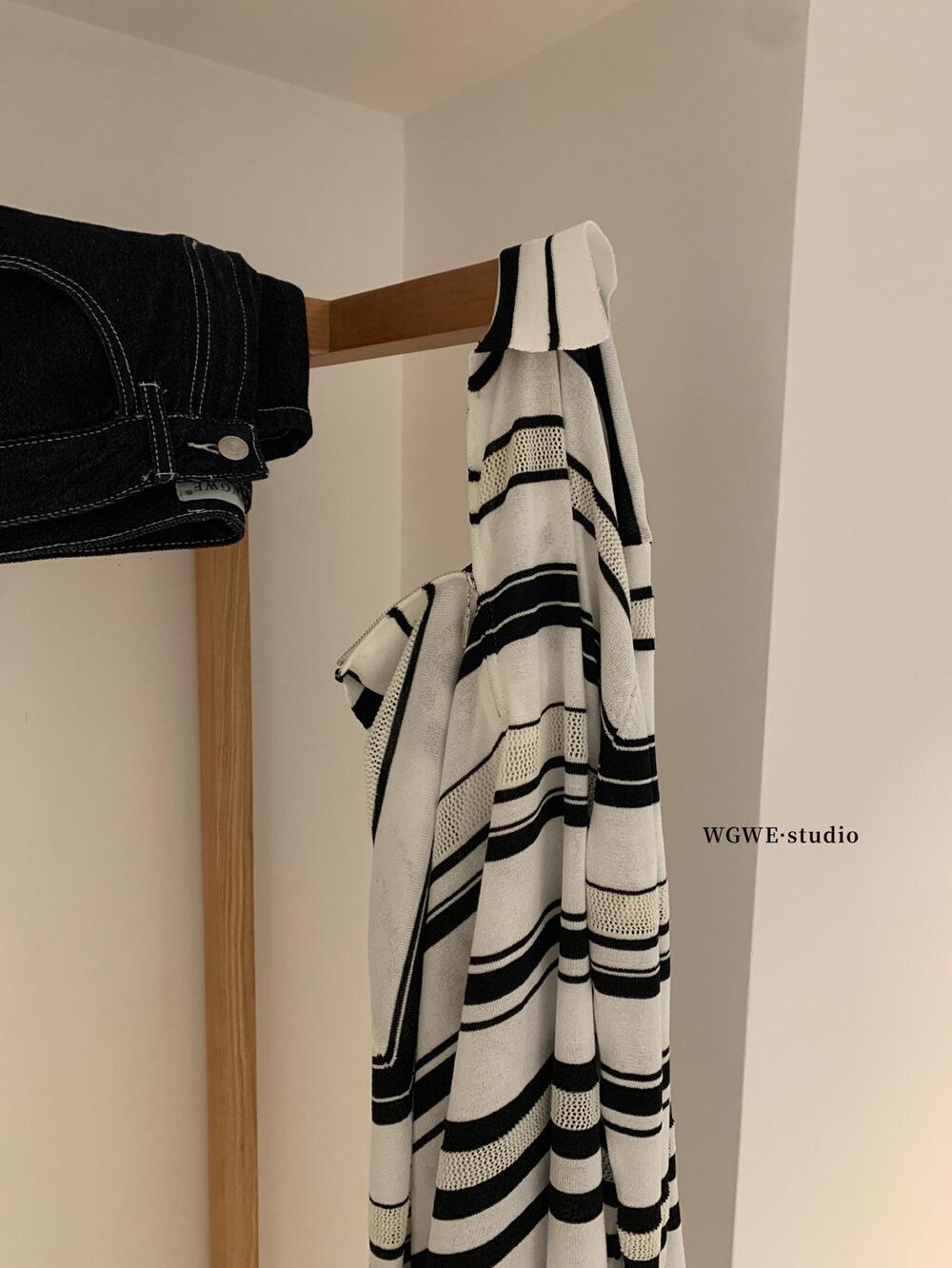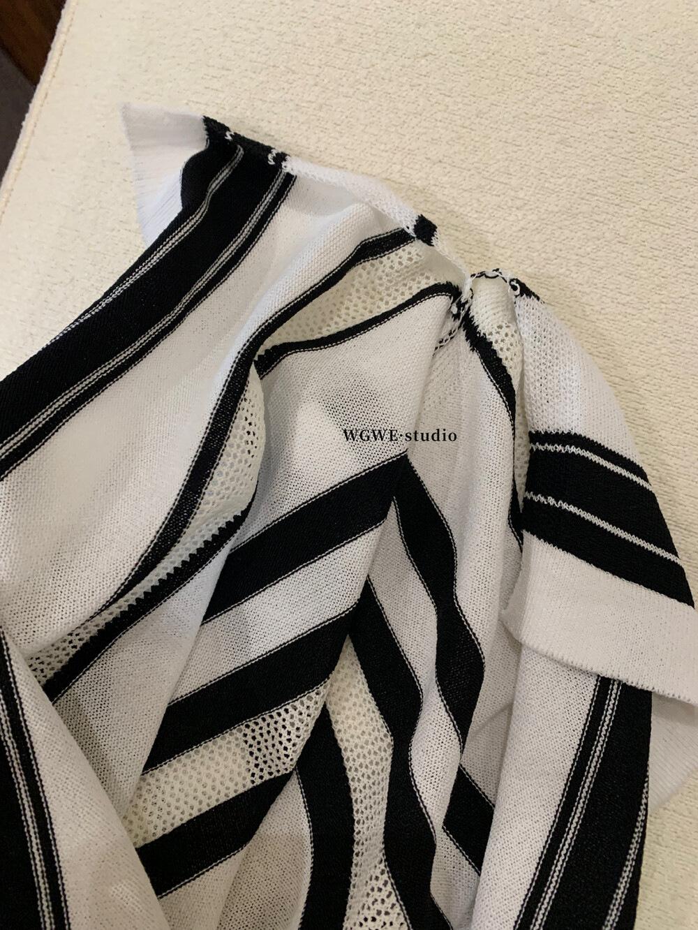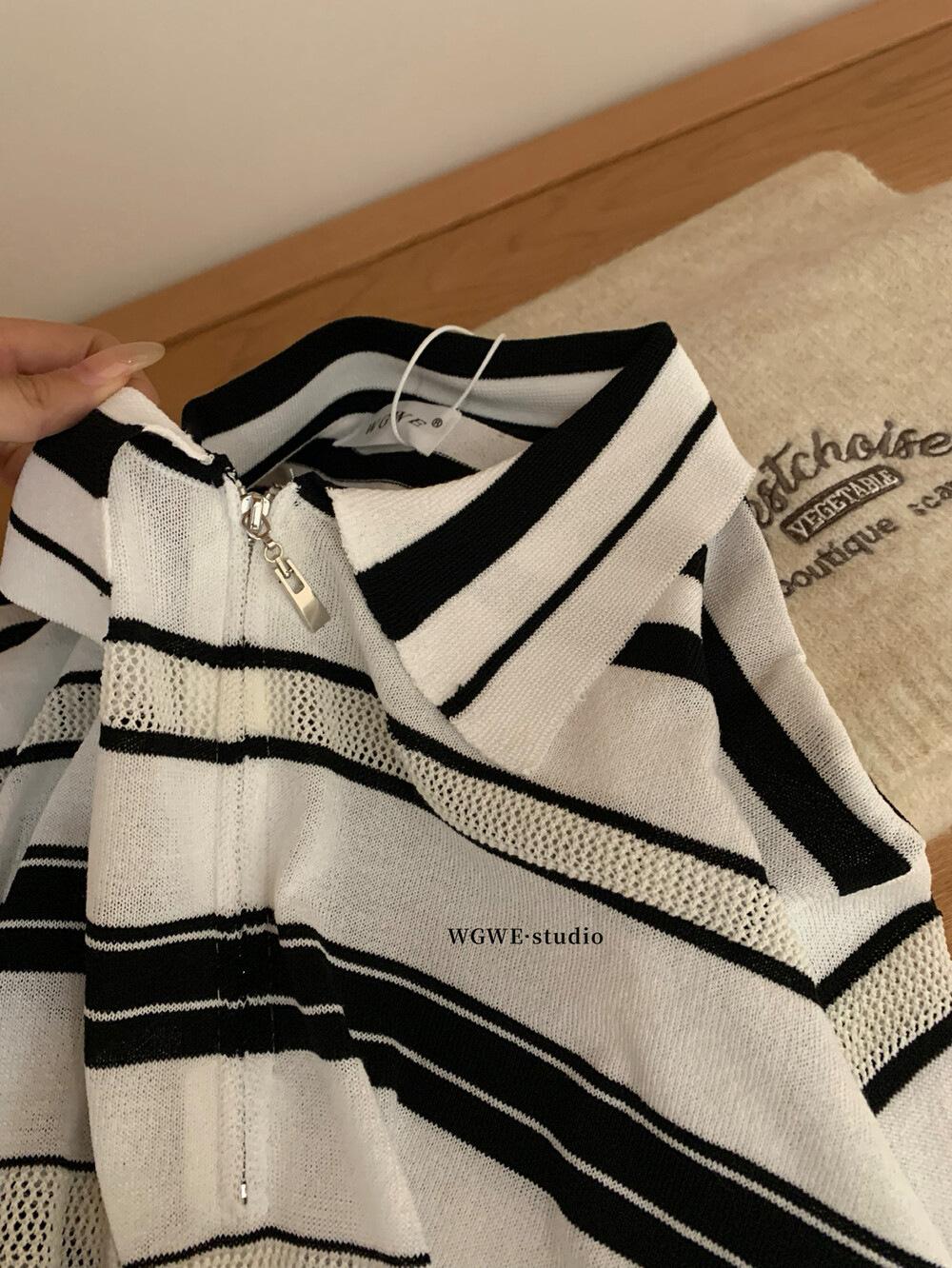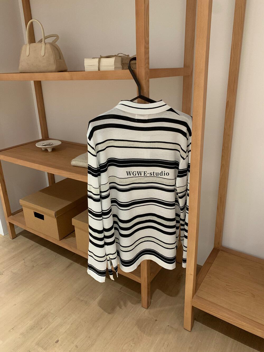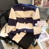 WGWE Otoño Nuevo Cárdigan Fino Versátil con Protección Solar a Rayas Retro Francés Solapa Suéter de Punto Mujer W7013