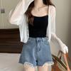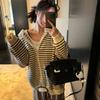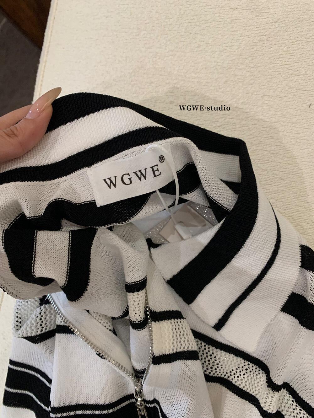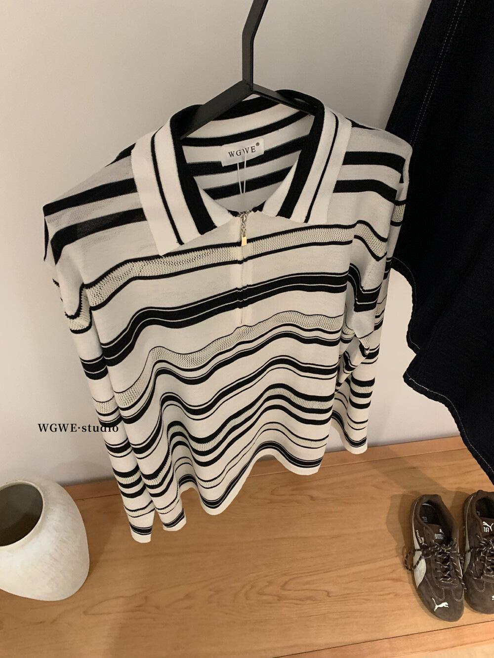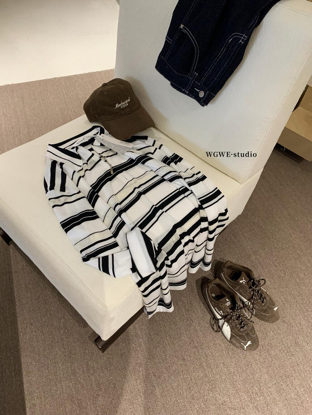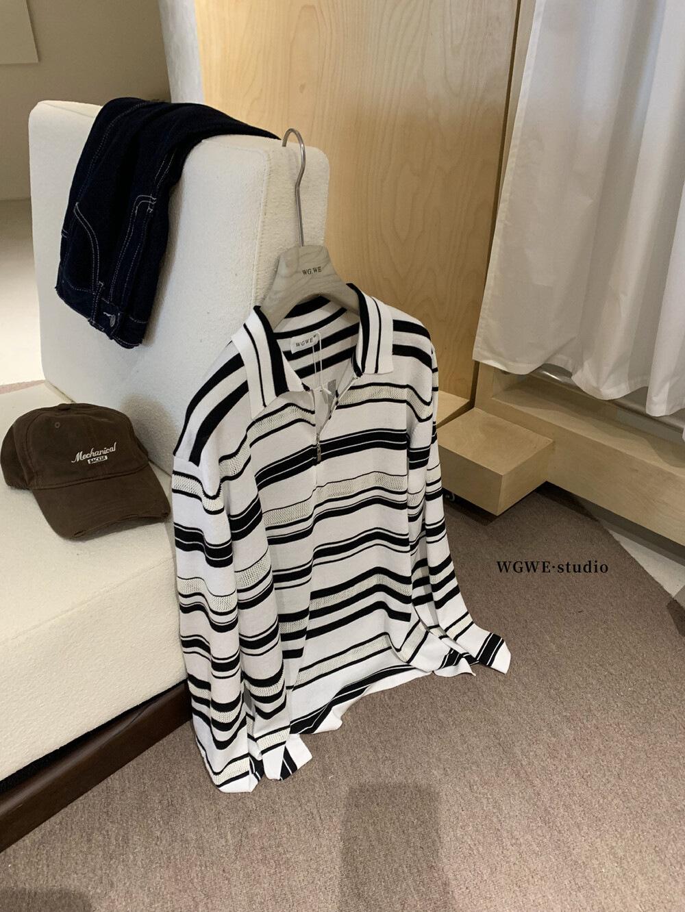 WGWE Otoño Nuevo Cárdigan Fino Versátil con Protección Solar a Rayas Retro Francés Solapa Suéter de Punto Mujer W7013