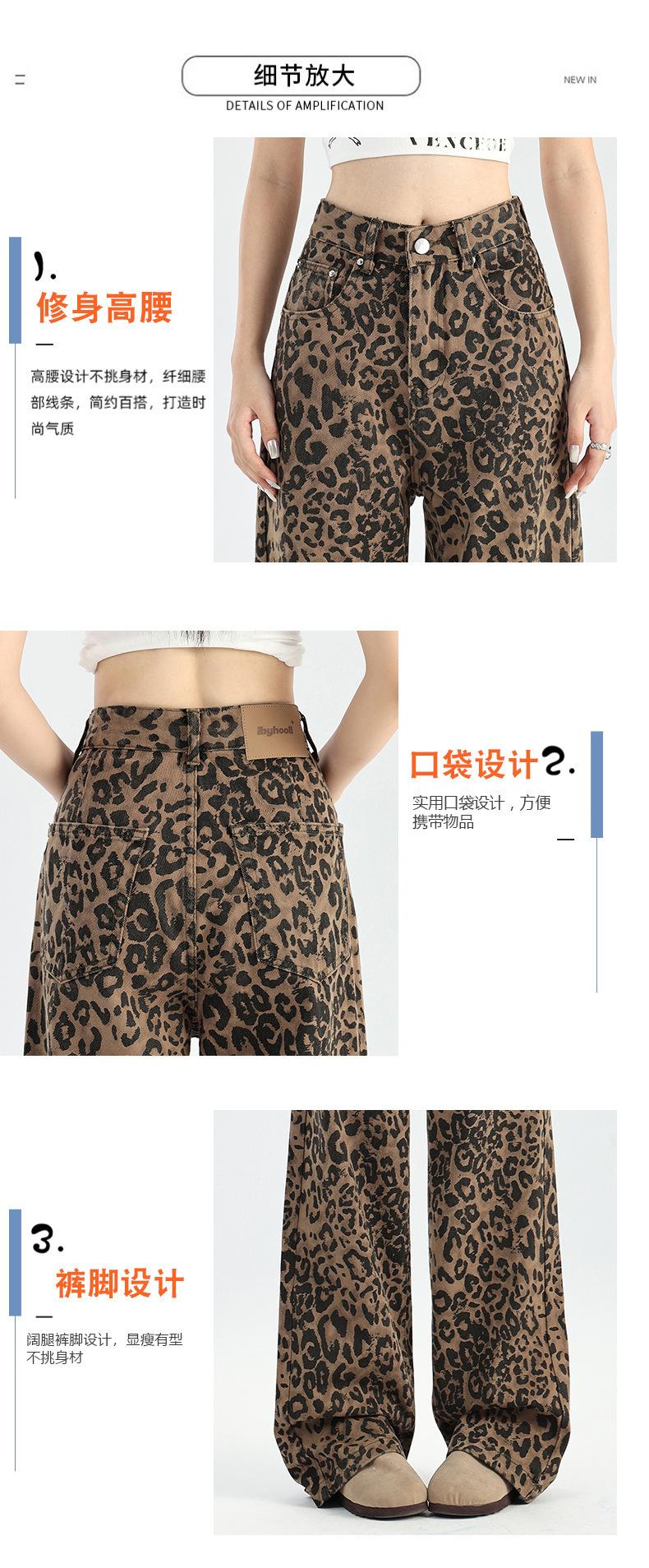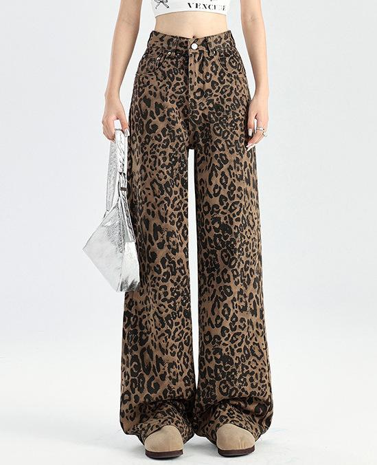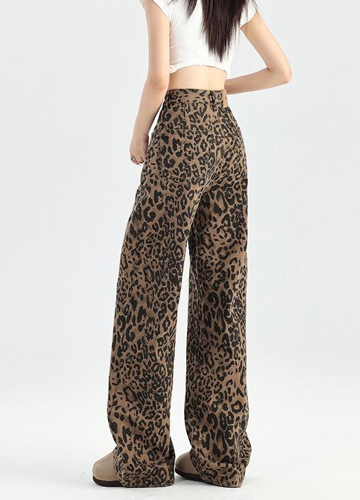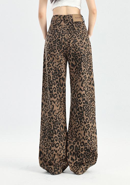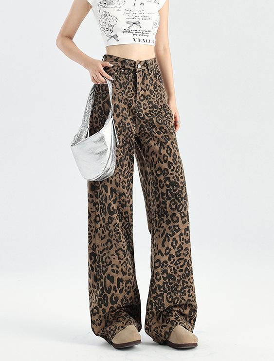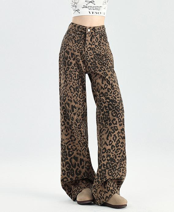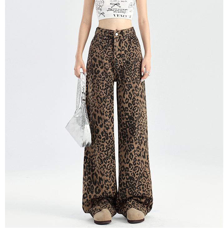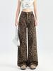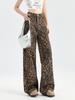 Xintang Jeans de Pierna Ancha con Estampado de Leopardo para Mujer 2025 Nuevo Cintura Alta Americano Holgado Casual Pierna Recta Tendencia Primavera y Otoño