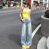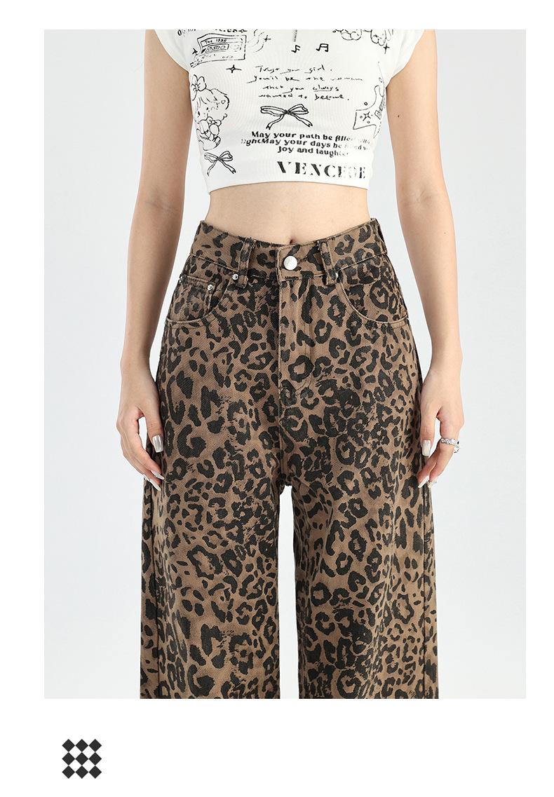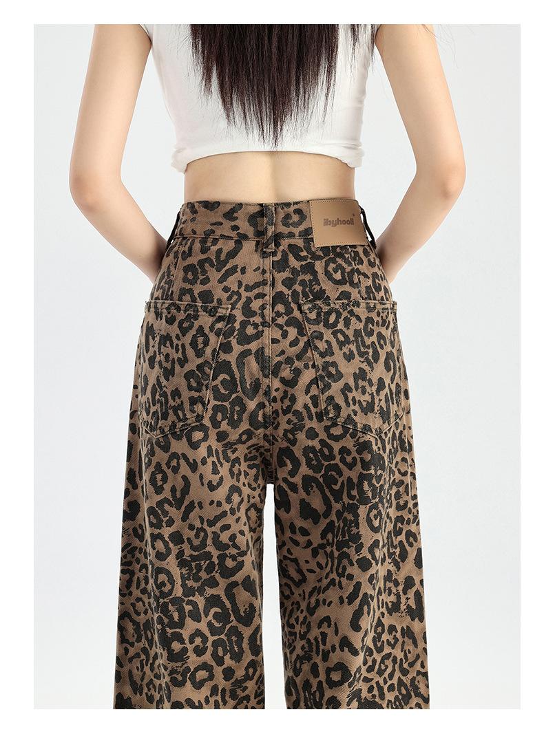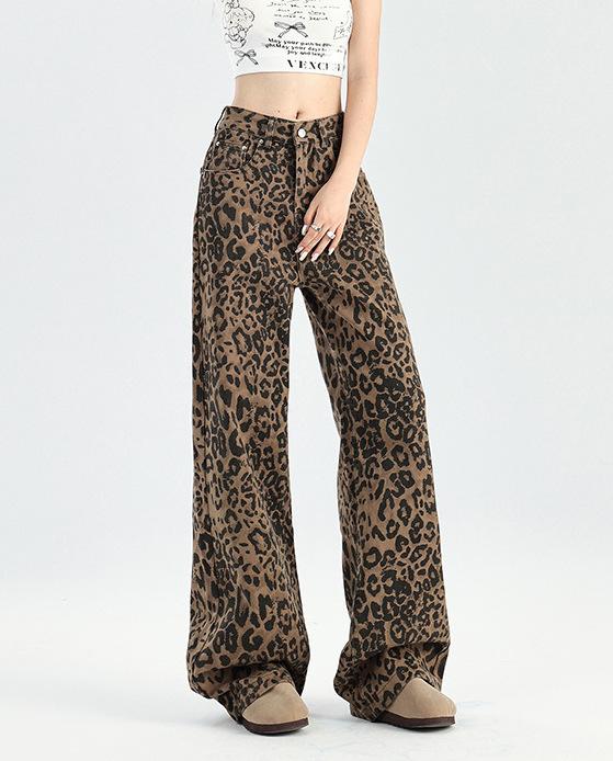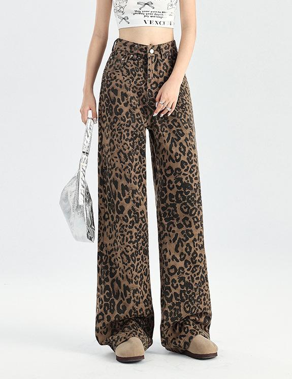Xintang Jeans de Pierna Ancha con Estampado de Leopardo para Mujer 2025 Nuevo Cintura Alta Americano Holgado Casual Pierna Recta Tendencia Primavera y Otoño