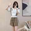 White short sleeves + brown pants, White short sleeves, Brown pants