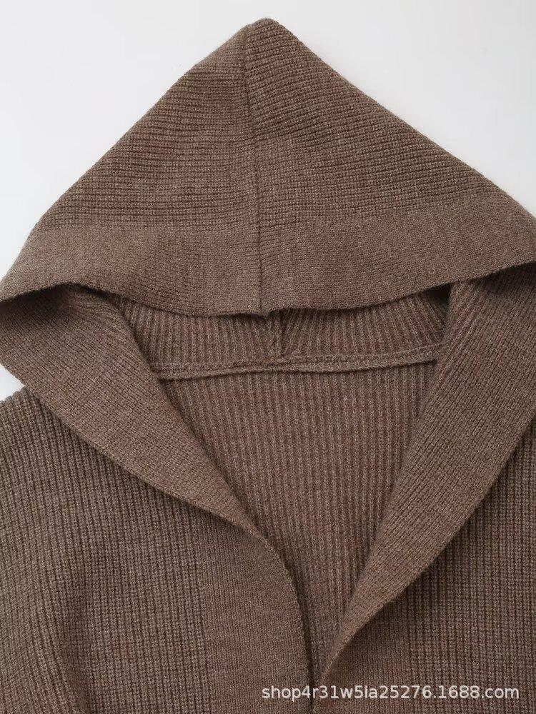 Amazon Transfronterizo Estilo Europeo y Americano 2024 Otoño e Invierno Nuevo Cárdigan Suéter con Capucha de Color Sólido de Moda para Mujer Venta al por Mayor