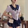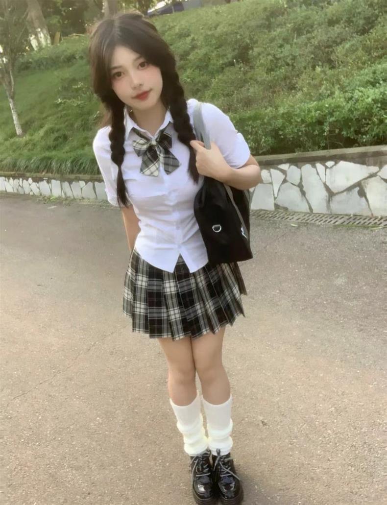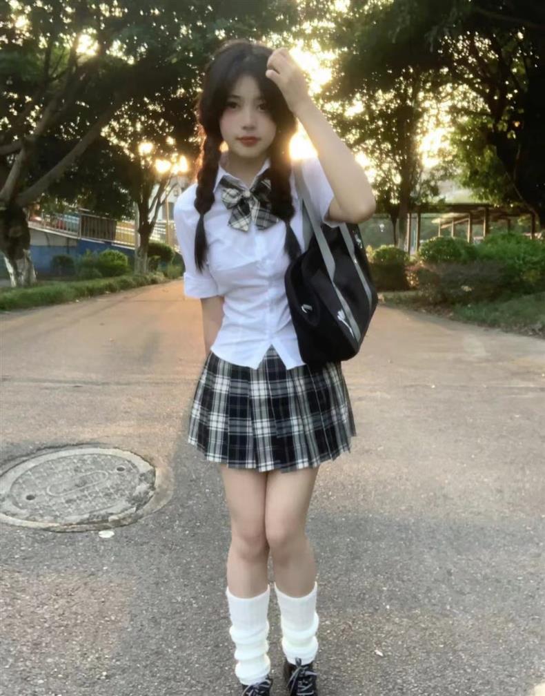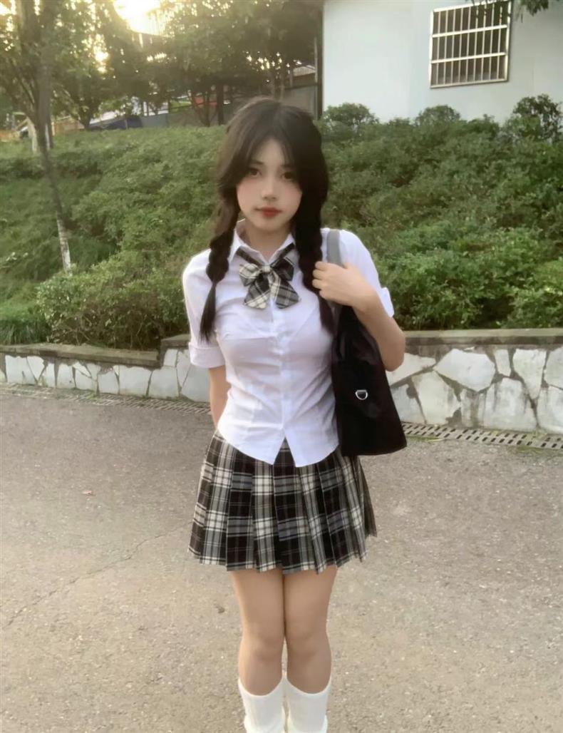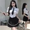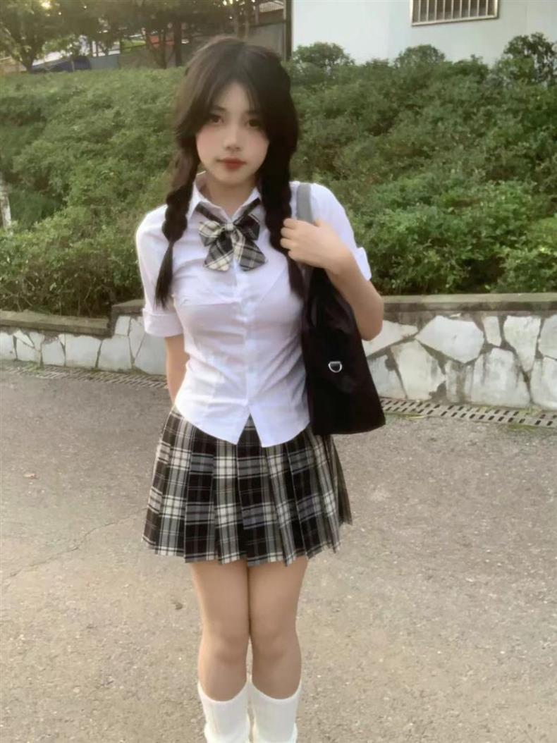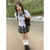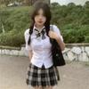 Uniforme JK de Chica Picante Pura Camisa Blanca de Manga Corta Adelgazante de Cintura Ajustada para Mujer Verano Estilo Universitario Set de Vestido Camisero Ajustado