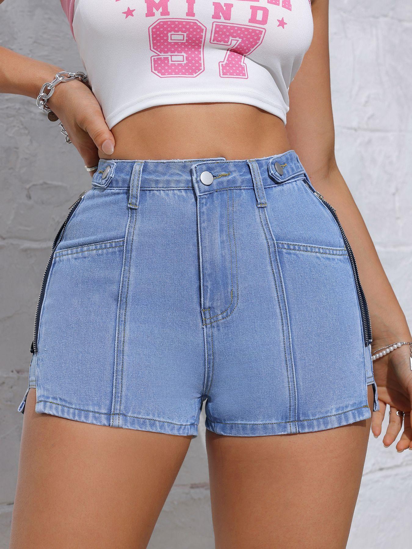 Amazon Cross-Border Shorts de Mezclilla para Mujer Verano 2025 Pantalones de Pierna Ancha Europeos y Americanos Rectos de Cintura Alta Adelgazantes Hot Pants Estilo Retro