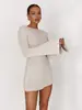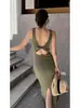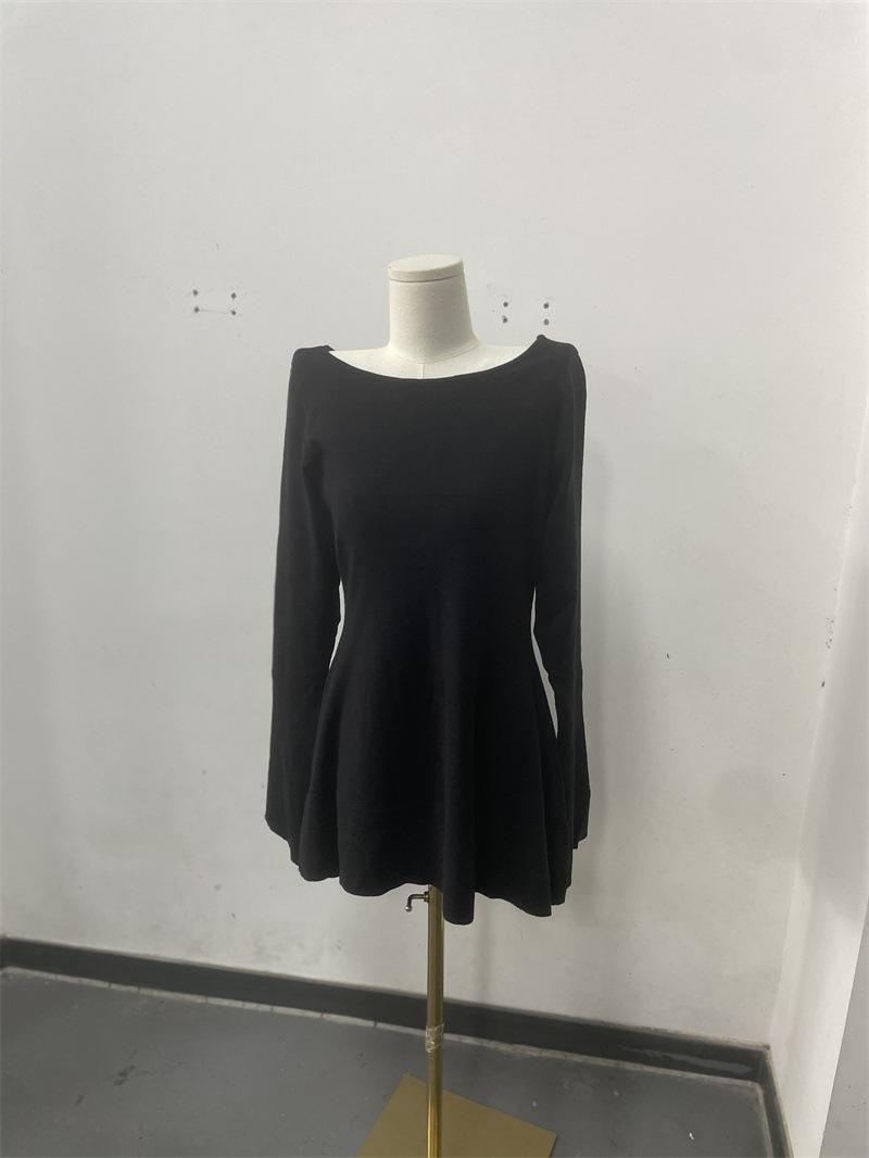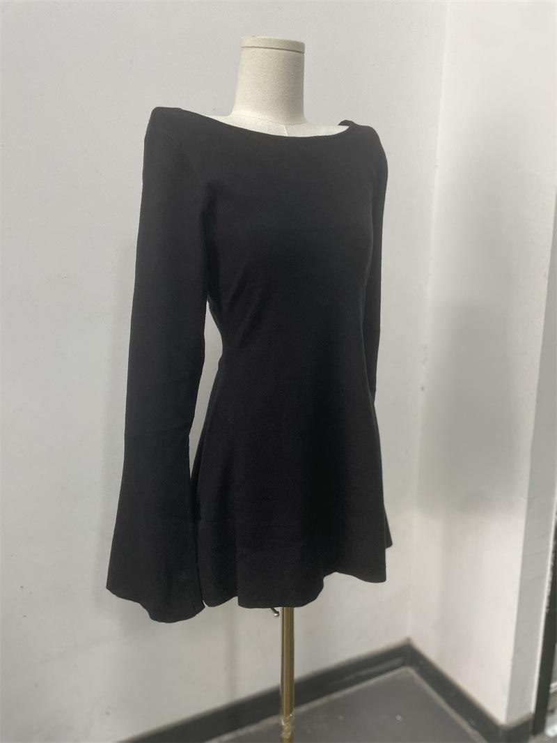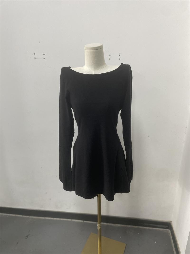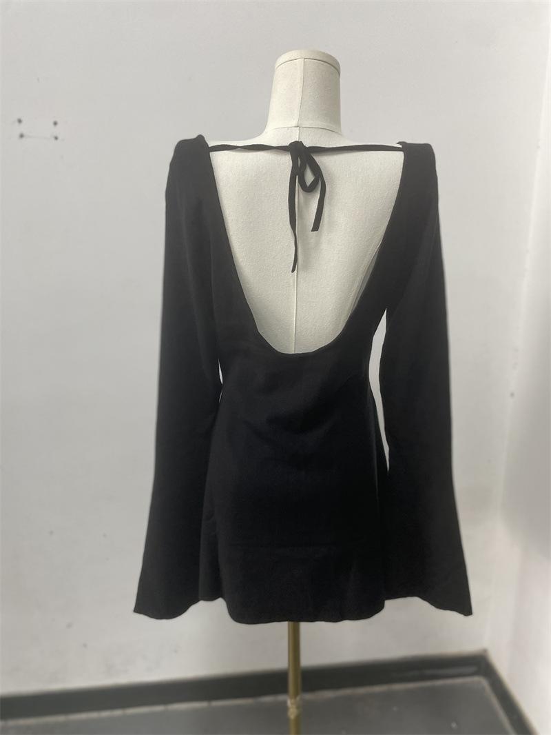 Moda Europea y Americana Transfronteriza para Mujer Vestido Elegante de Punto con Cuello Redondo Negro Sexy sin Espalda Ajustado Corto Color Sólido