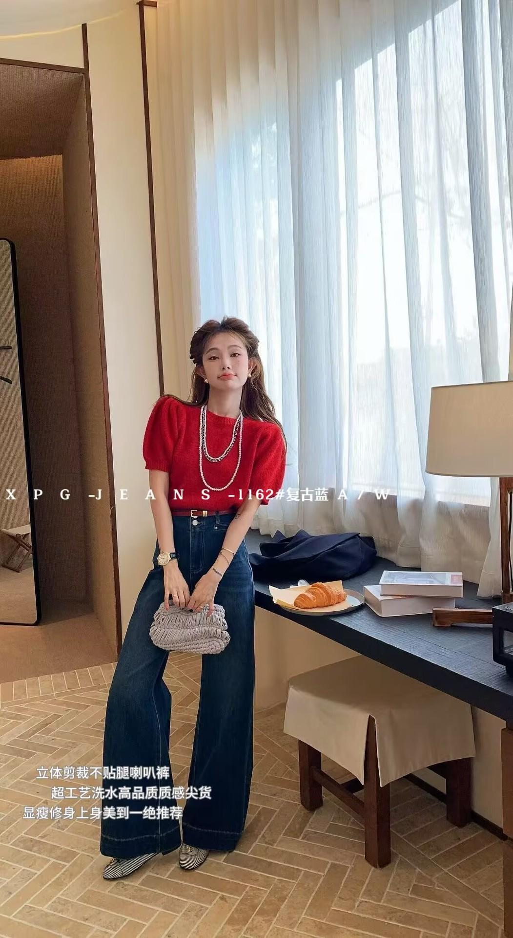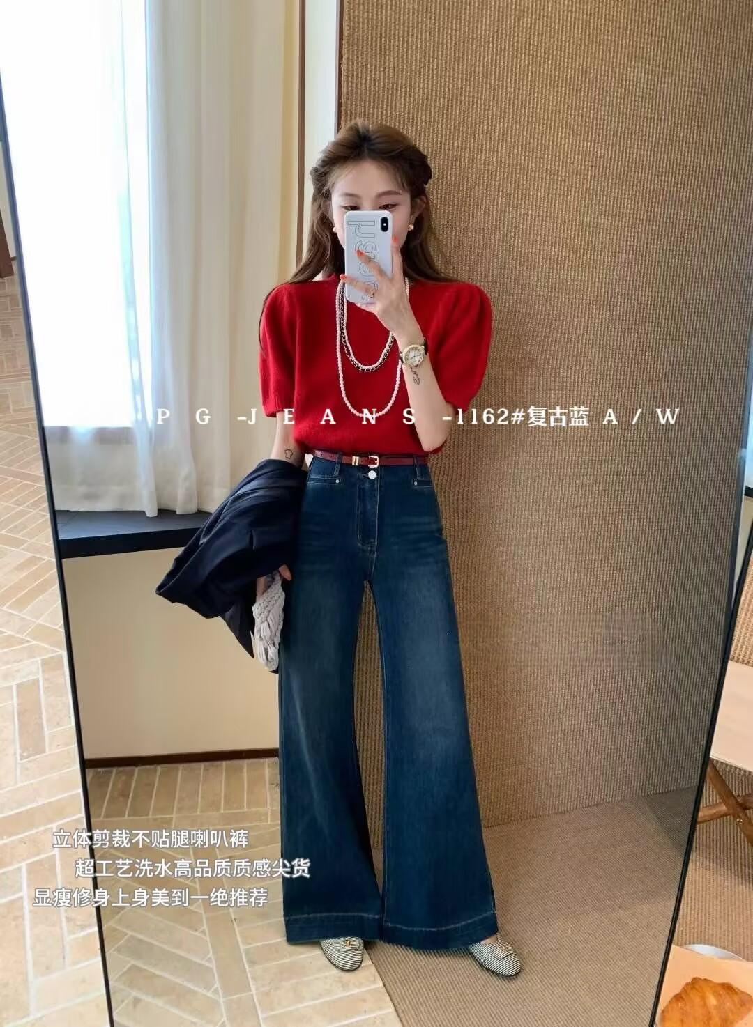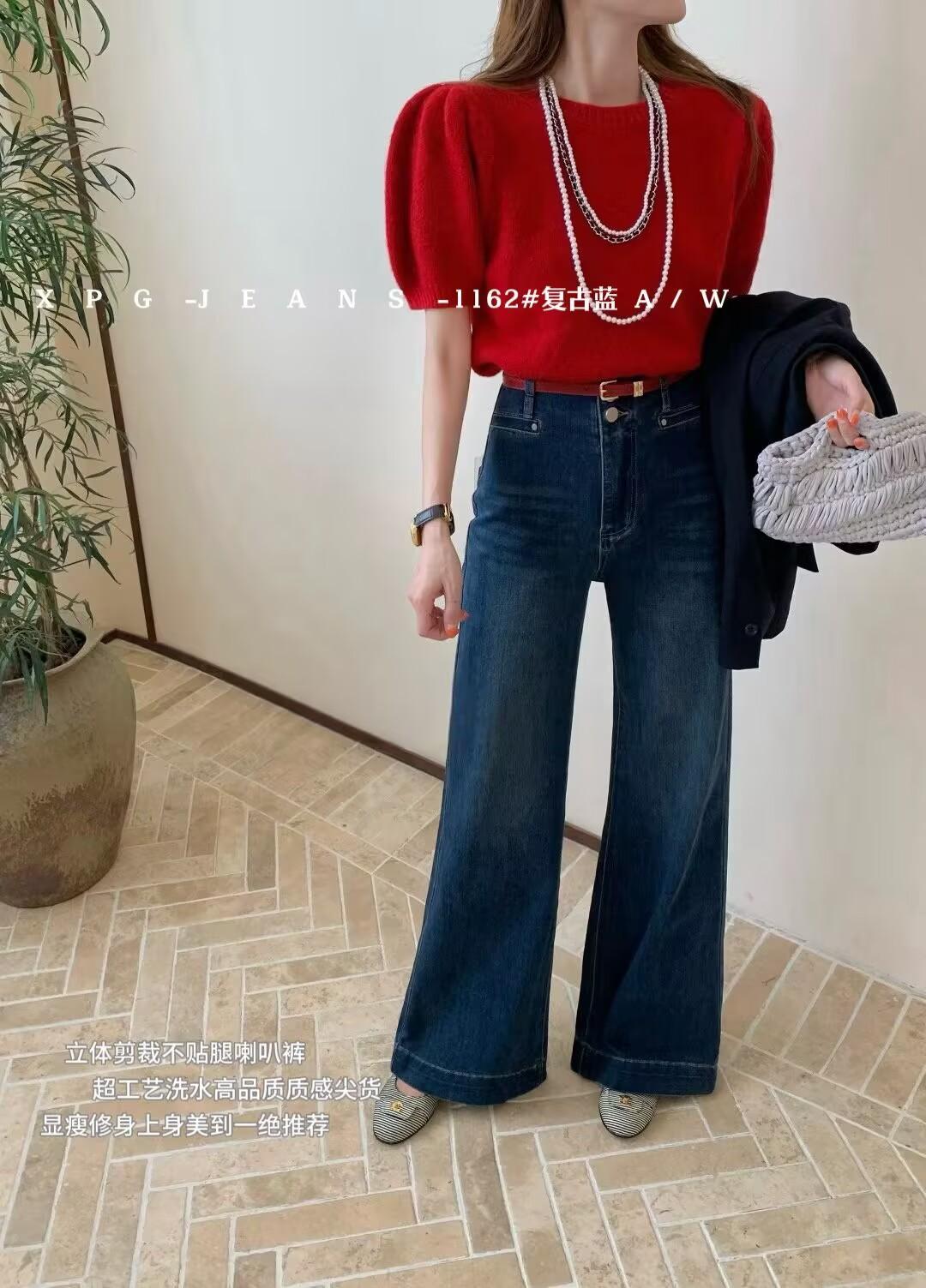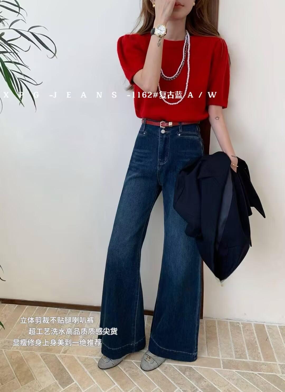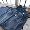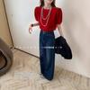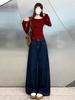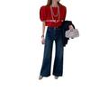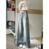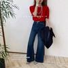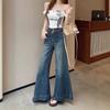 Jeans acampanados retro azul oscuro estilo Hong Kong para mujer otoño 2025 petite cintura alta pierna ancha pantalones largos que no se pegan