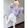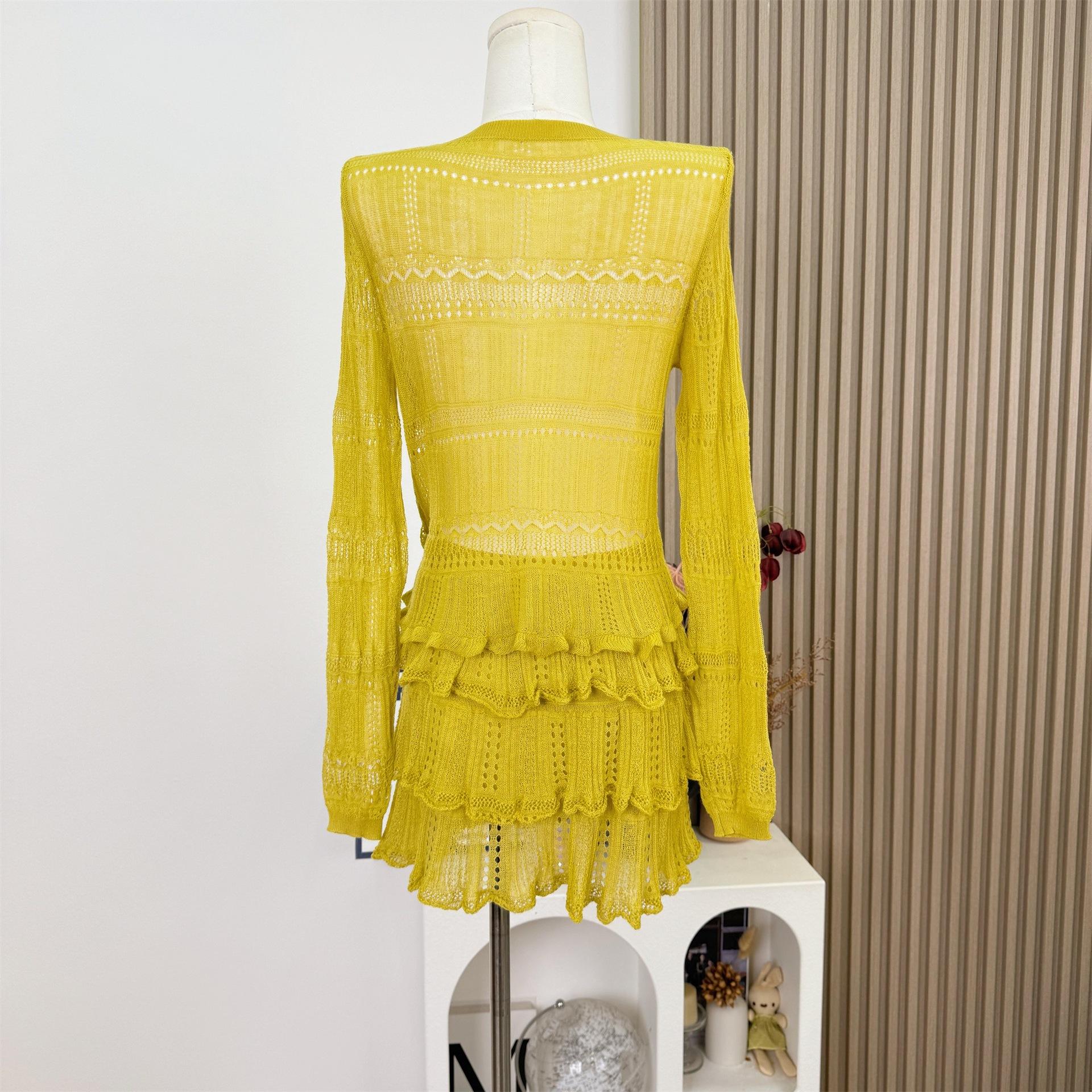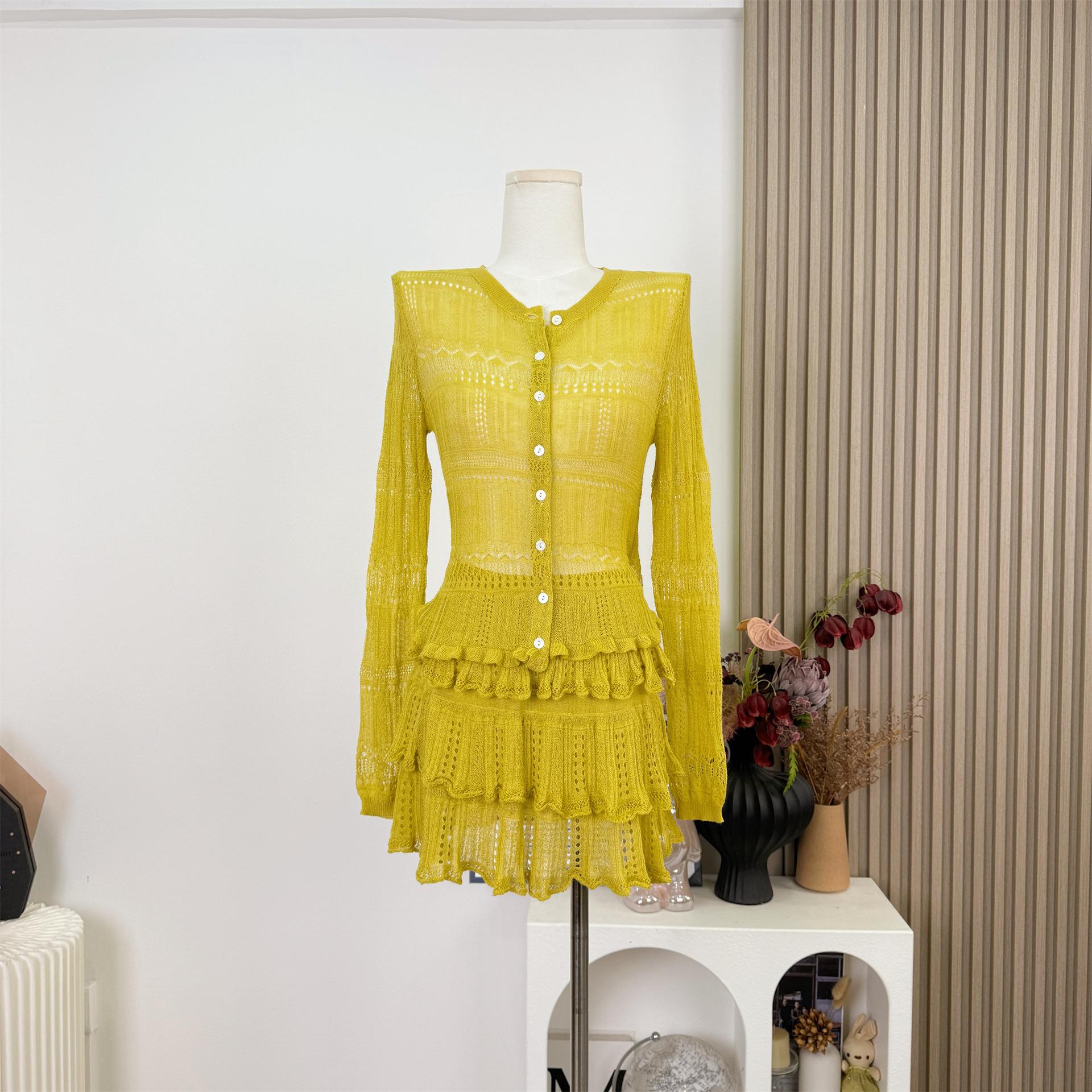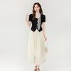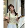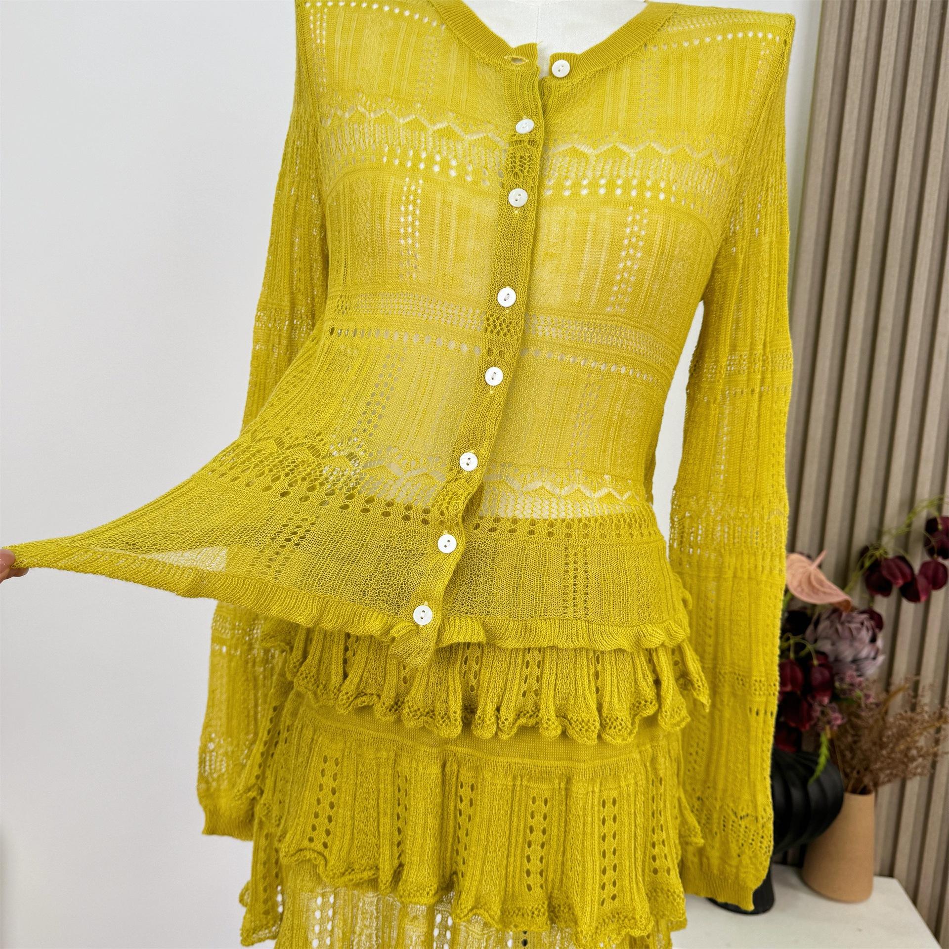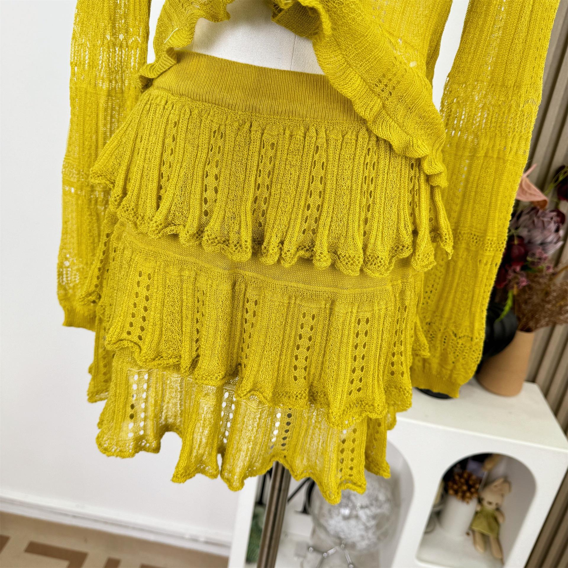 Diseño Suave Ajuste Slim Set de Top de Punto para Mujer Otoño Nuevo Temperamento Top Falda Corta de Encaje