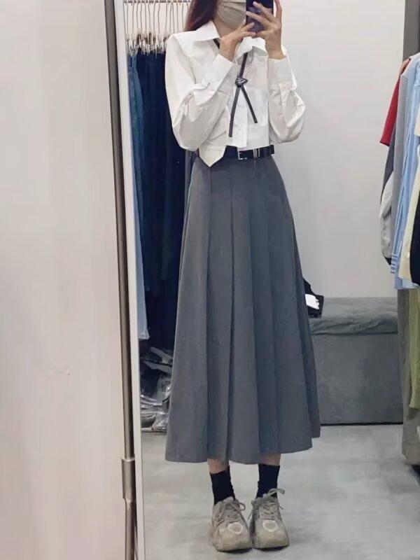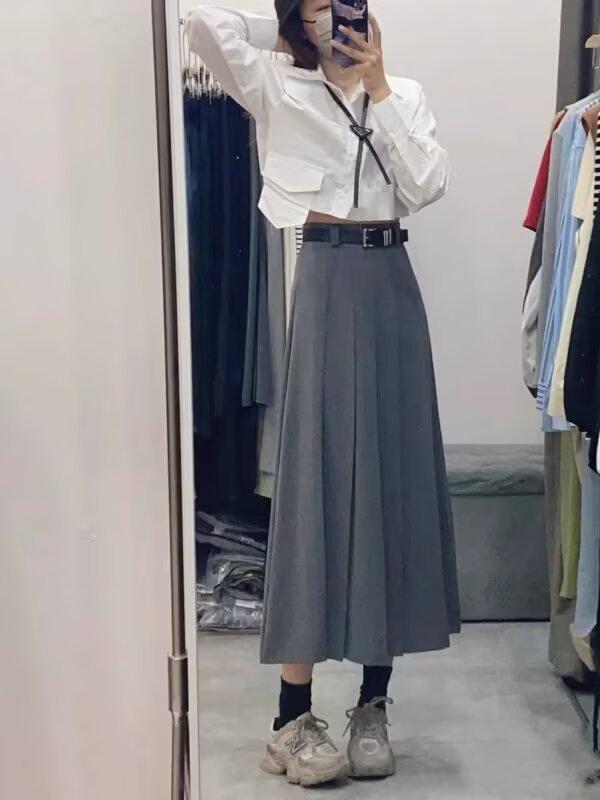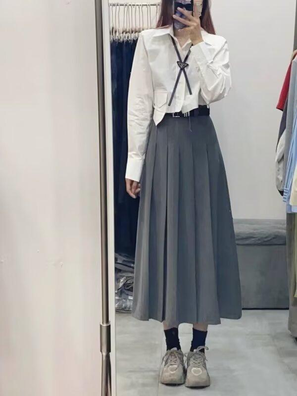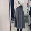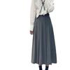 Traje Gris Falda Midi Plisada para Mujer Nuevo Otoño Temprano Drapeado Adelgazante Línea A Falda Paraguas Versátil Gran Vuelo Falda Larga