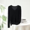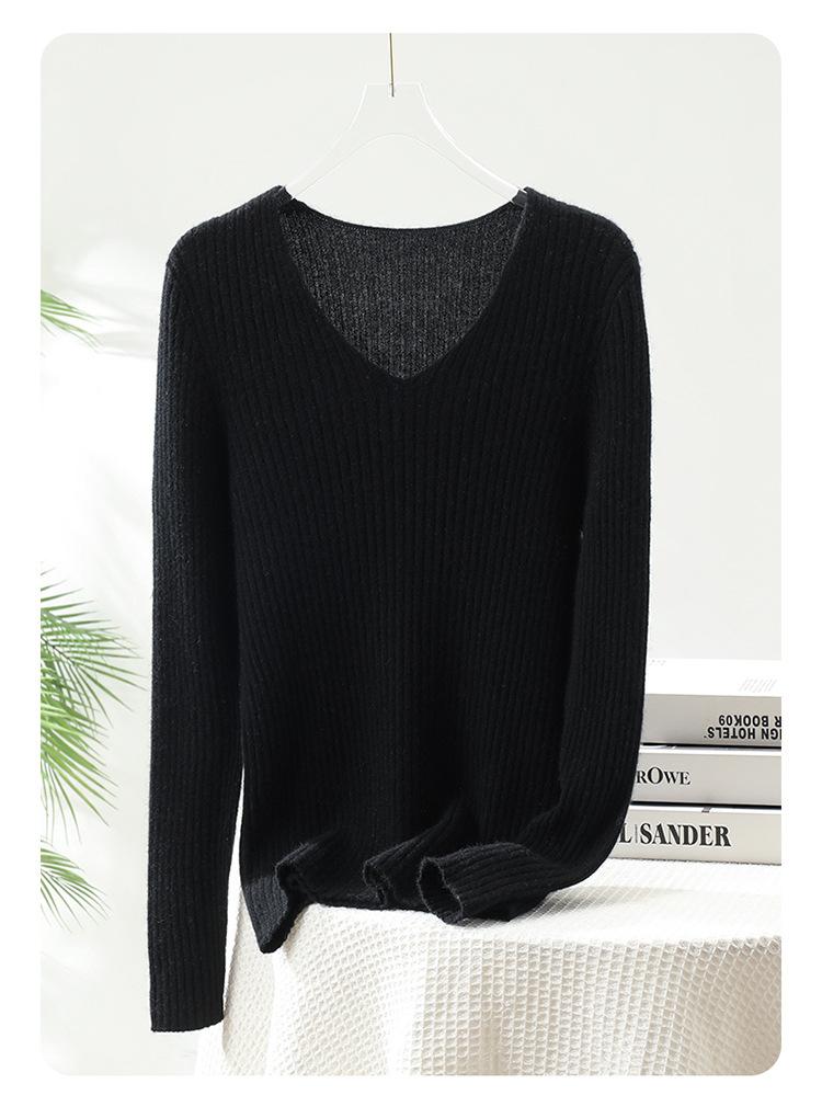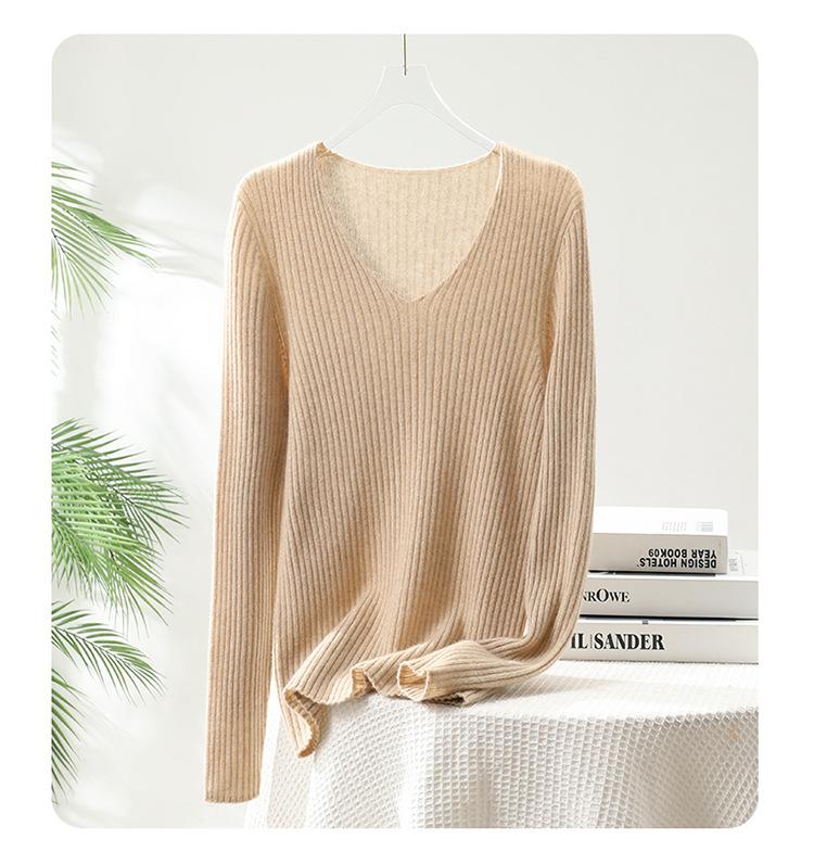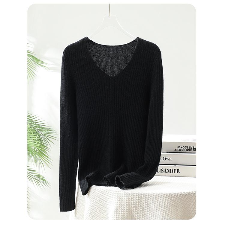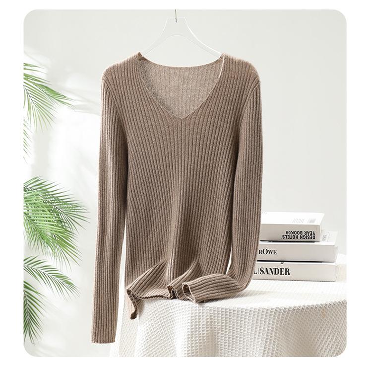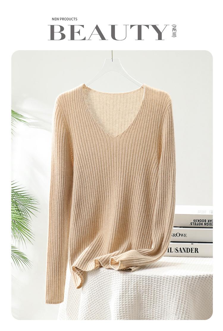 Suéter de cuello en V 100% cachemira pura para mujer, otoño e invierno, nuevo, color sólido versátil, manga larga, tejido de cachemira