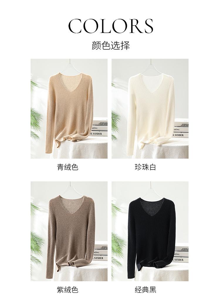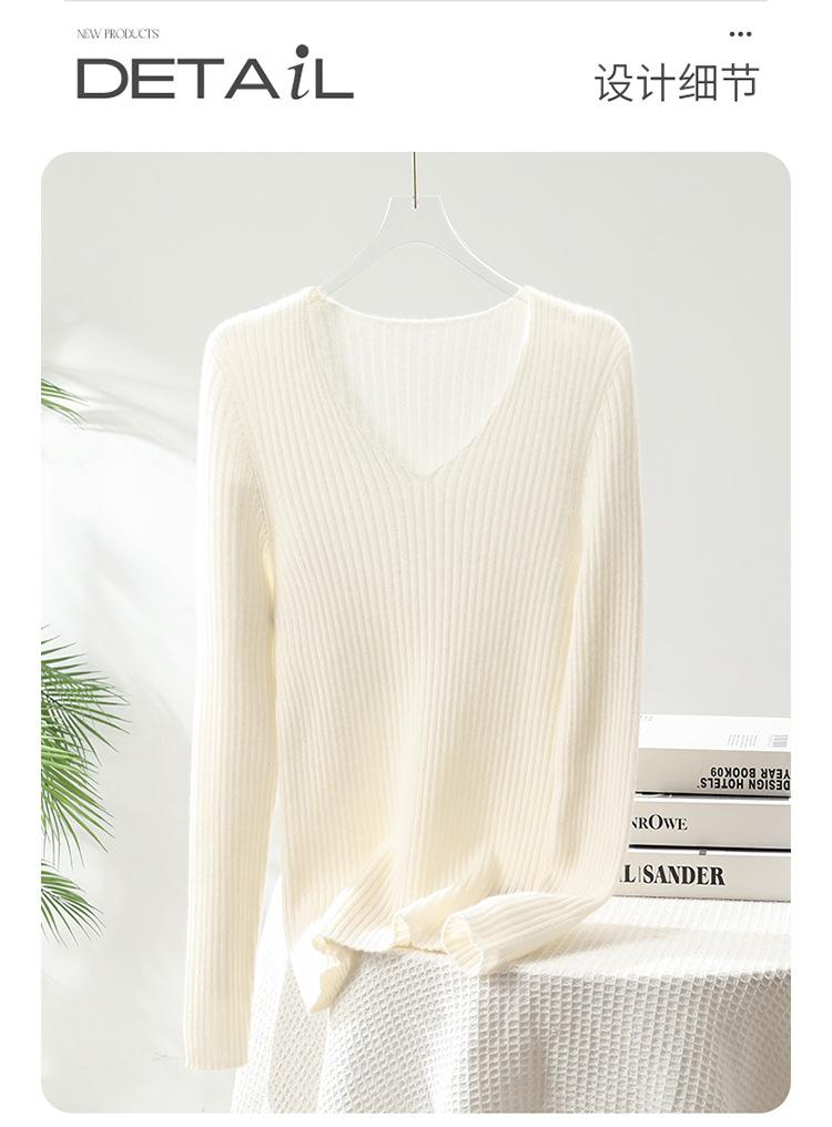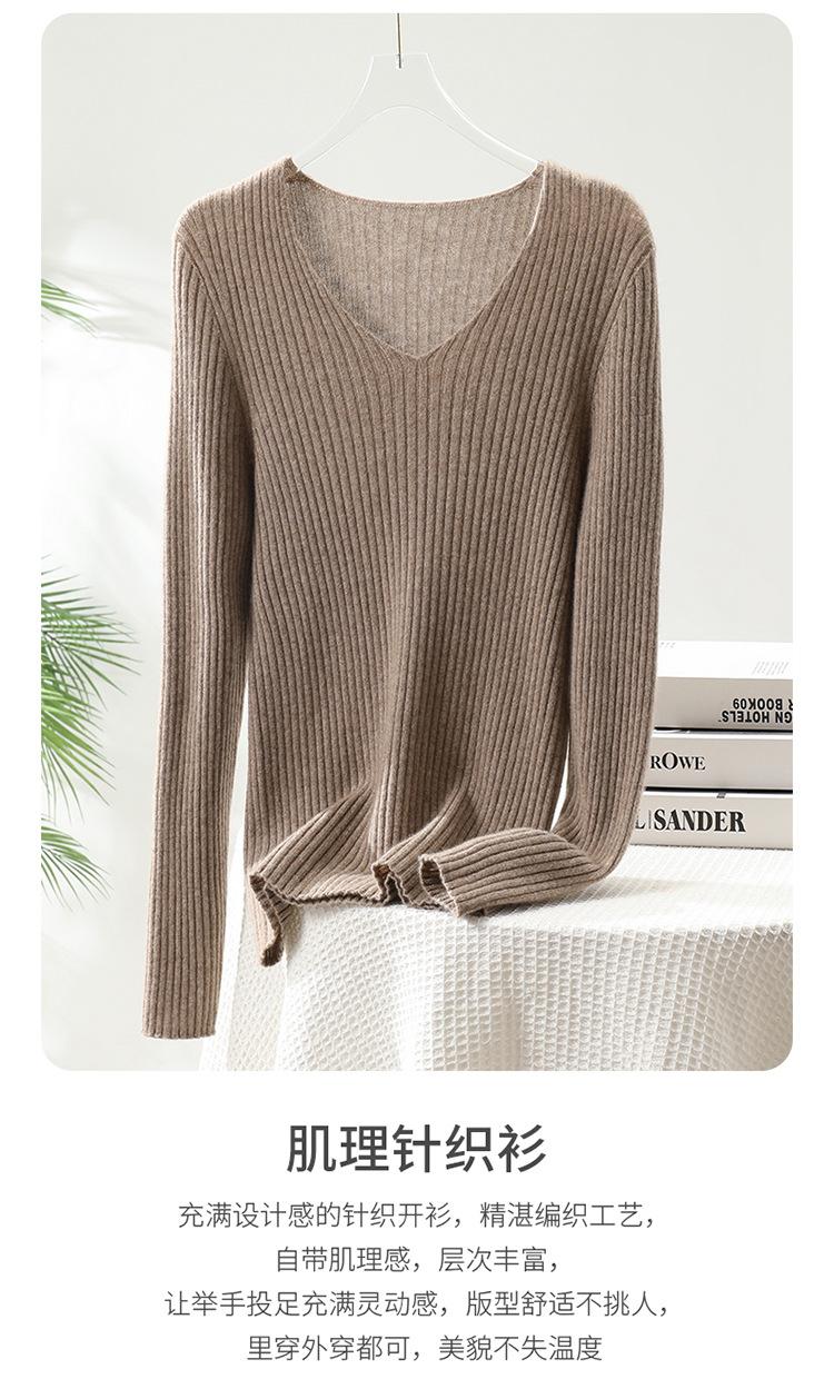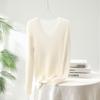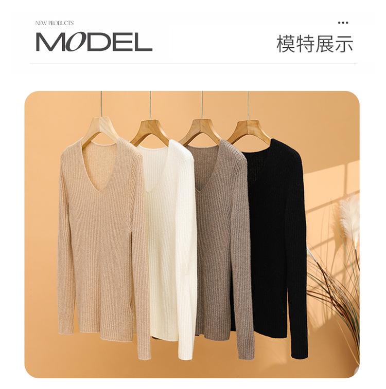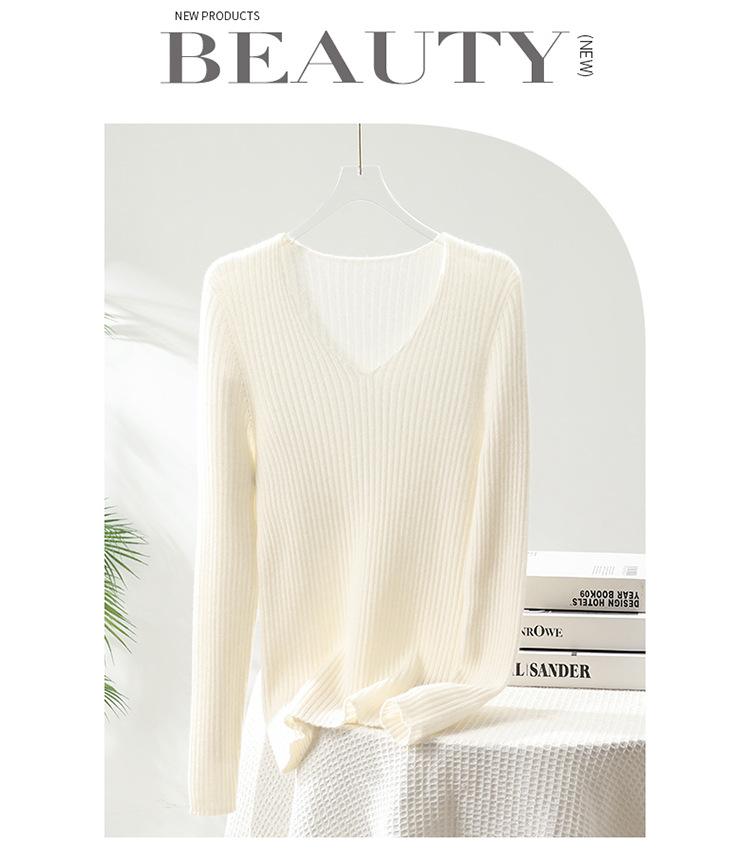 Suéter de cuello en V 100% cachemira pura para mujer, otoño e invierno, nuevo, color sólido versátil, manga larga, tejido de cachemira