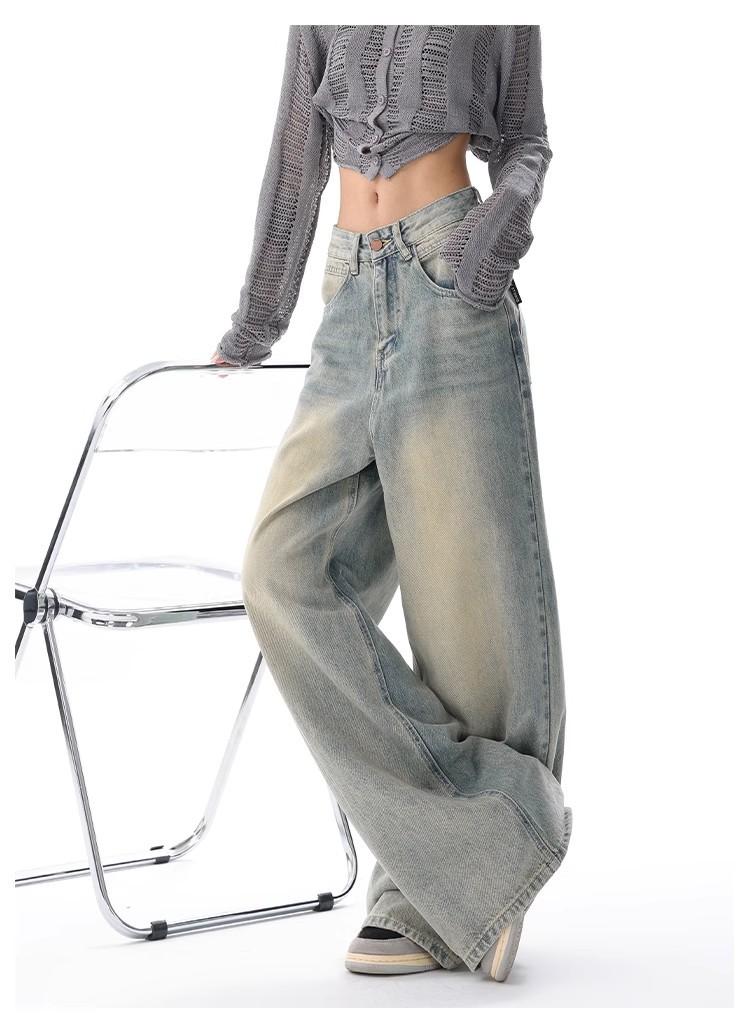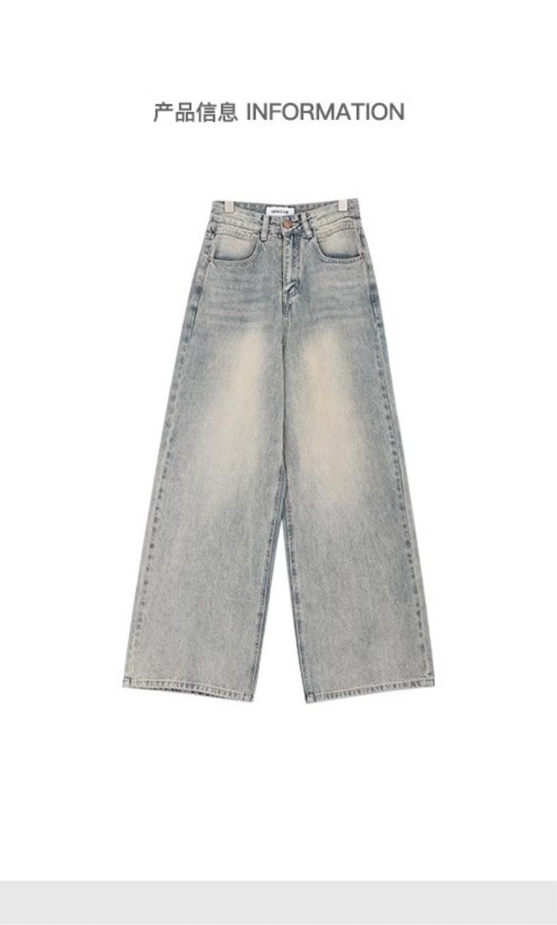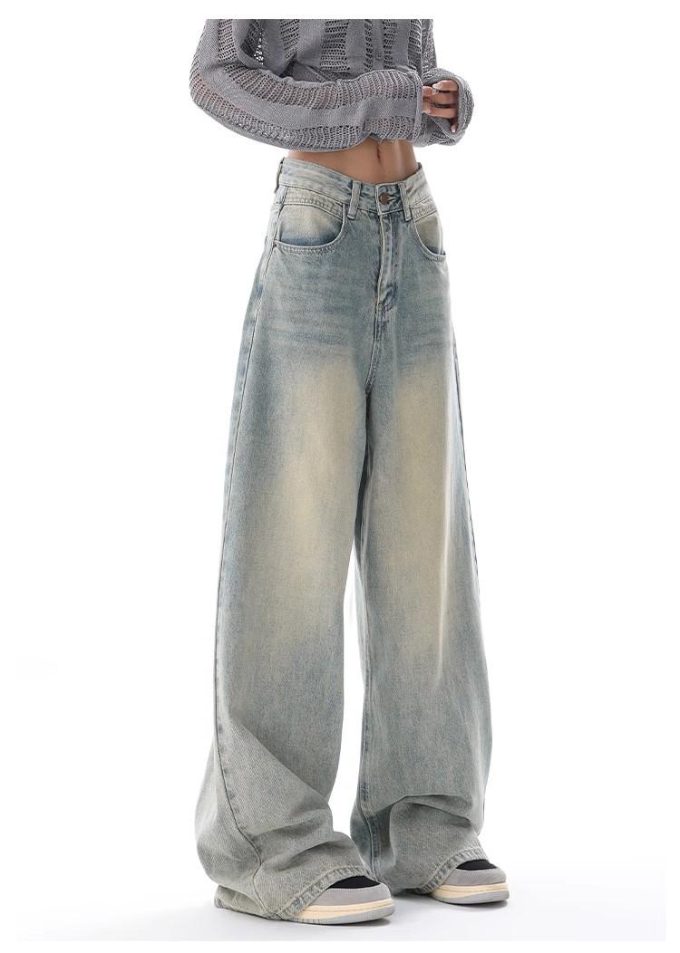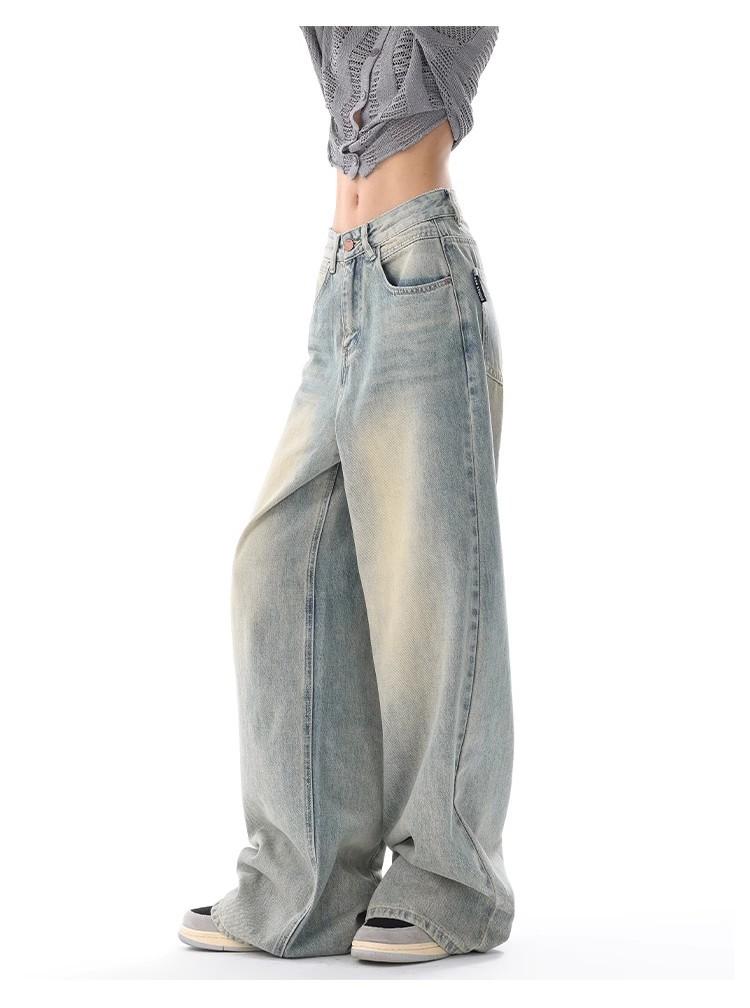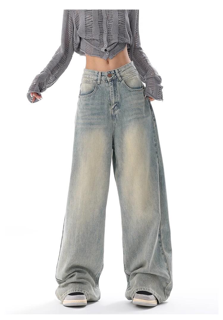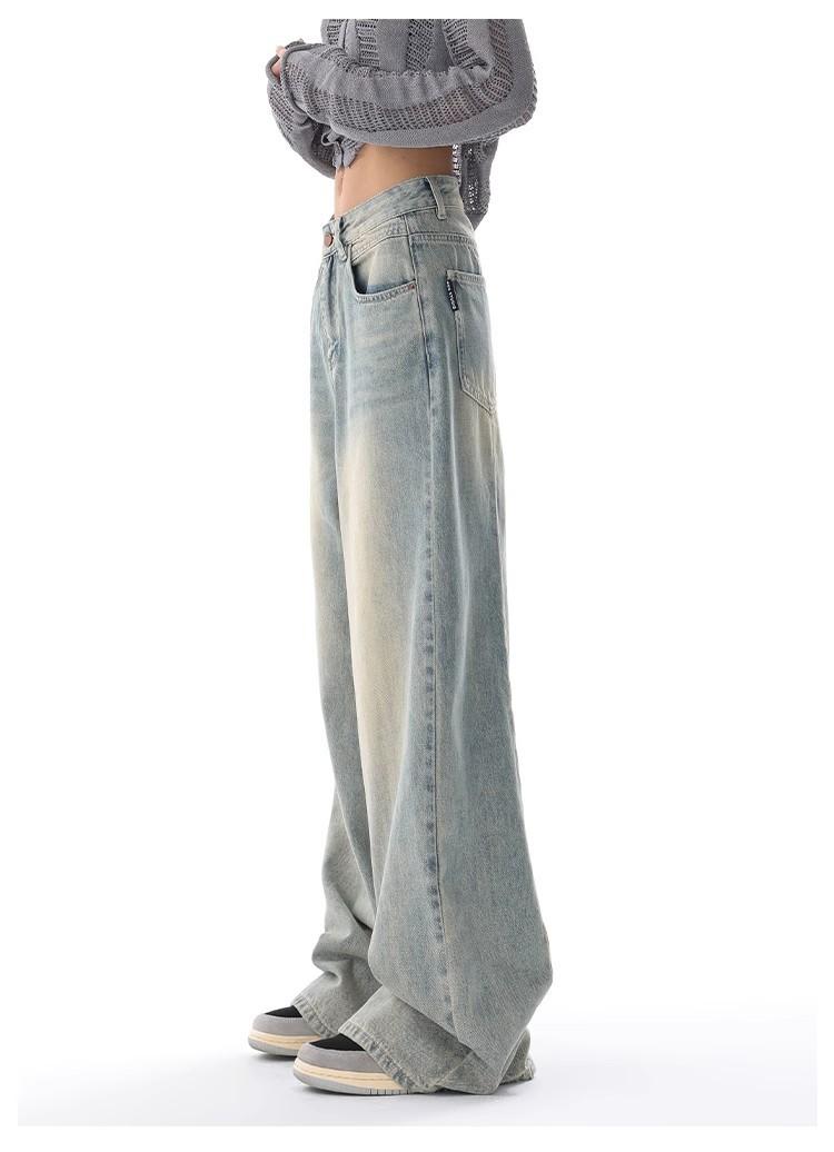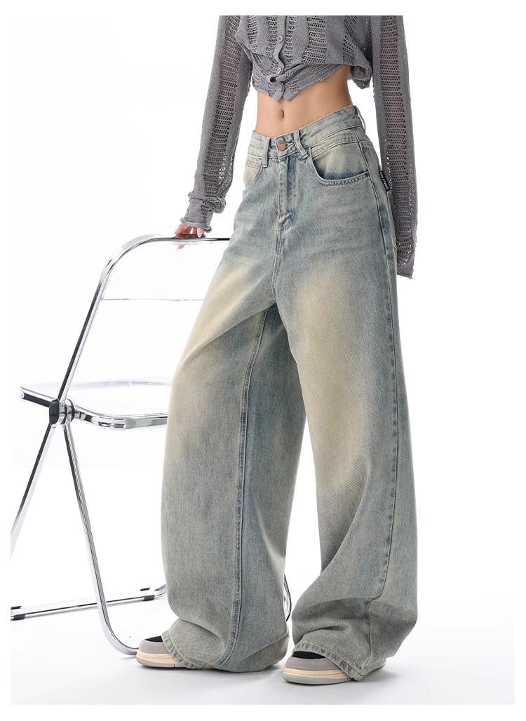Primavera Verano 2025 Nuevos Jeans Rectos Retro para Mujer Americanos de Cintura Alta Diseño Holgado Pantalones de Pierna Ancha hasta el Suelo