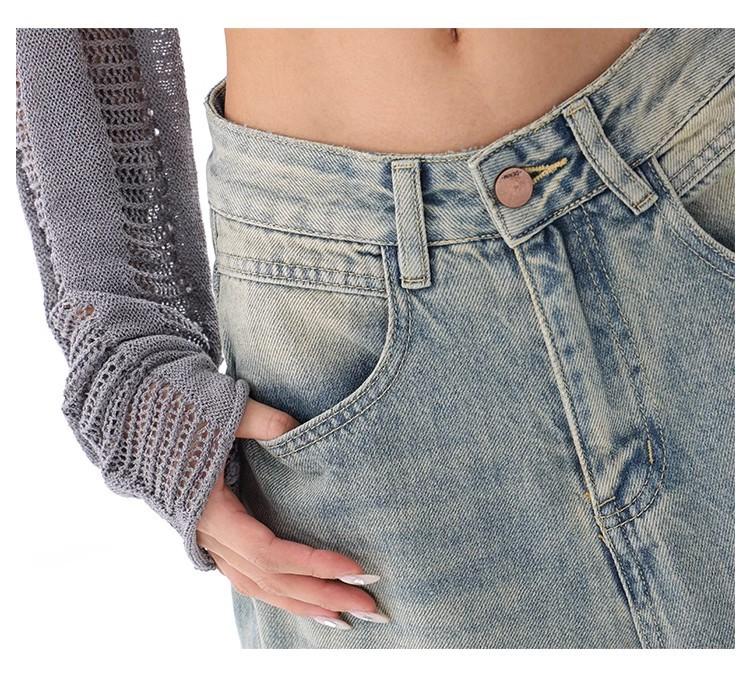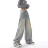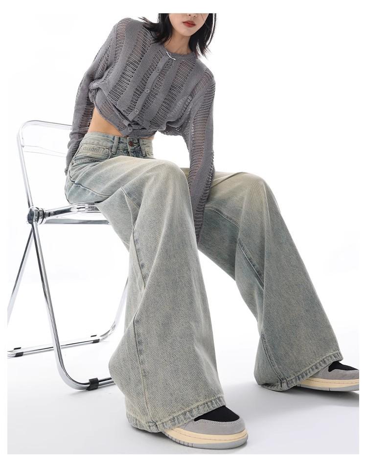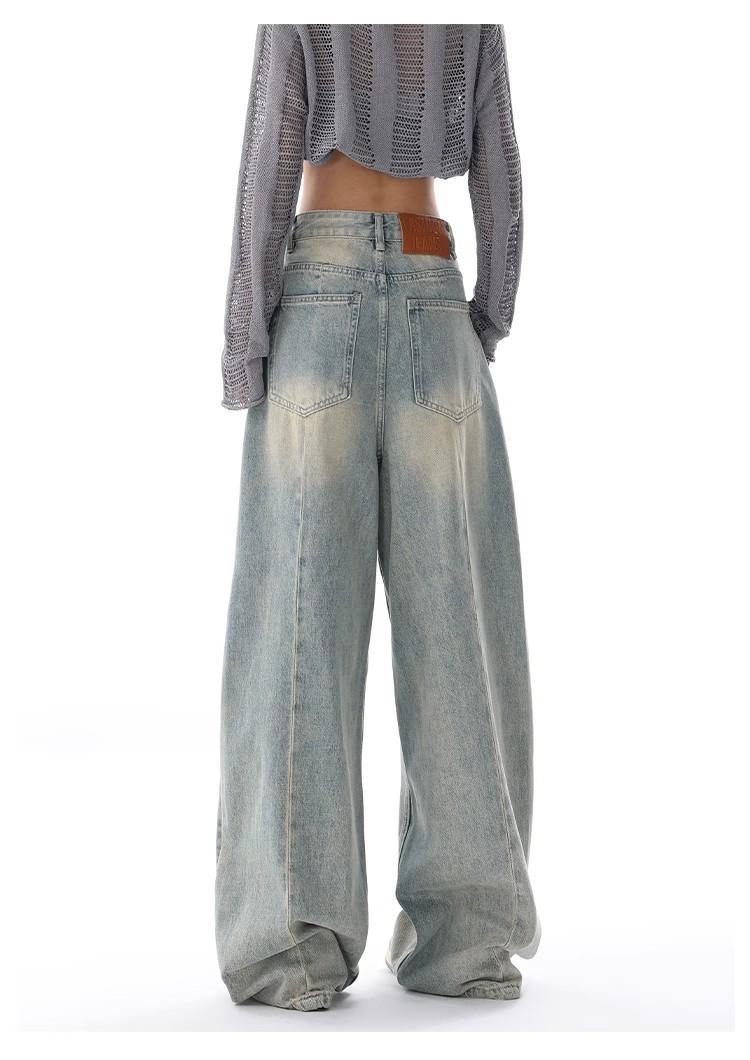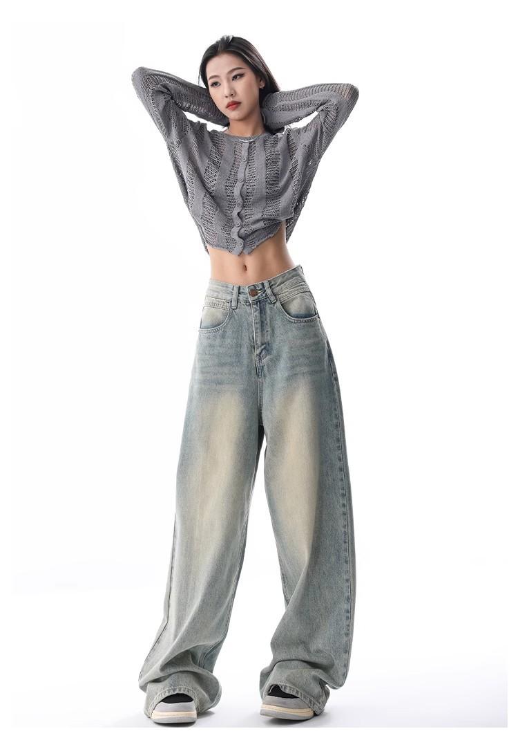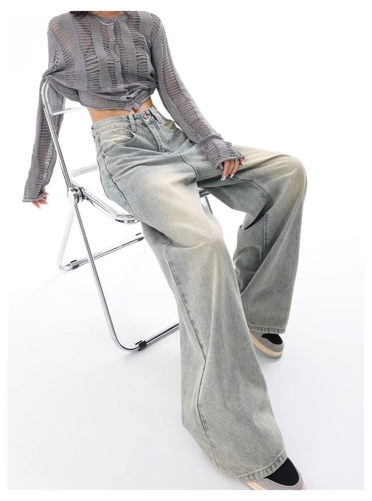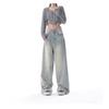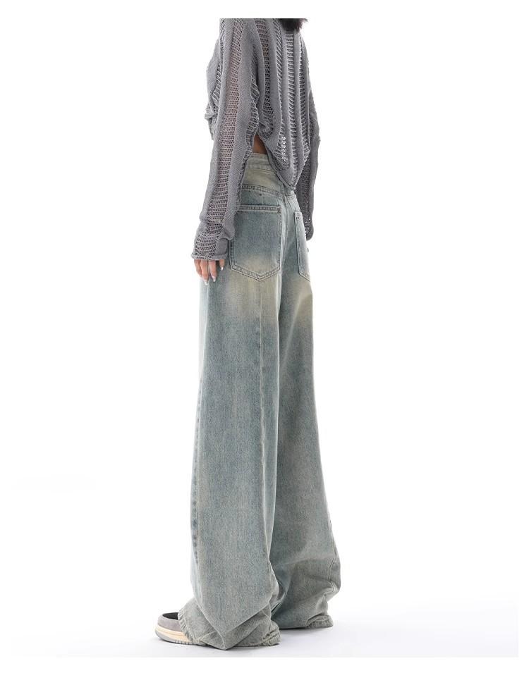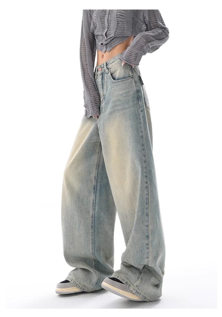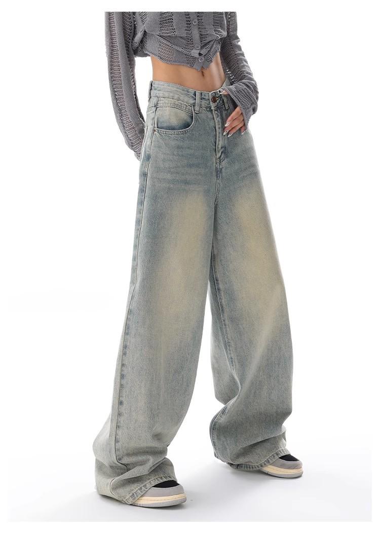 Primavera Verano 2025 Nuevos Jeans Rectos Retro para Mujer Americanos de Cintura Alta Diseño Holgado Pantalones de Pierna Ancha hasta el Suelo