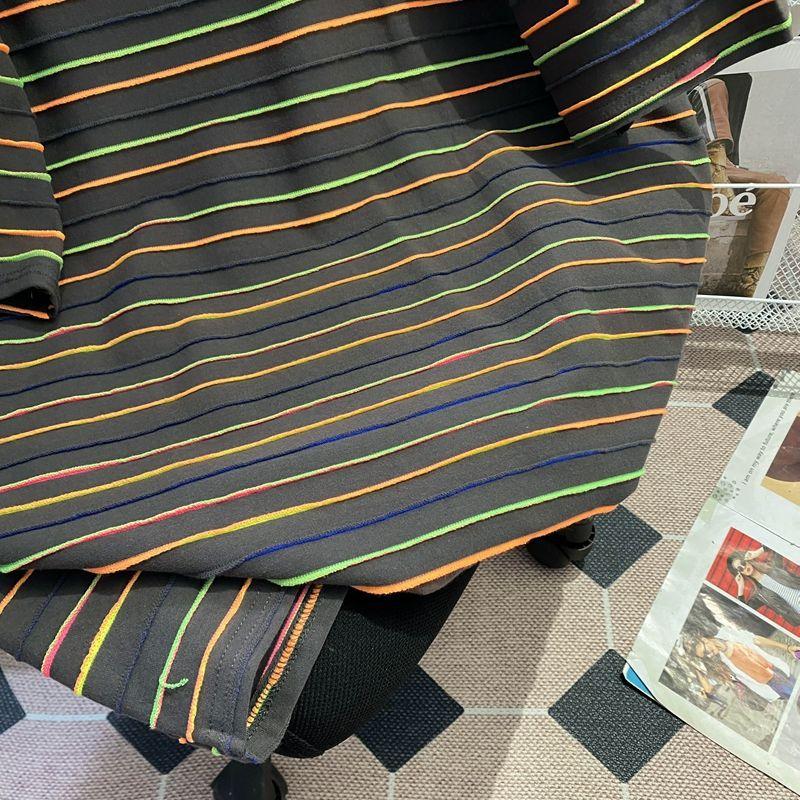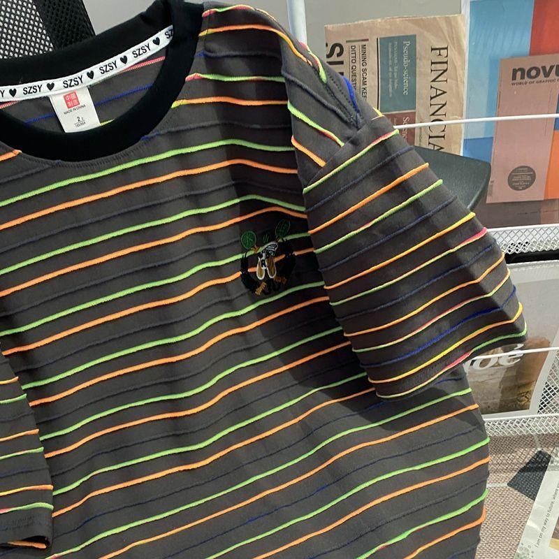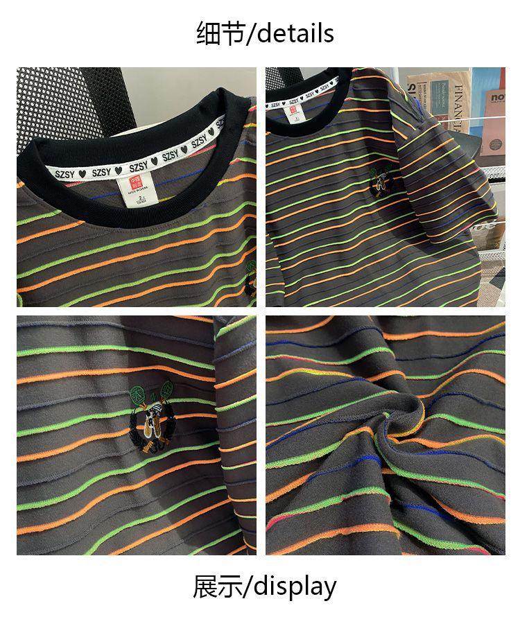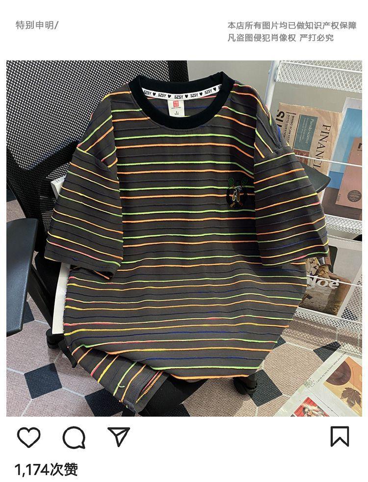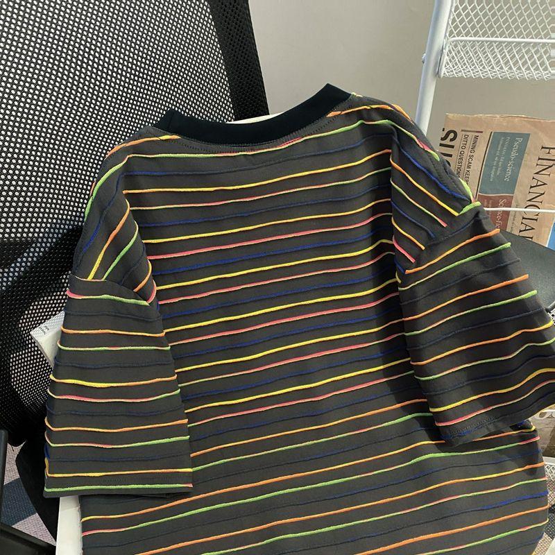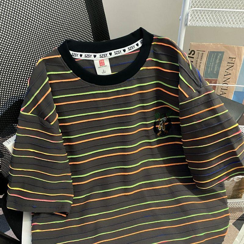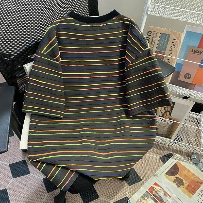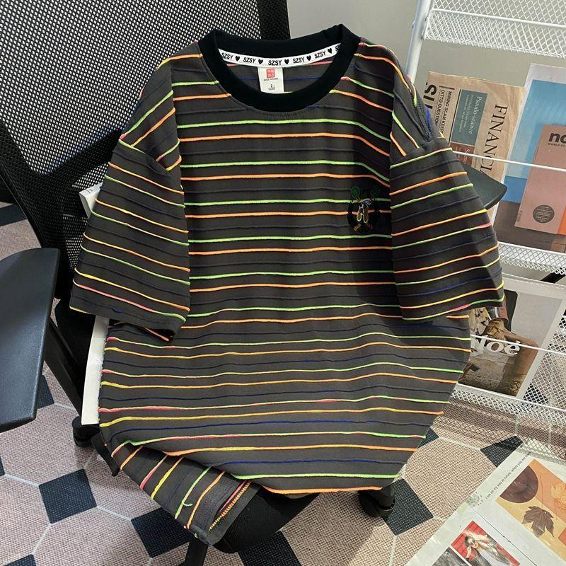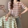 Playera de manga corta a rayas estilo retro chic de Hong Kong para mujer, delgada, cleanfit, de verano, holgada, con bloques de color, manga media