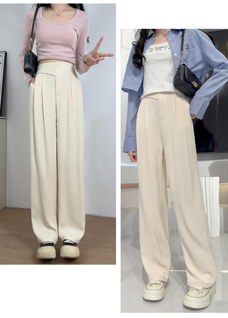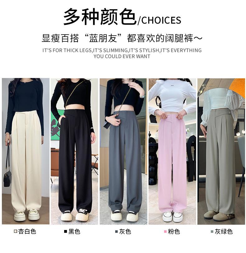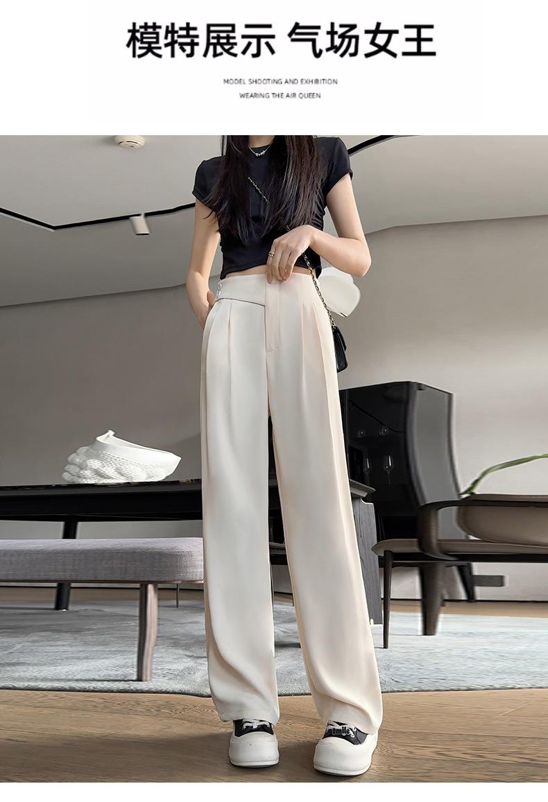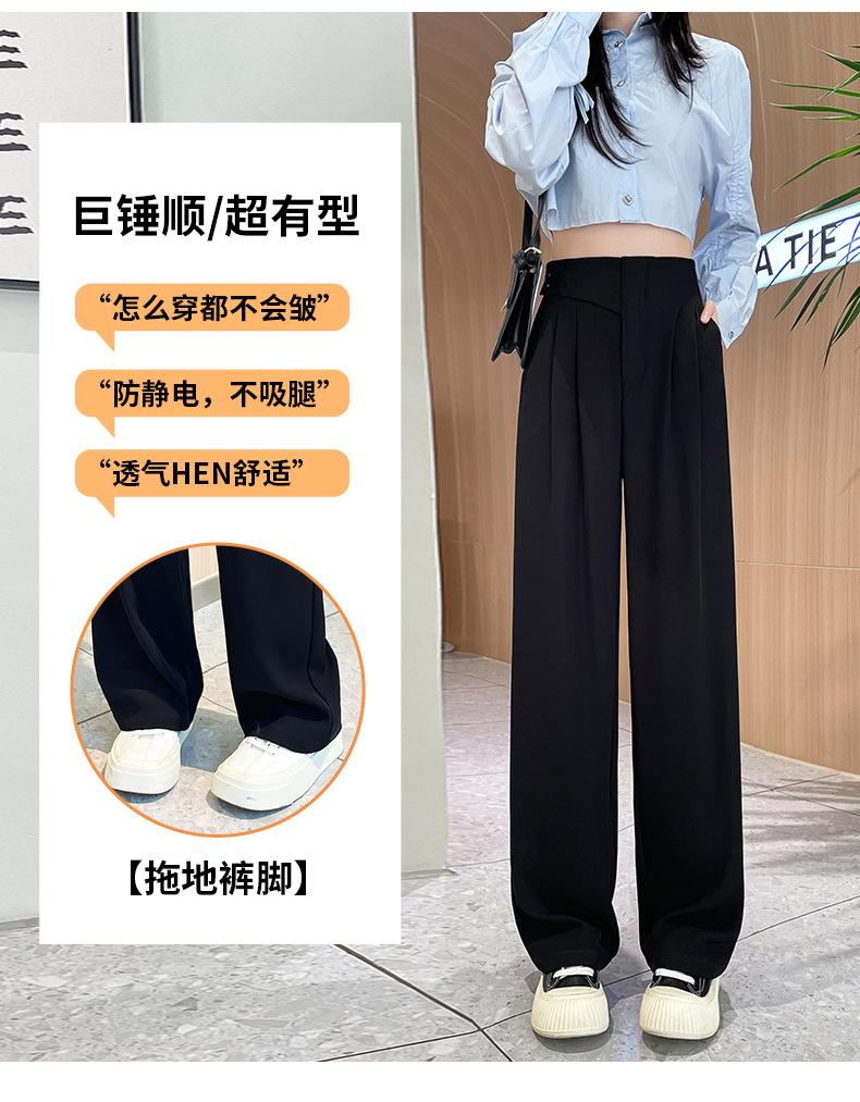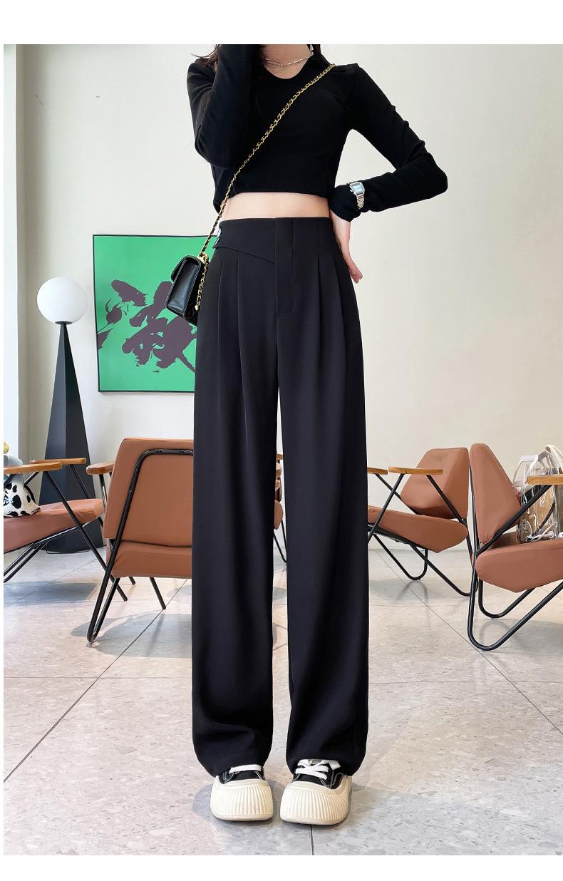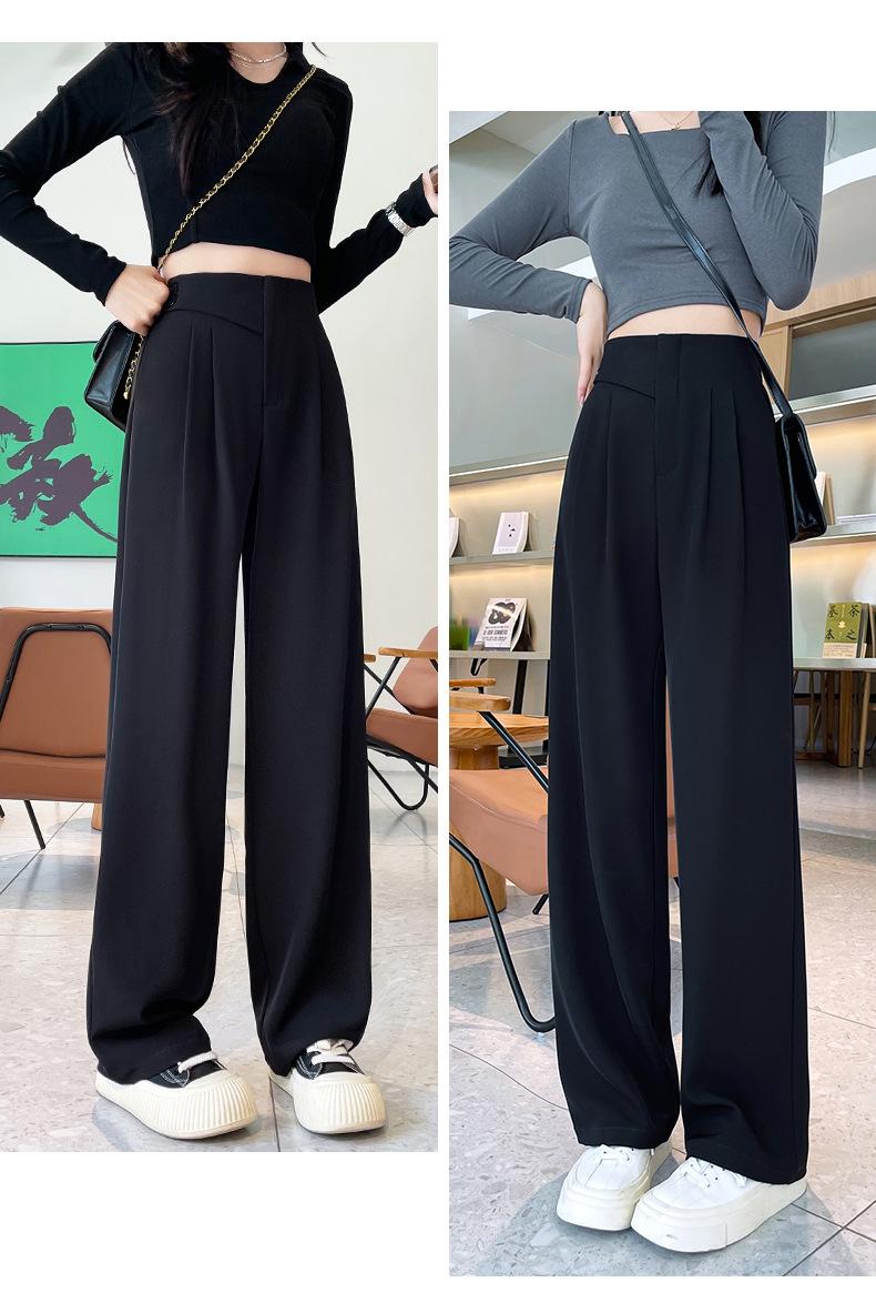 Verano 2025 Nuevo Pantalón de Pierna Ancha para Mujer Cintura Alta Delgada Pequeño Casual Caída Negro Entallado Recto Pantalón de Traje