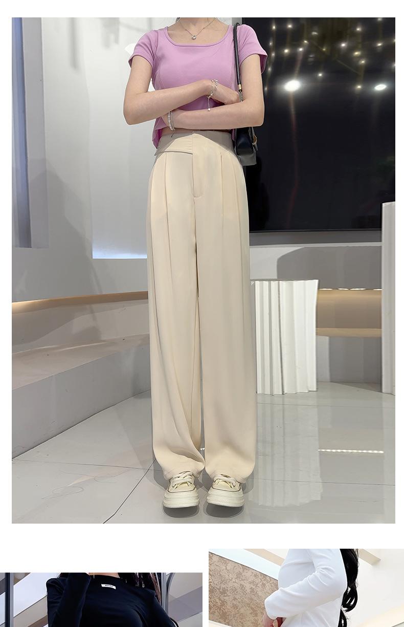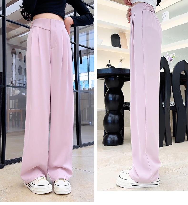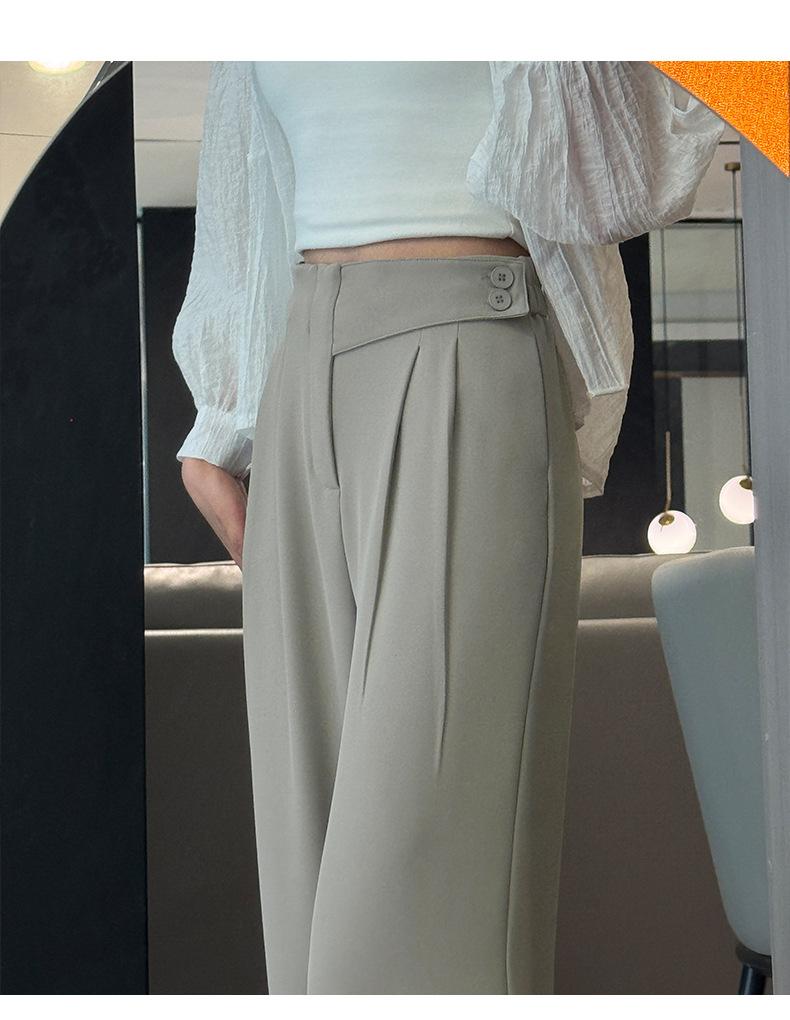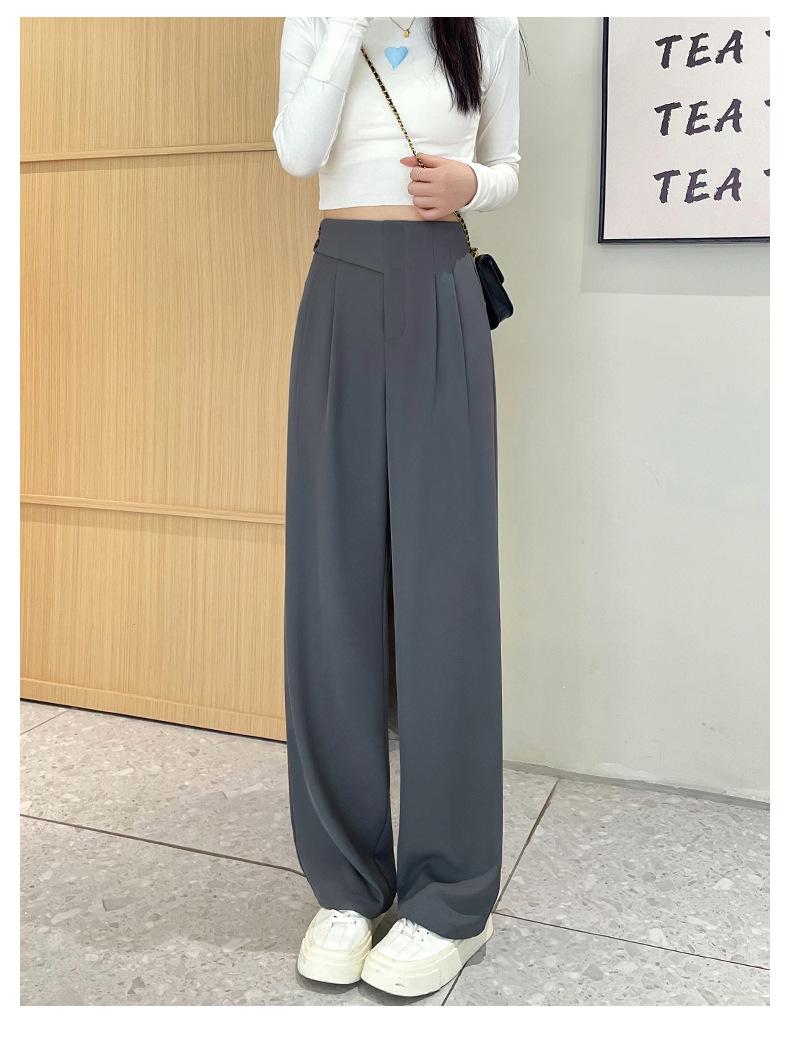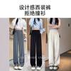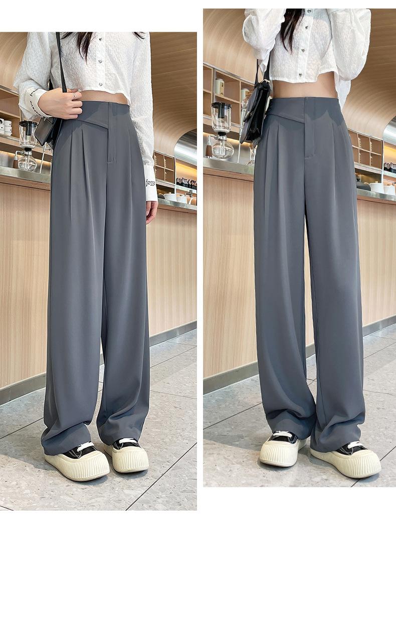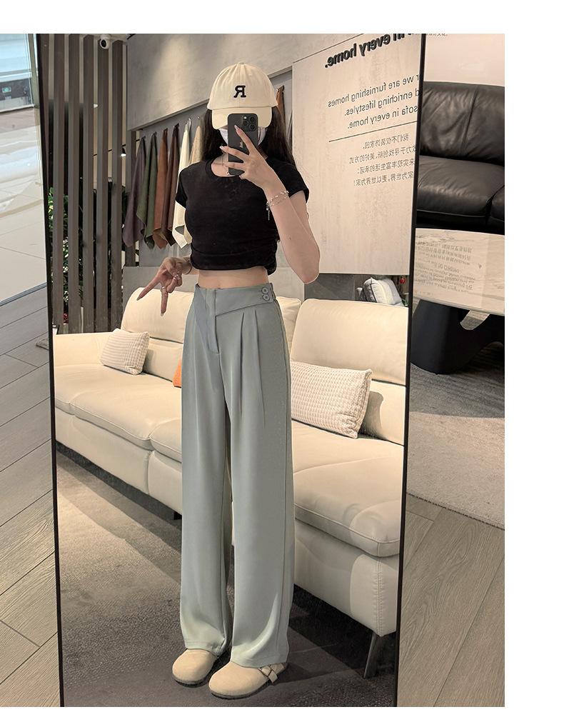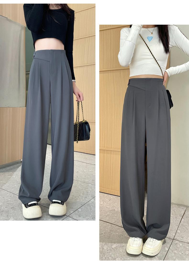 Verano 2025 Nuevo Pantalón de Pierna Ancha para Mujer Cintura Alta Delgada Pequeño Casual Caída Negro Entallado Recto Pantalón de Traje