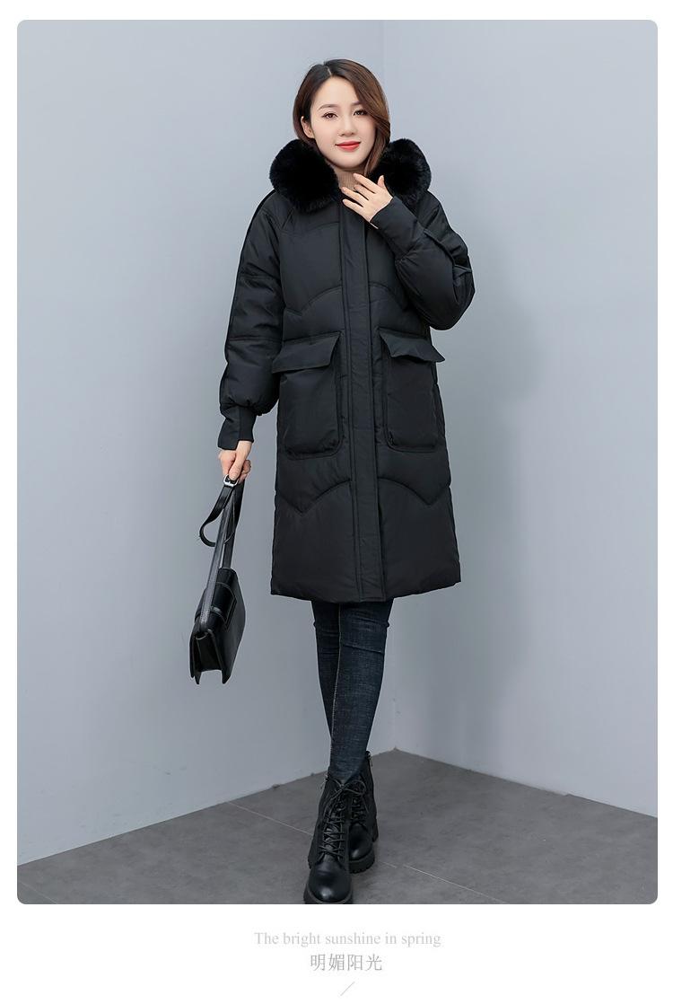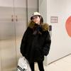 Abrigo de algodón temperamental y a la moda para mujer 2025 invierno nuevo estilo coreano suelto engrosado longitud media chaqueta de algodón plumífero cuello de piel ropa exterior
