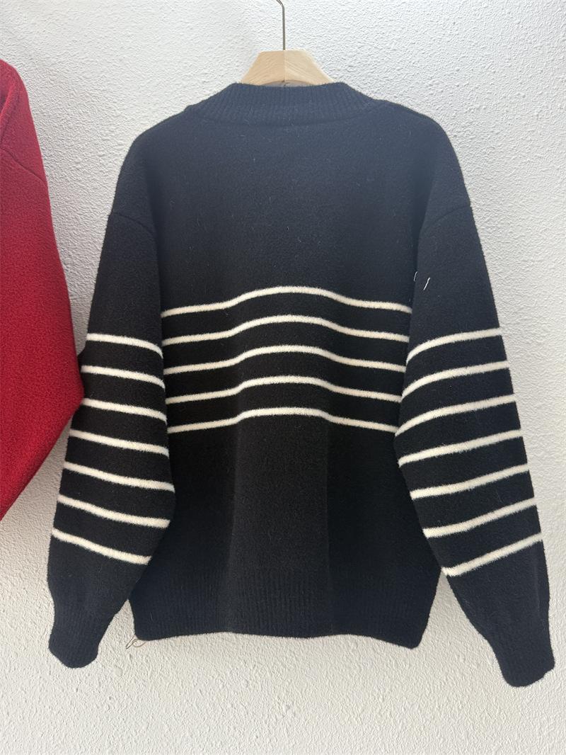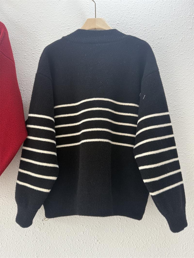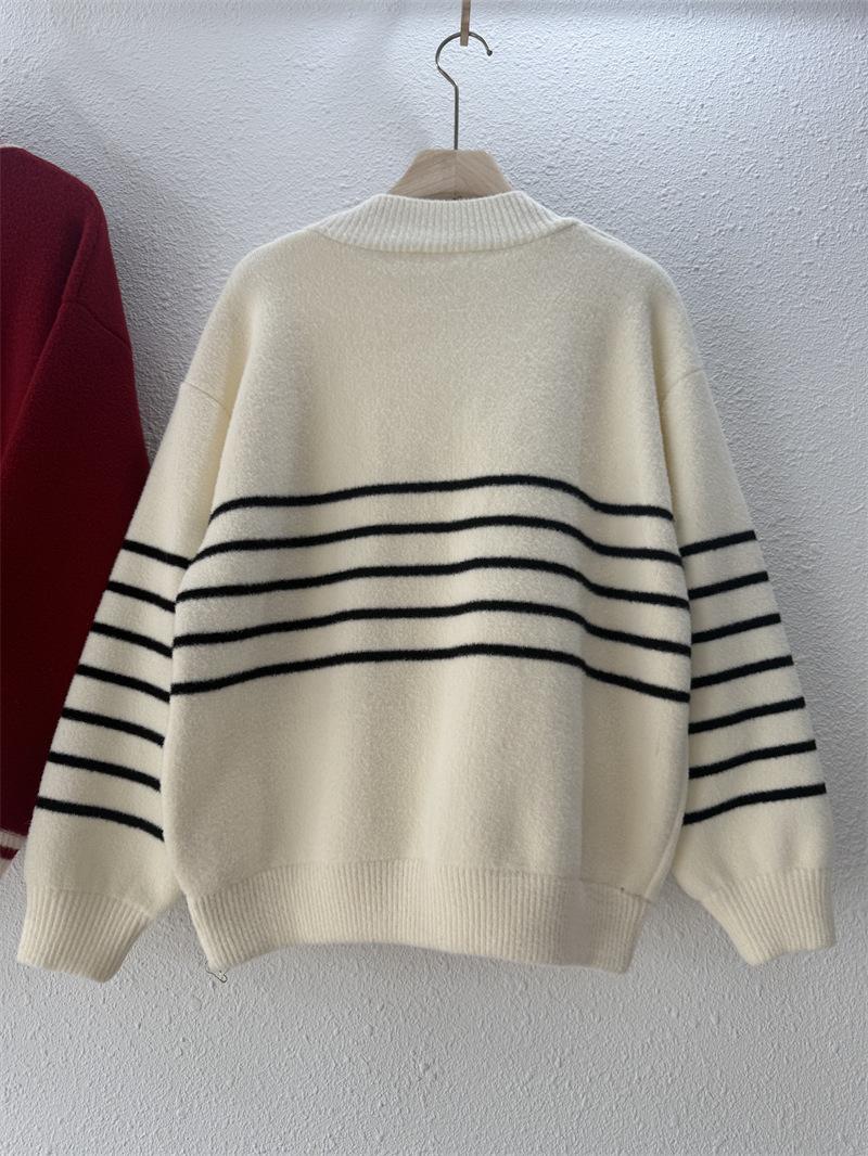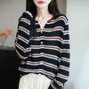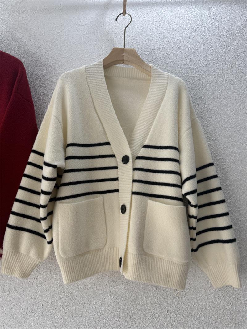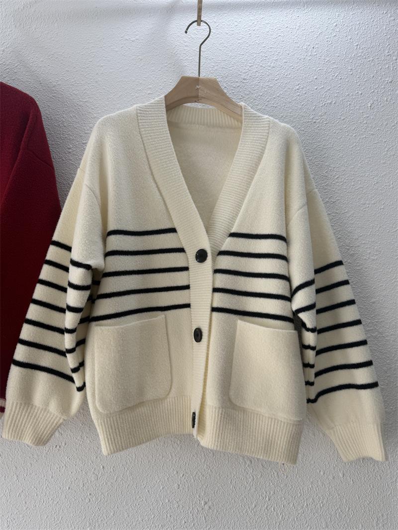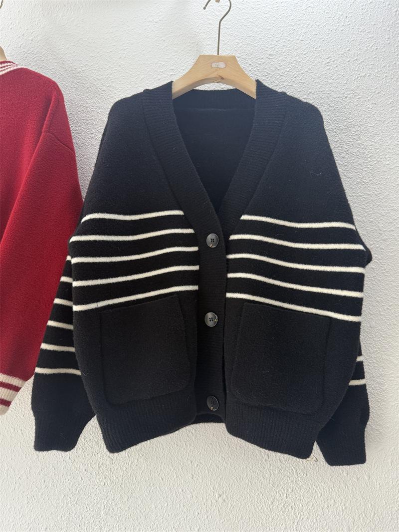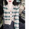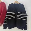 Suéter de cuello en V para mujer estilo coreano nuevo bloque de color a rayas cárdigan de punto con botones holgado cómodo versátil prendas de punto para mujer