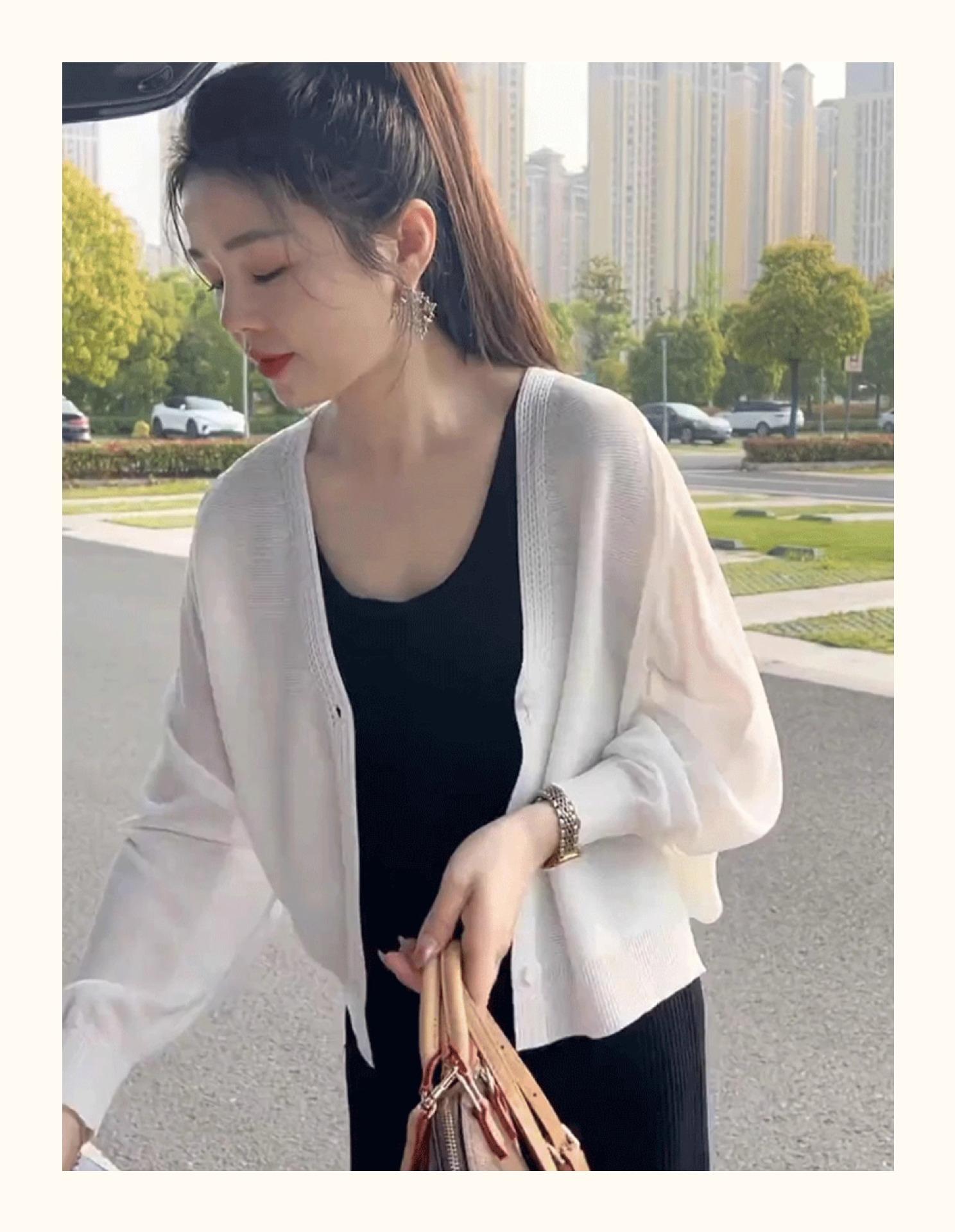 Cárdigan de Seda de Hielo para Mujer Suelto Talla Grande Chal de Verano Top Ropa de Protección Solar Chaqueta Corta para Mujer Look Delgado A3502