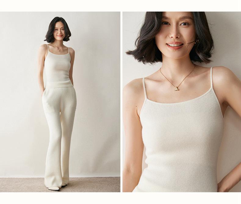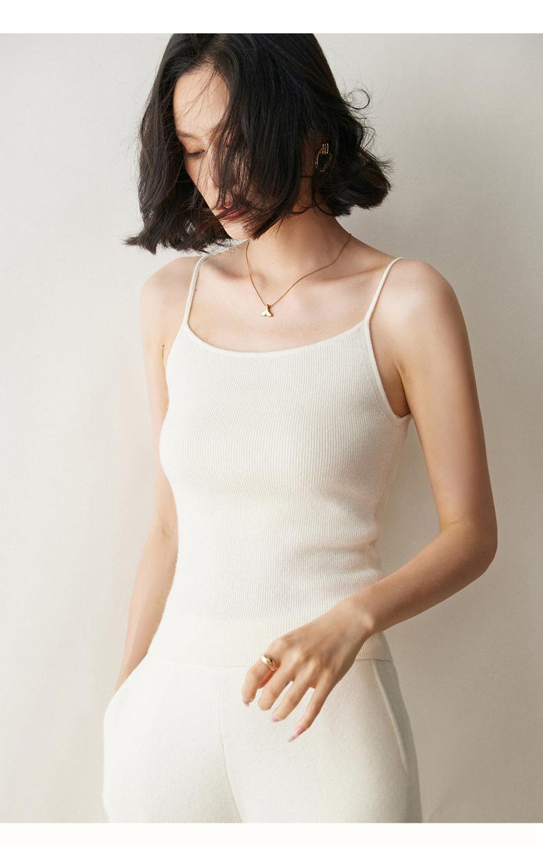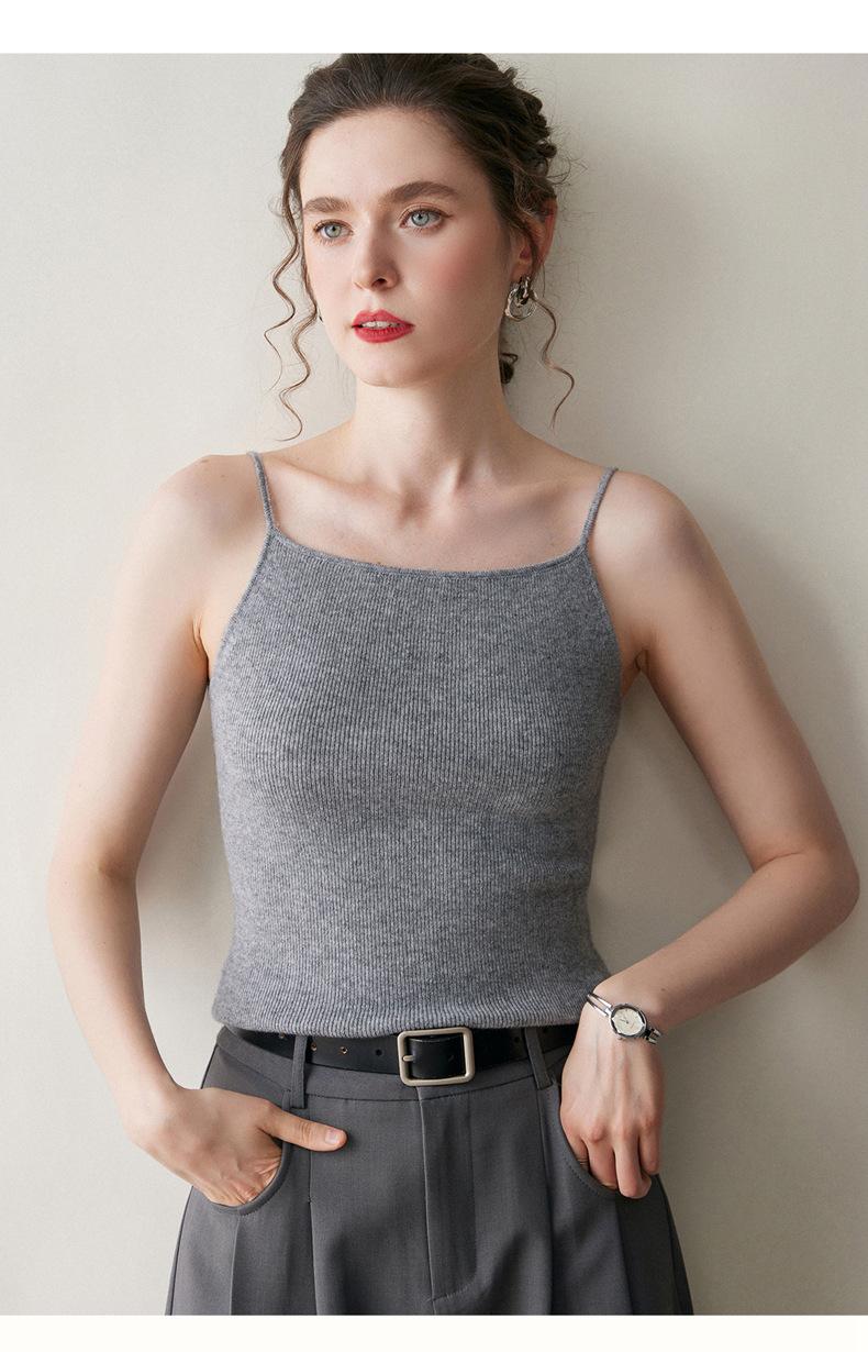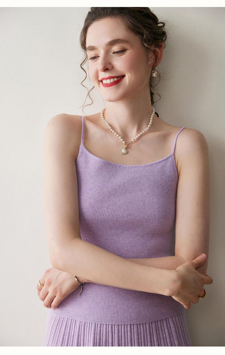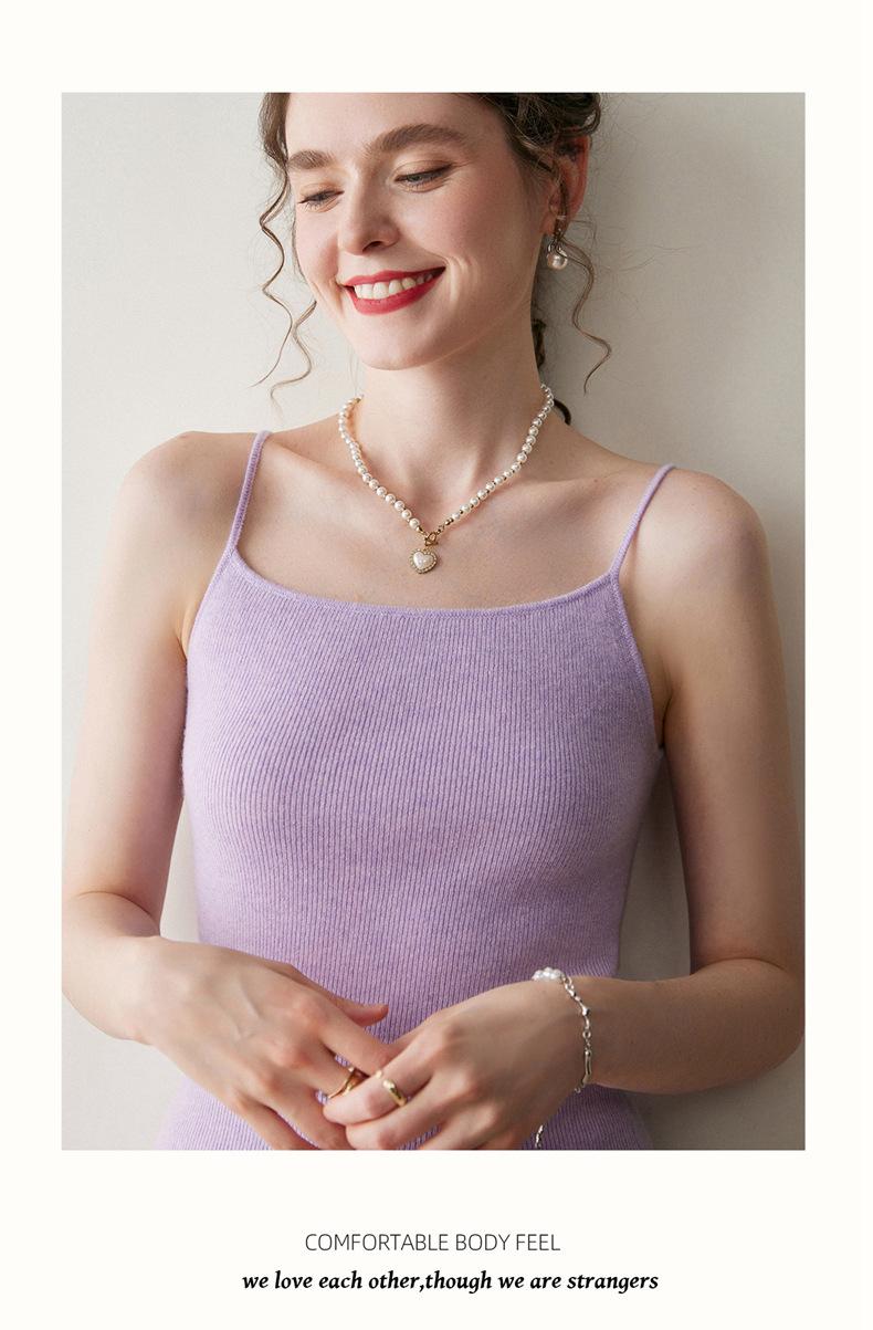 Camisola de Punto de Cachemira para Mujer Otoño/Invierno Nueva de Un Hombro Color Sólido Adelgazante Ajustada a la Cintura Sin Mangas Corta Camiseta Básica