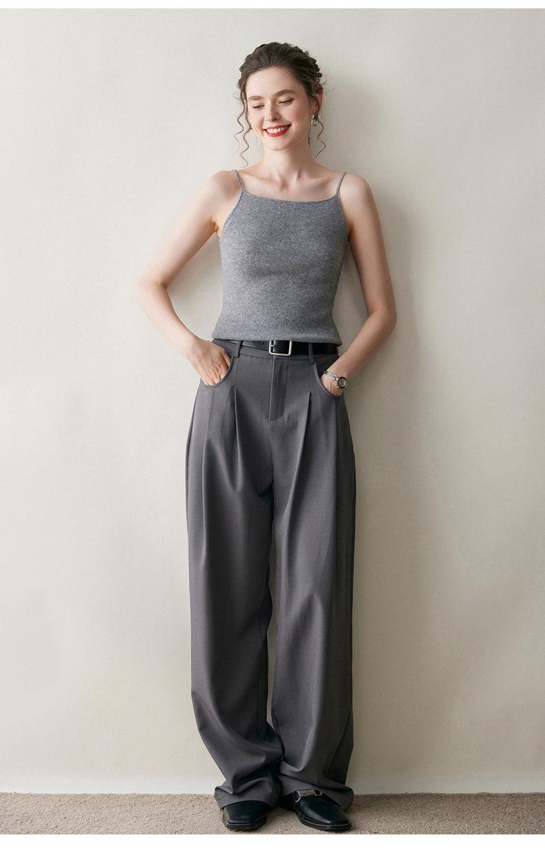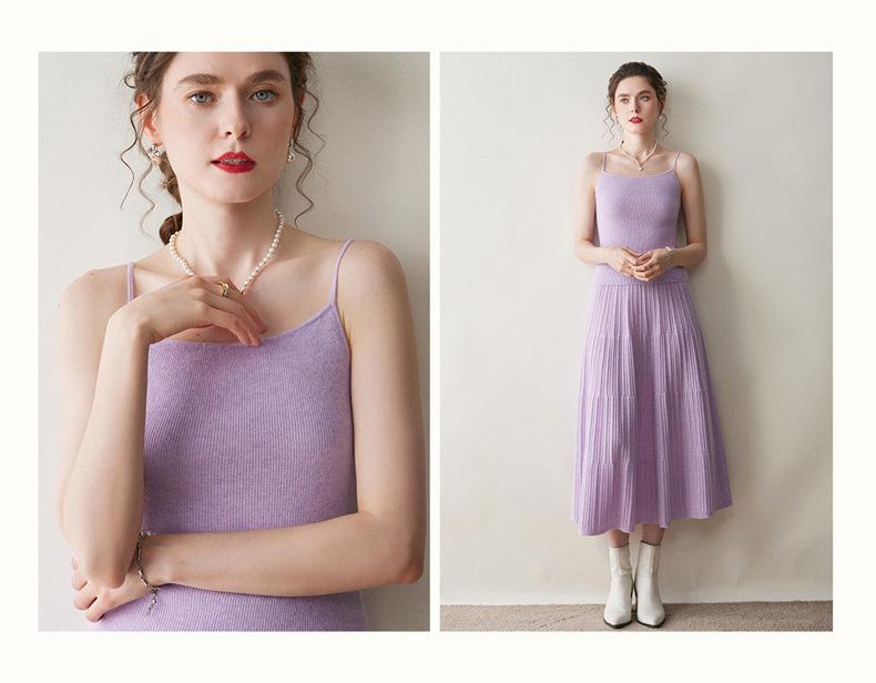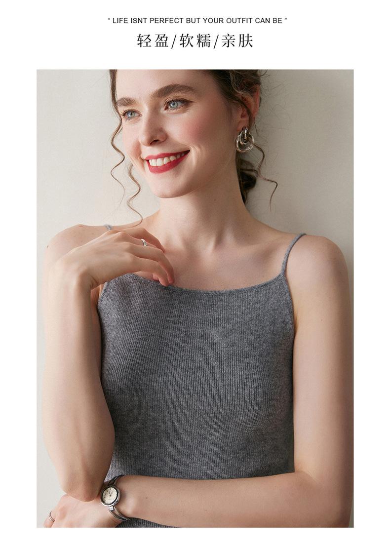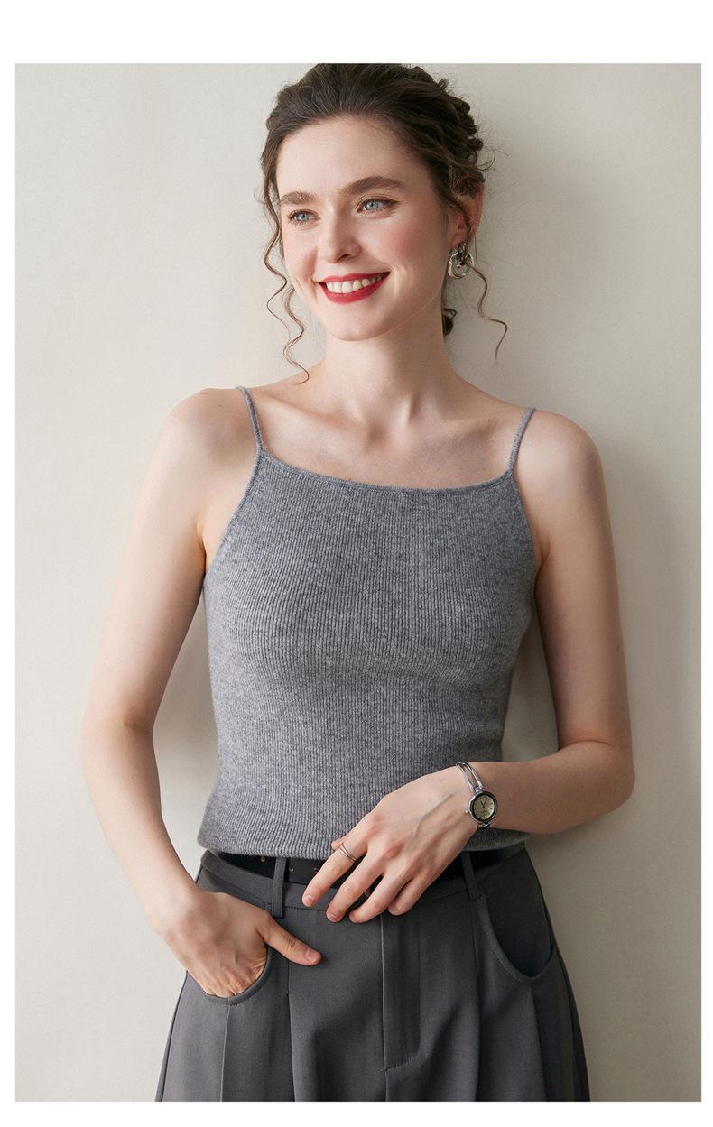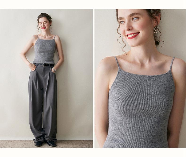 Camisola de Punto de Cachemira para Mujer Otoño/Invierno Nueva de Un Hombro Color Sólido Adelgazante Ajustada a la Cintura Sin Mangas Corta Camiseta Básica