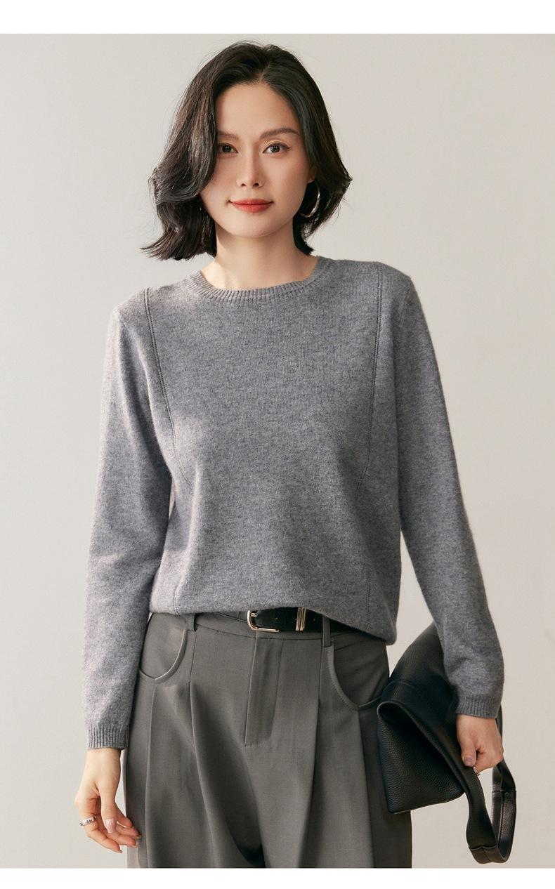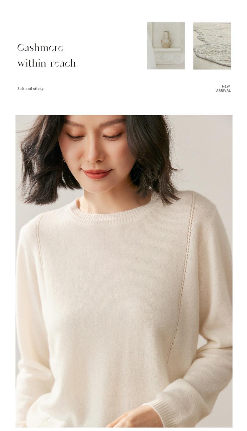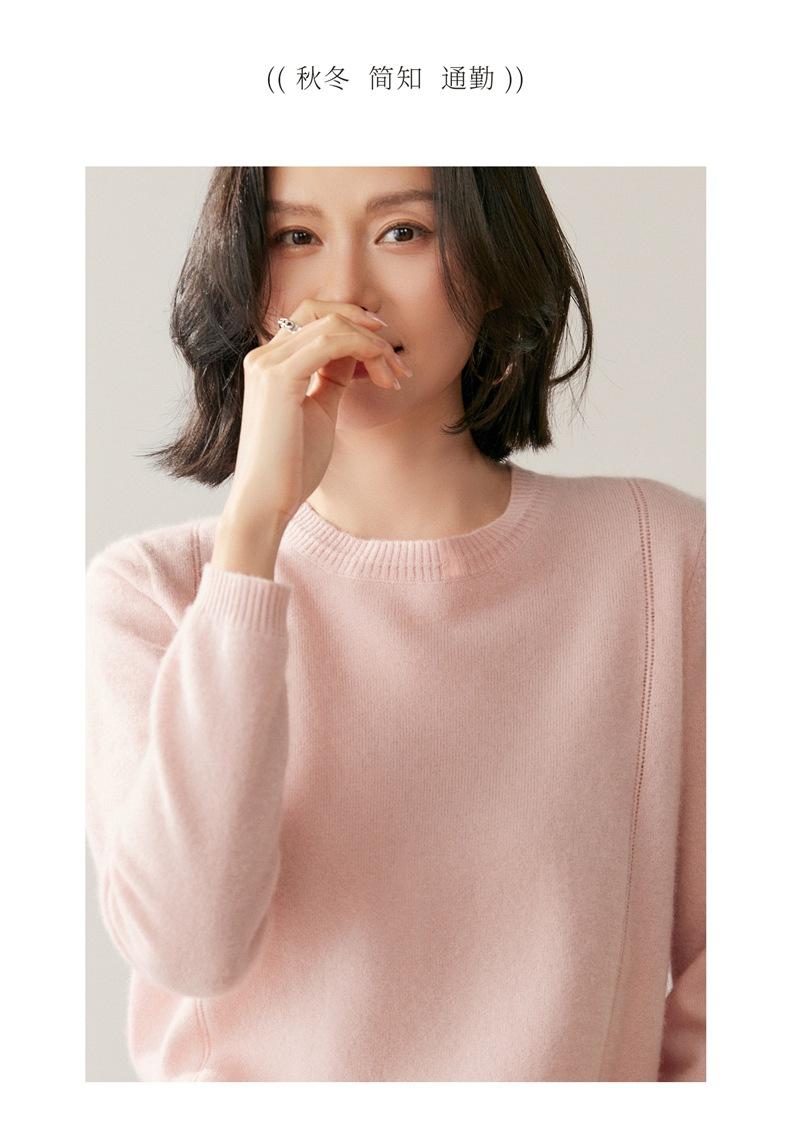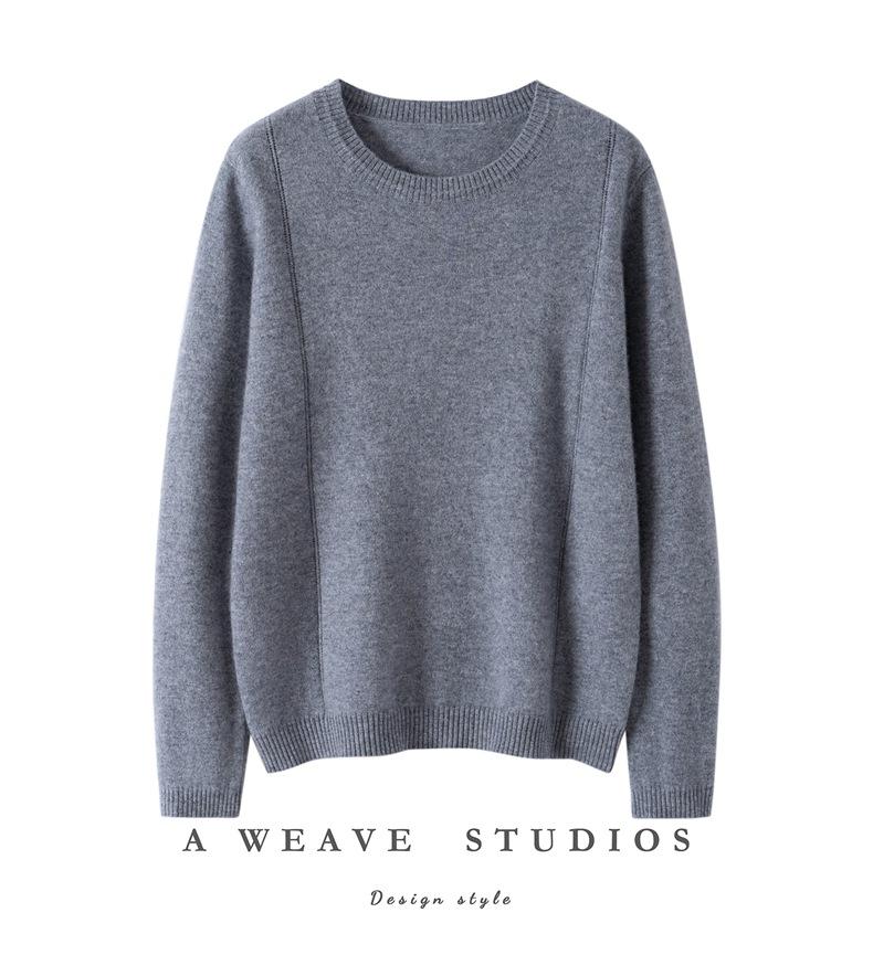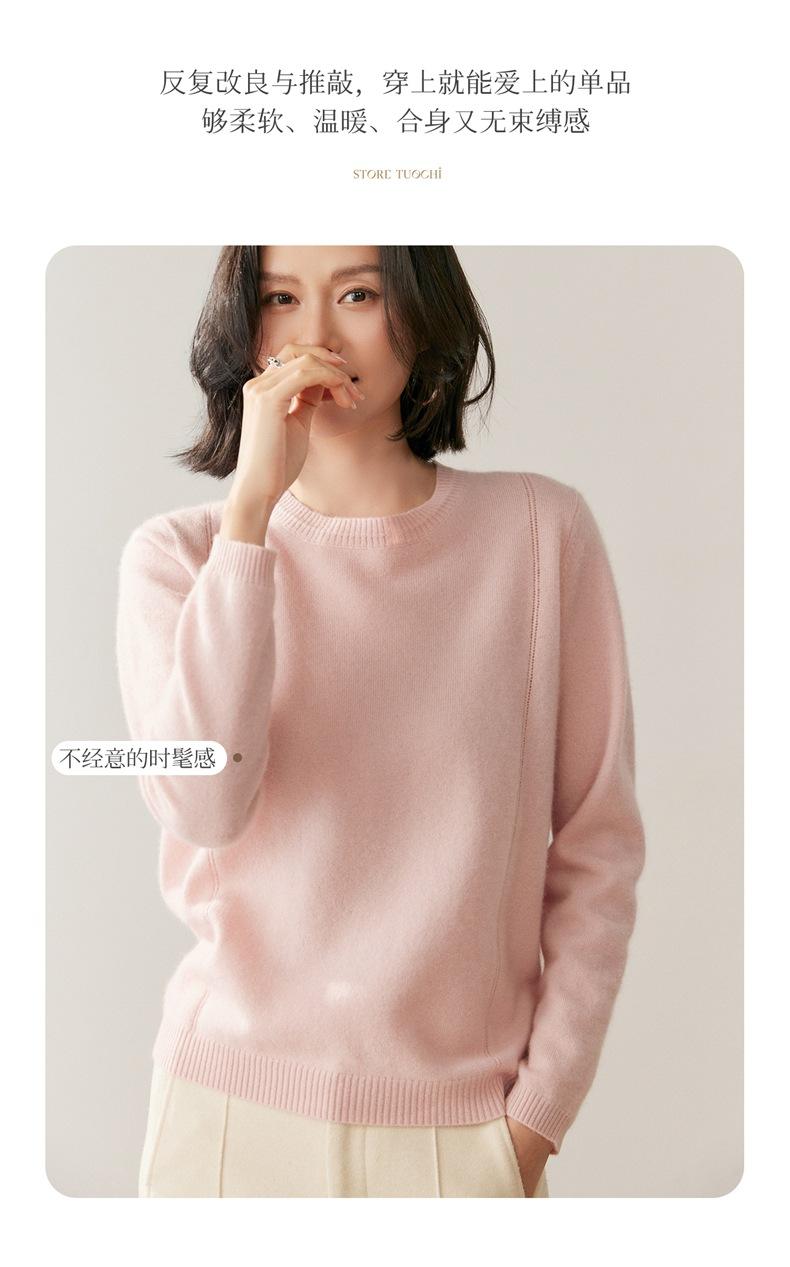 Otoño/Invierno 2024 Nuevo Suéter Básico de Punto de Cachemira para Mujer de Cuello Redondo Holgado con Hombro Raglán Suéter Simple