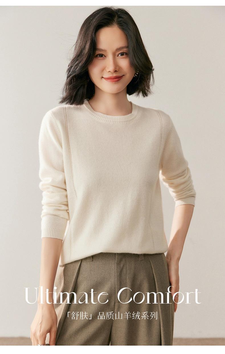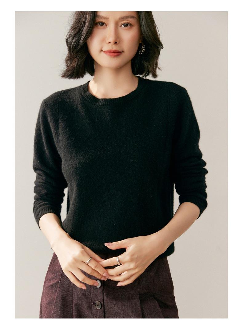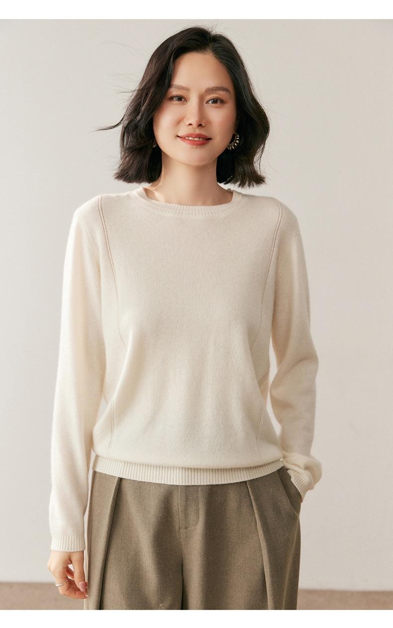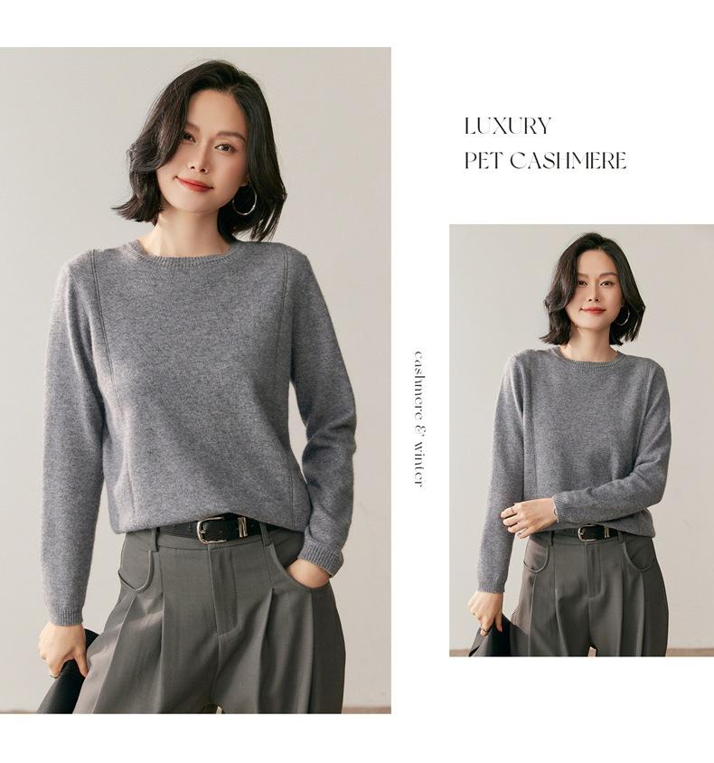 Otoño/Invierno 2024 Nuevo Suéter Básico de Punto de Cachemira para Mujer de Cuello Redondo Holgado con Hombro Raglán Suéter Simple
