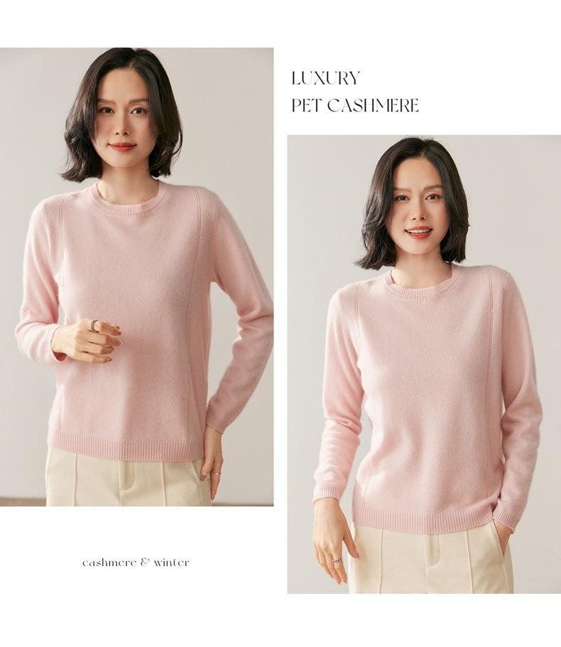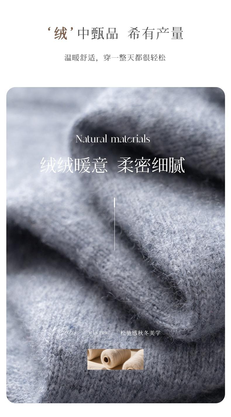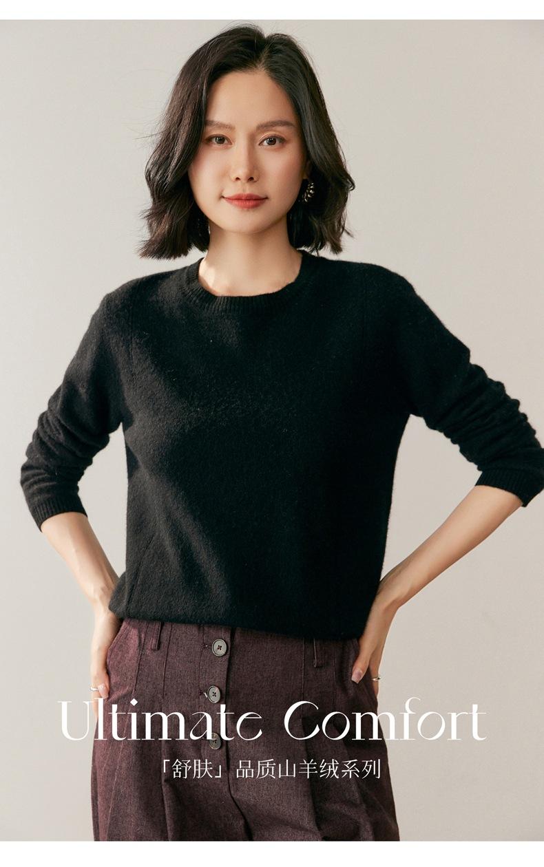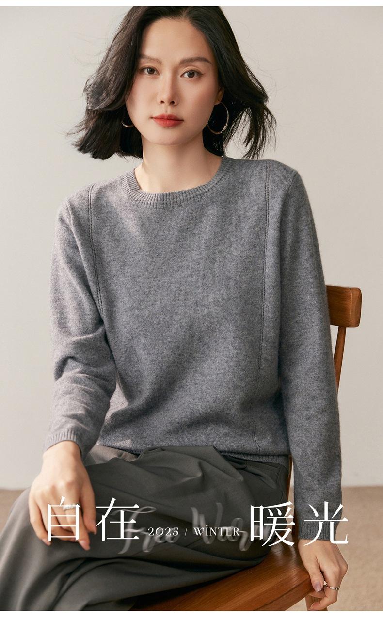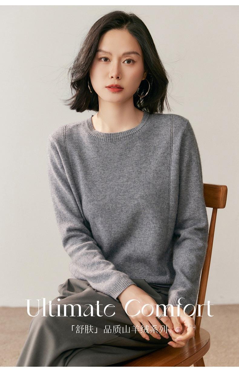Otoño/Invierno 2024 Nuevo Suéter Básico de Punto de Cachemira para Mujer de Cuello Redondo Holgado con Hombro Raglán Suéter Simple