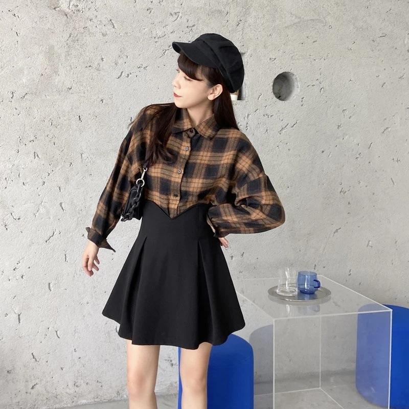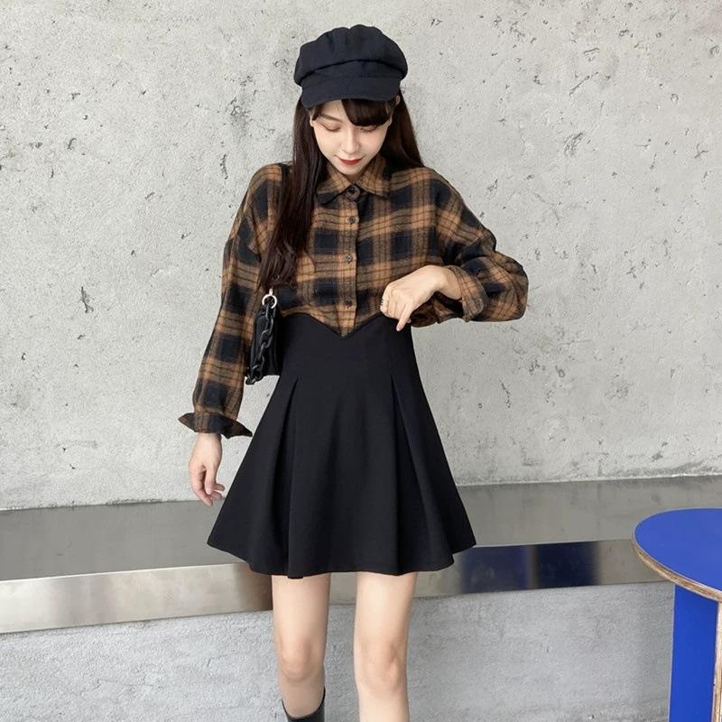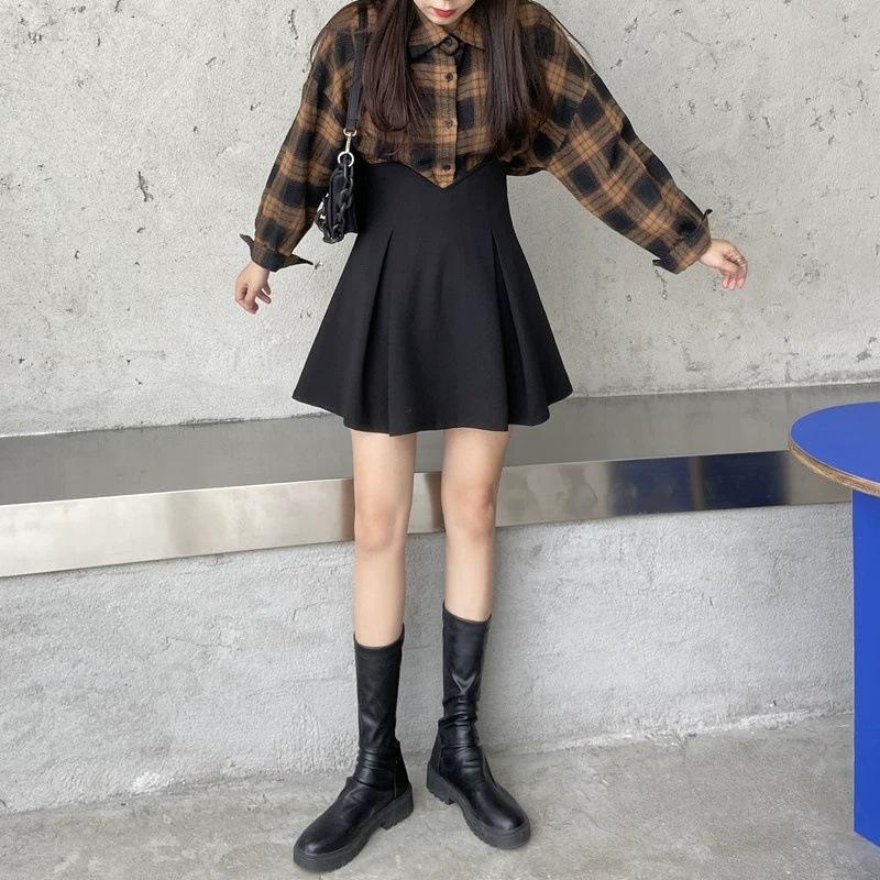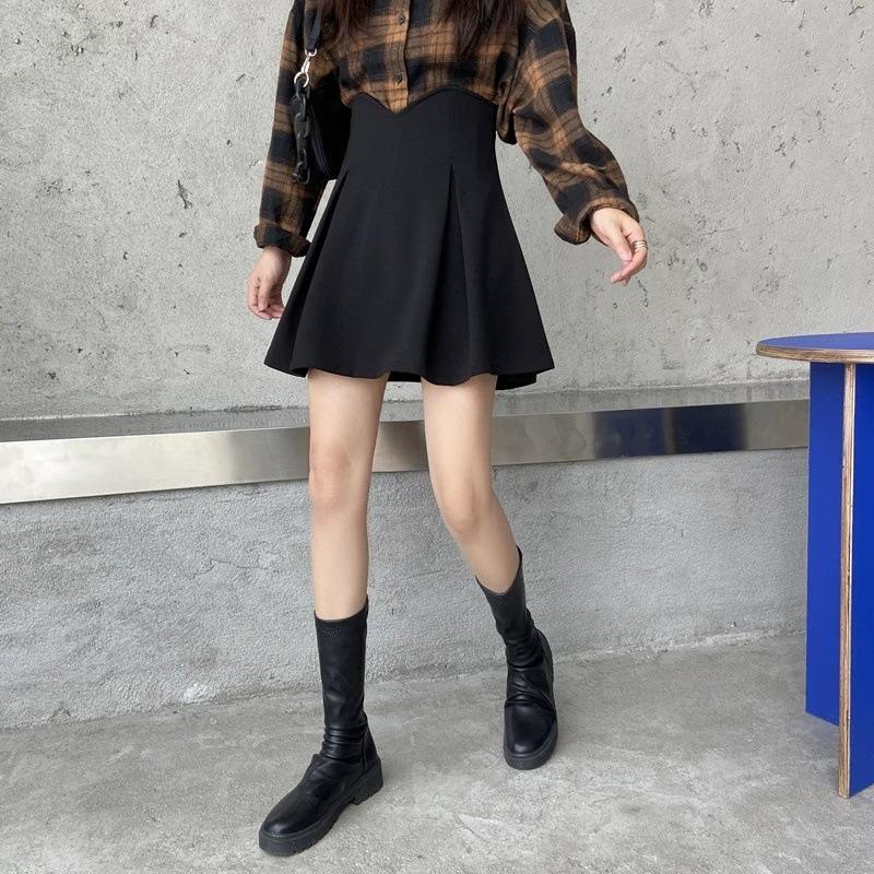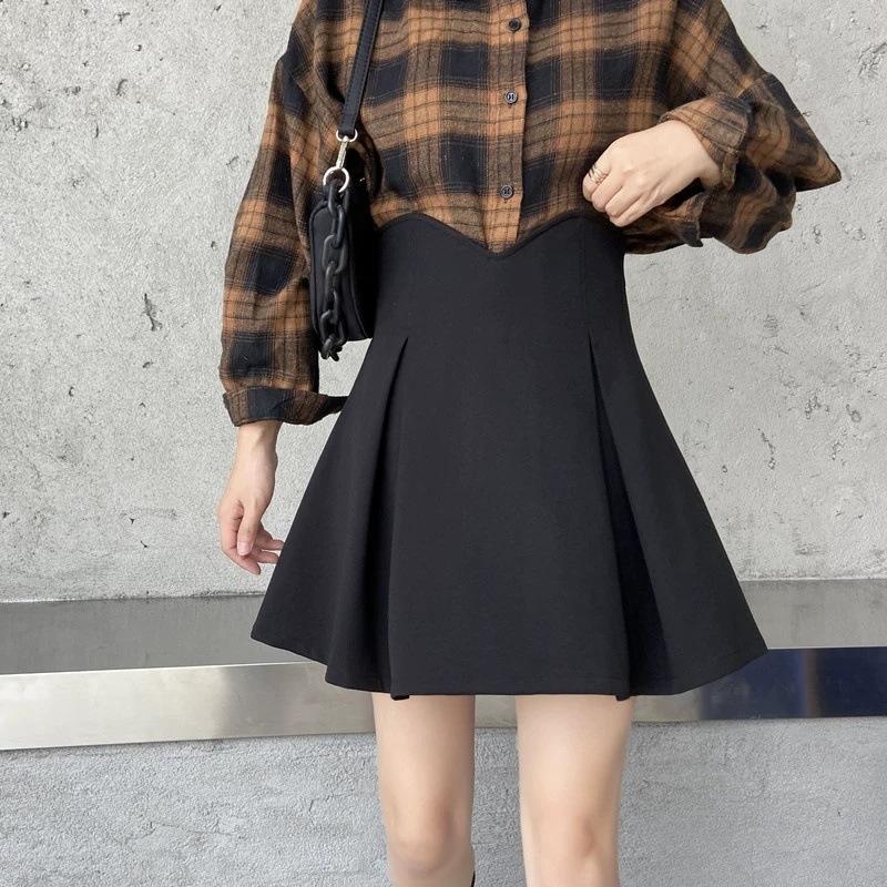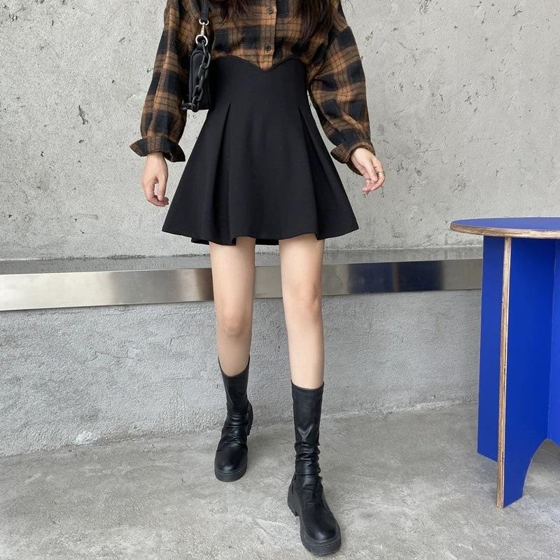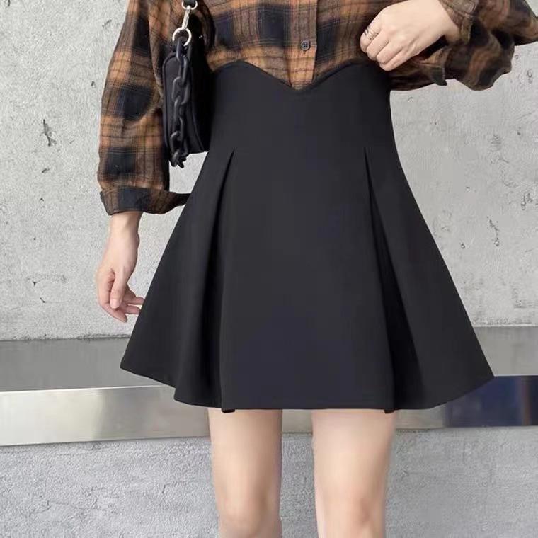 Falda Corta Plisada para Cubrir Caderas de Primavera para Mujer, Cintura Alta Adelgazante, Falda Corta Plisada 2024 Nuevo Estilo Coreano, Falda Negra Plisada Línea A, Moderna