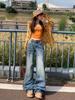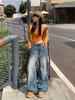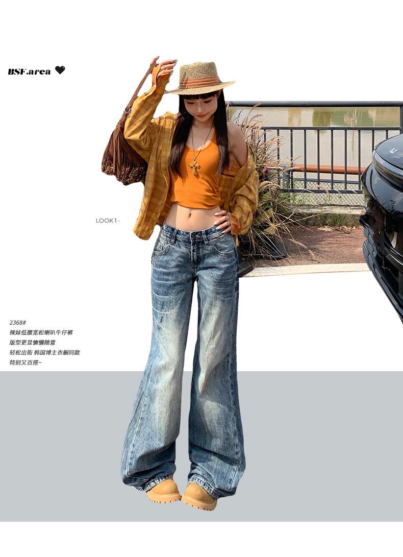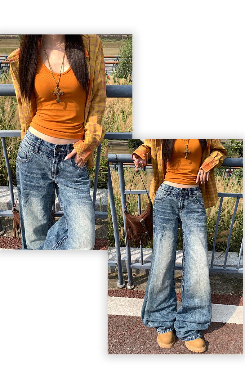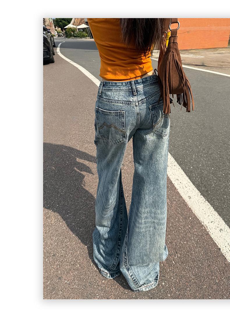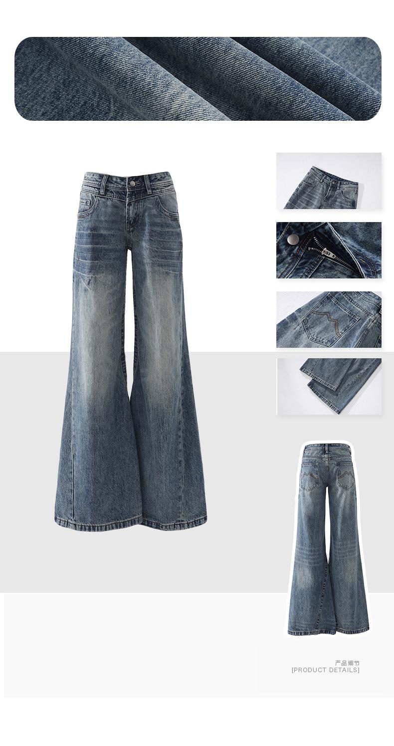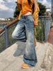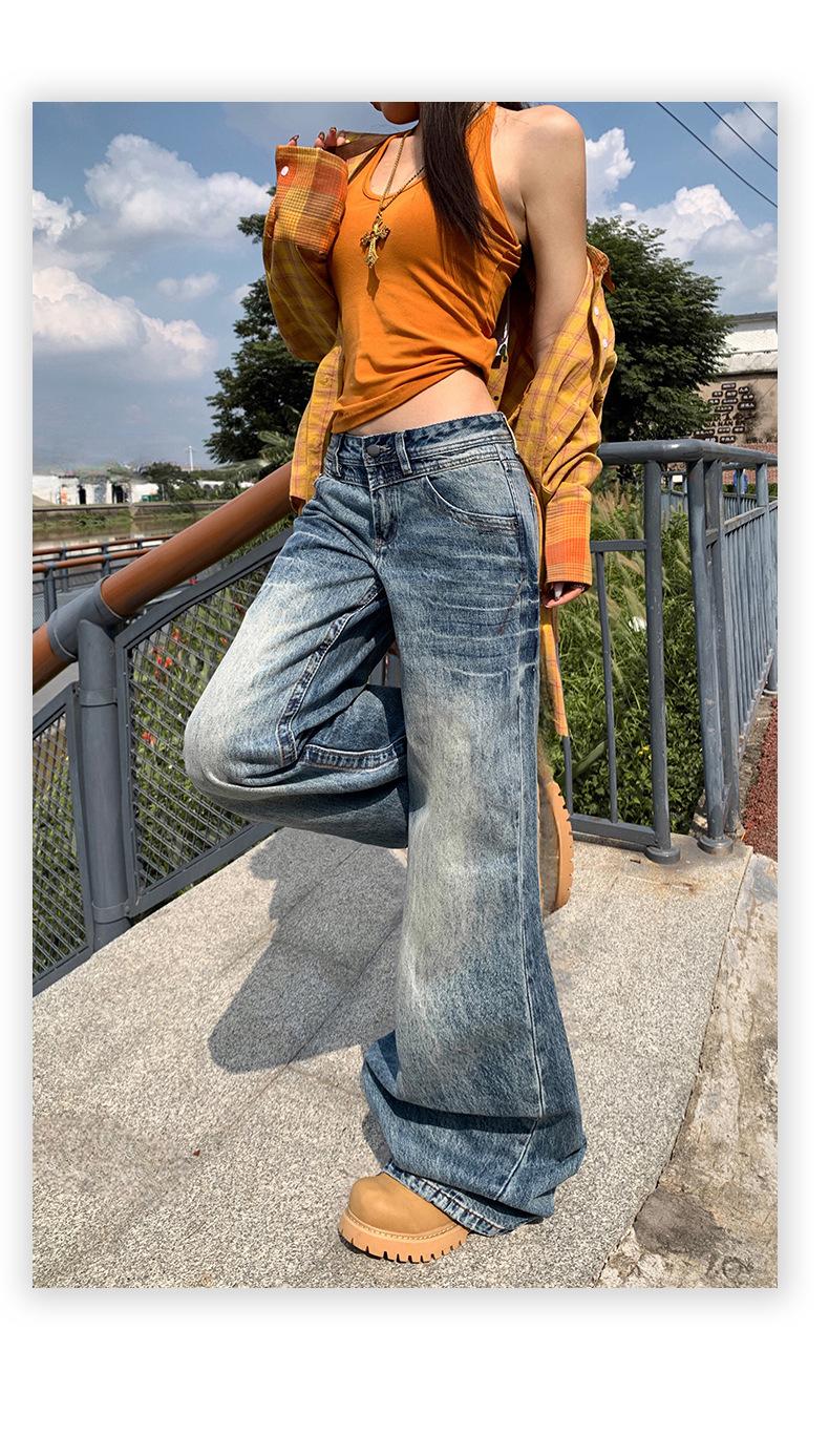 Jeans Retro Lavados de Industria Pesada Americana para Mujer Otoño 2025 Nuevo Cintura Baja Sueltos Pierna Recta Largo al Piso Acampanados